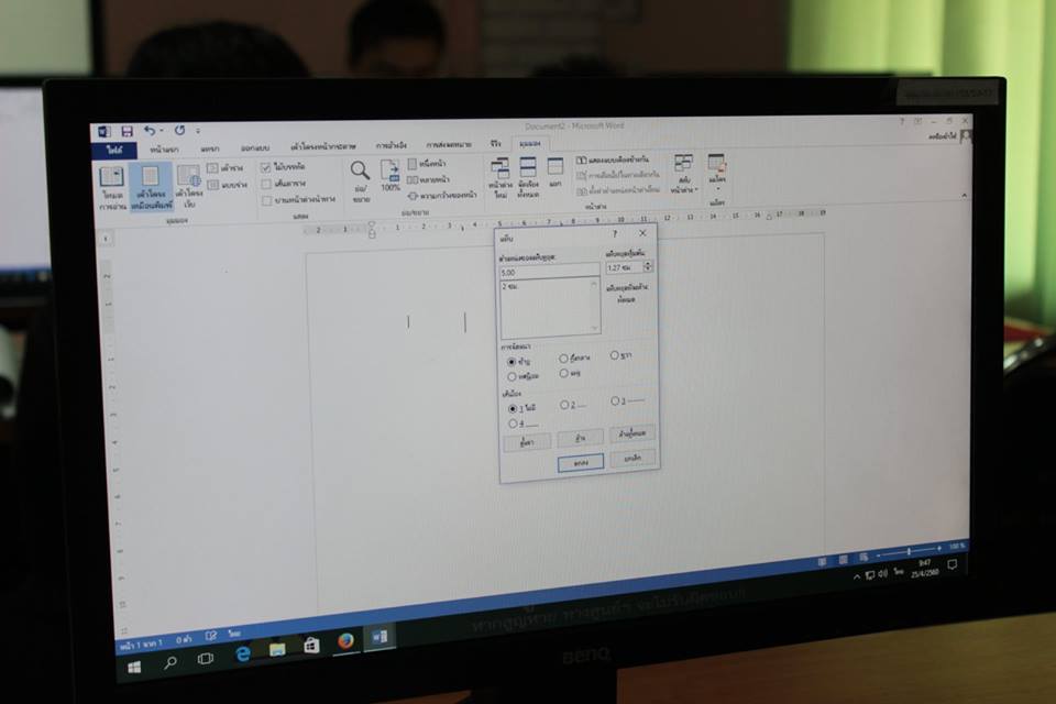 #25เมษายน60 วันที่สองฝึกการตั้งค่าแท็บ การแทรกสัญลักษณ์ การใช้รูปร่างและรูปทรงในการสร้างไดอะแกรม