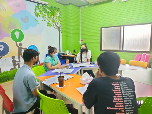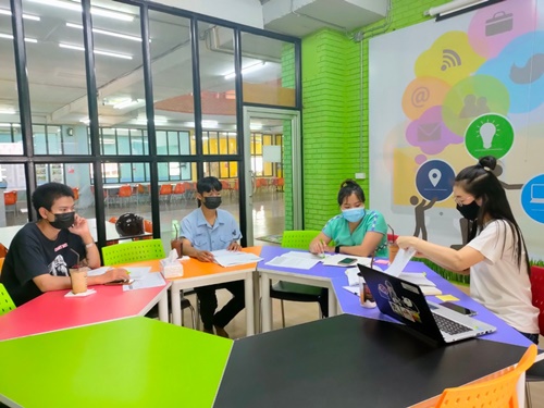น้อง ๆ ทีม WayGreen มาขอคำปรึกษาโค้ชพี่เอม และโค้ชพี่หมิว การบ้าน Worksheet 3.1 - 3.2 ในวันที่ 28 พฤษภาคม 2564