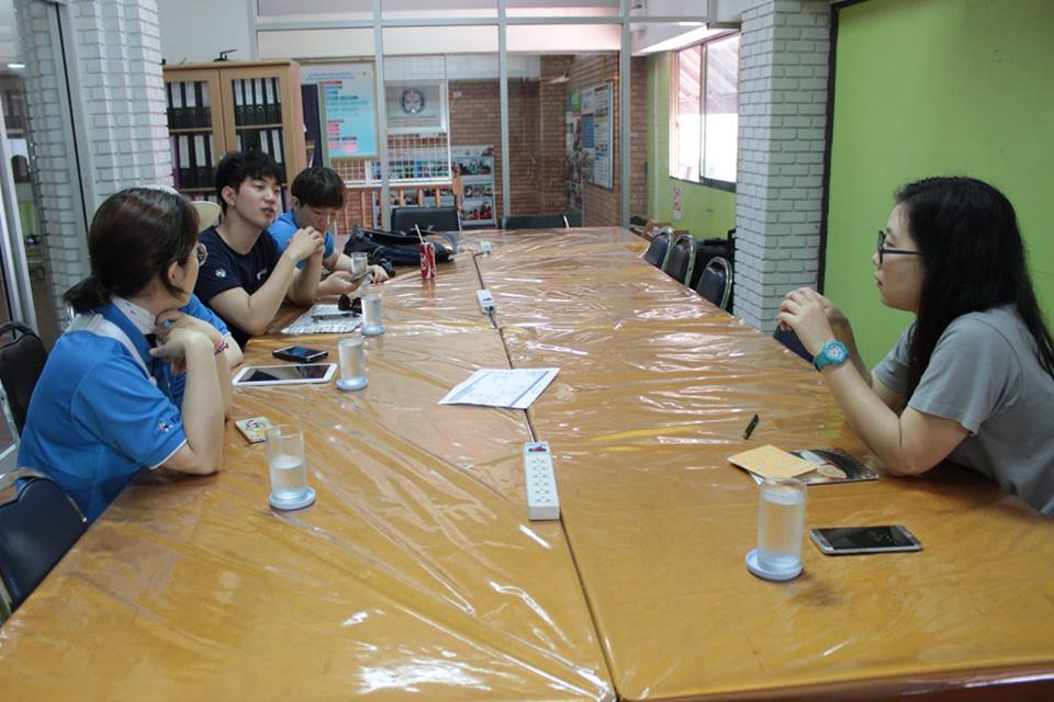 นักศึกษาแลกเปลี่ยนจากประเทศเกาหลีใต้ ได้เข้ามาแนะนำตัวเพื่อจะเข้ามาฝึกสอนโปรแกรมการเขียนเกมส์อย่างง่าย (Scratch)