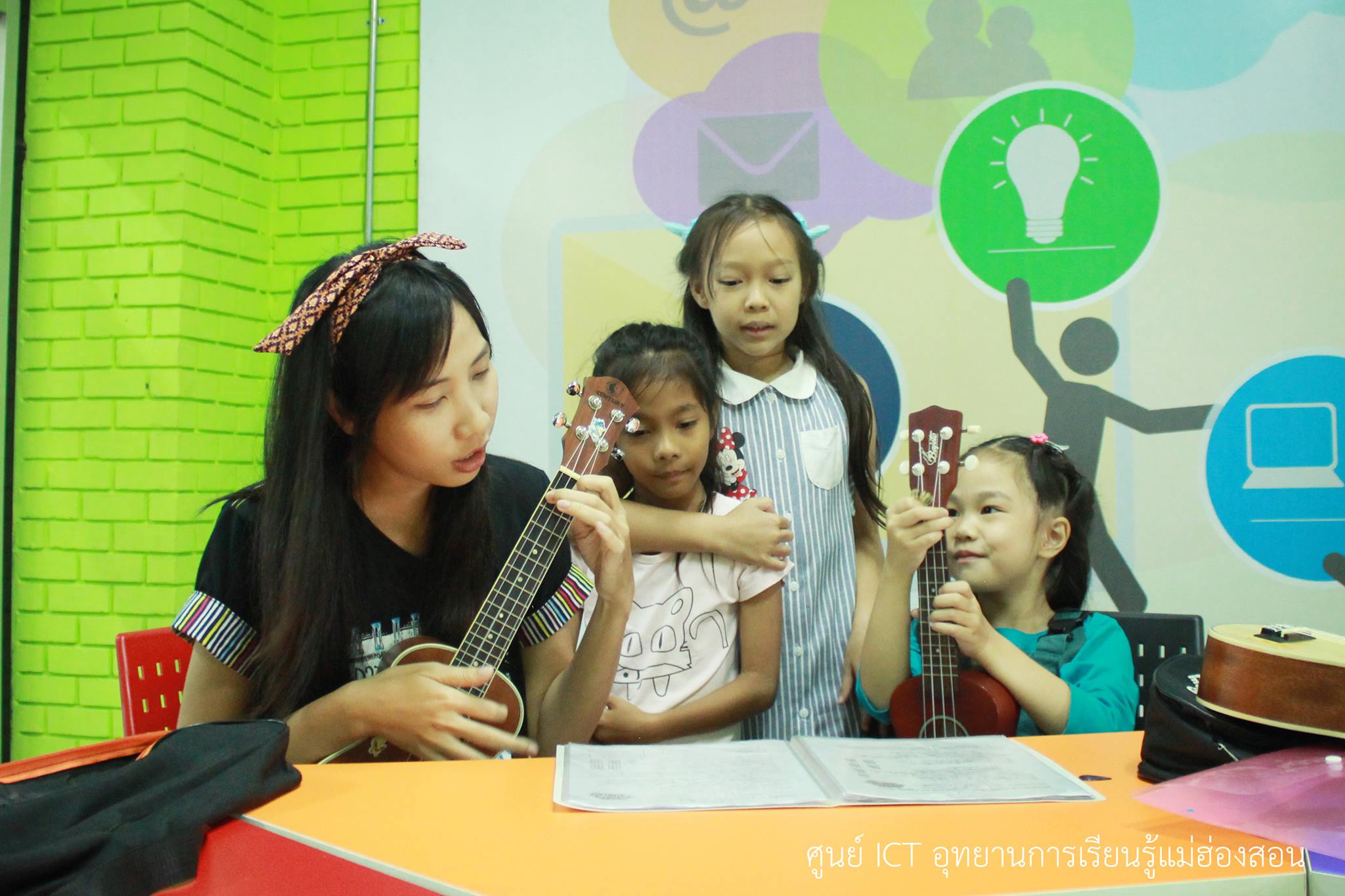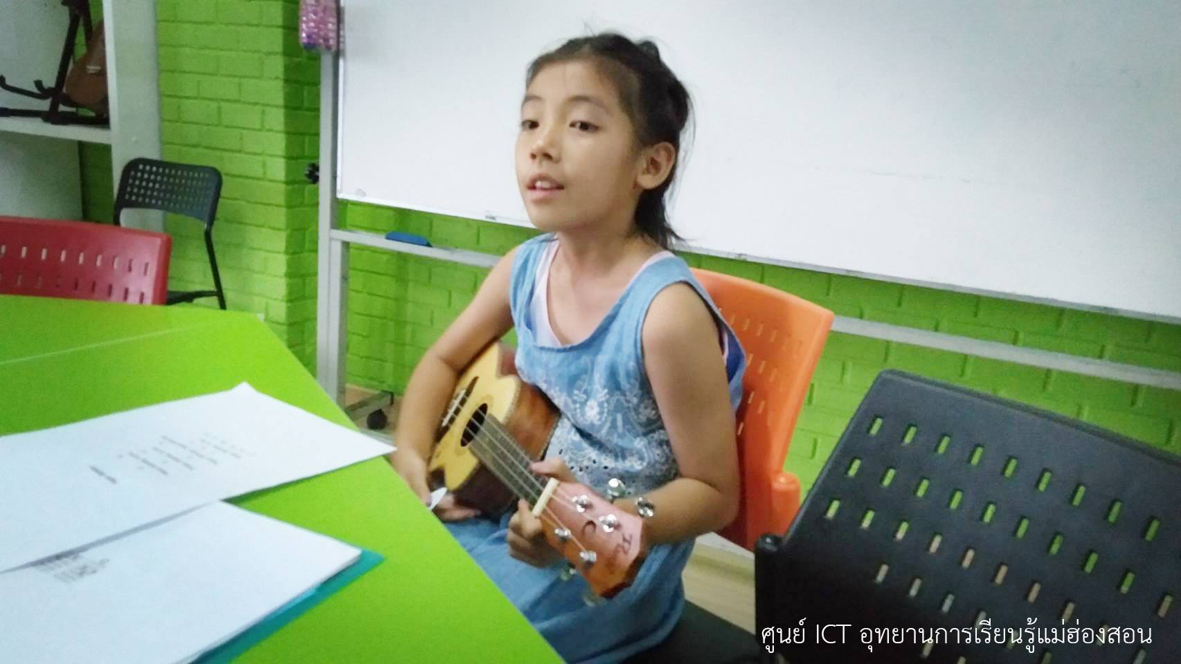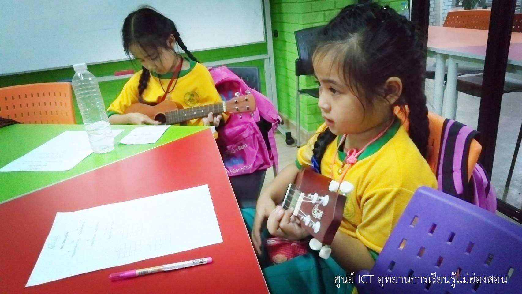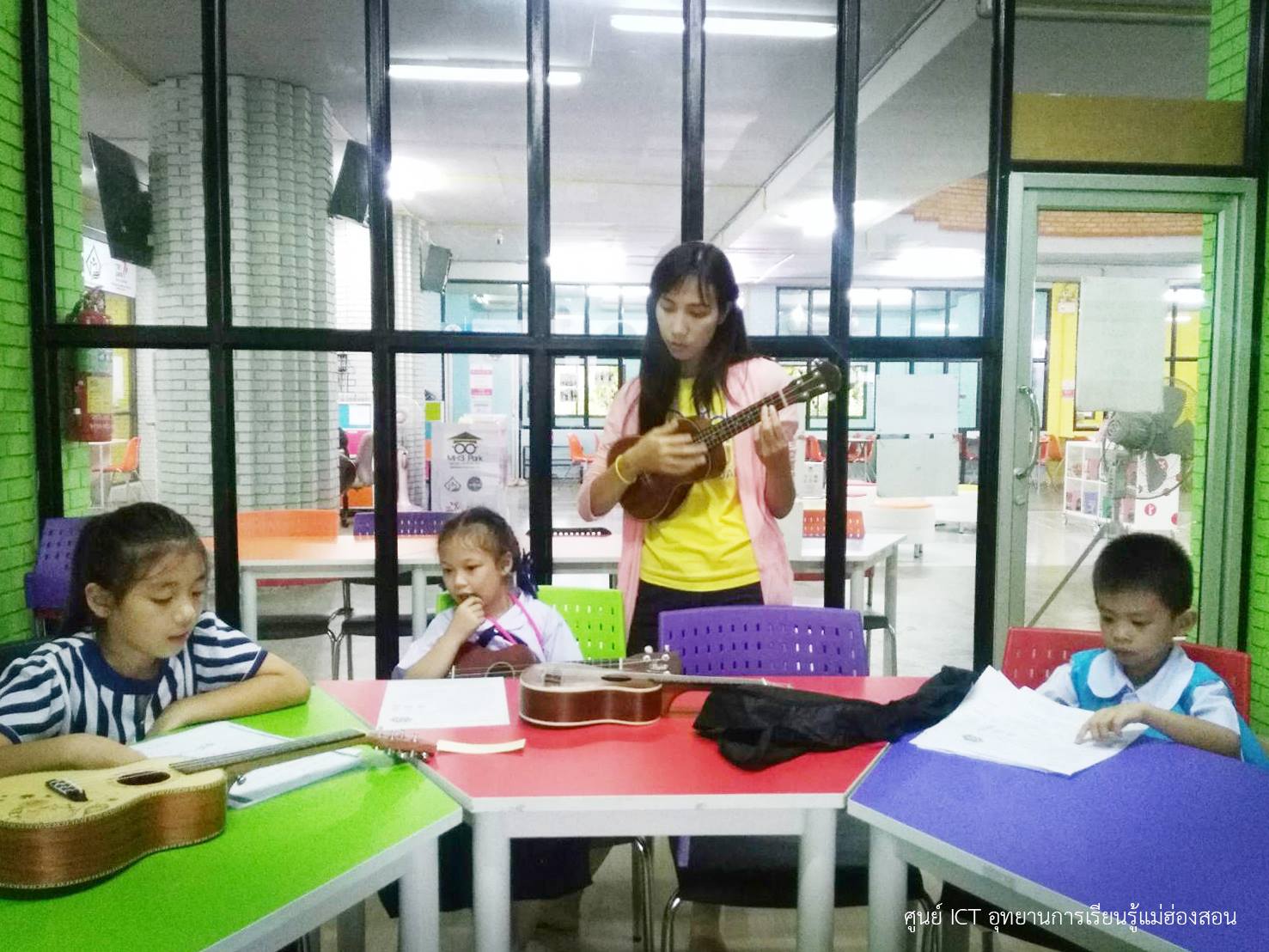 กิจกรรมเรียนดนตรีอูคูเลเล่ เล่นวันละนิด ช่วยให้จิตแจ่มใส เรียนทุกวัน ยกเว้นวันจันทร์และวันศุกร์ ณ ห้อง Study Room