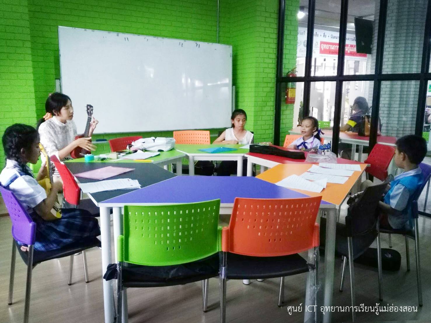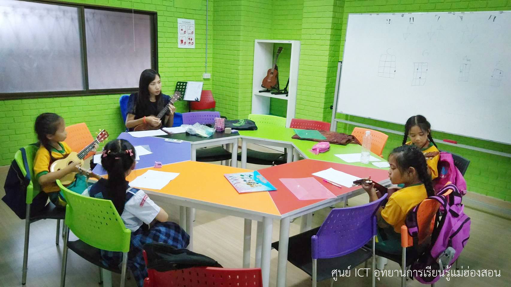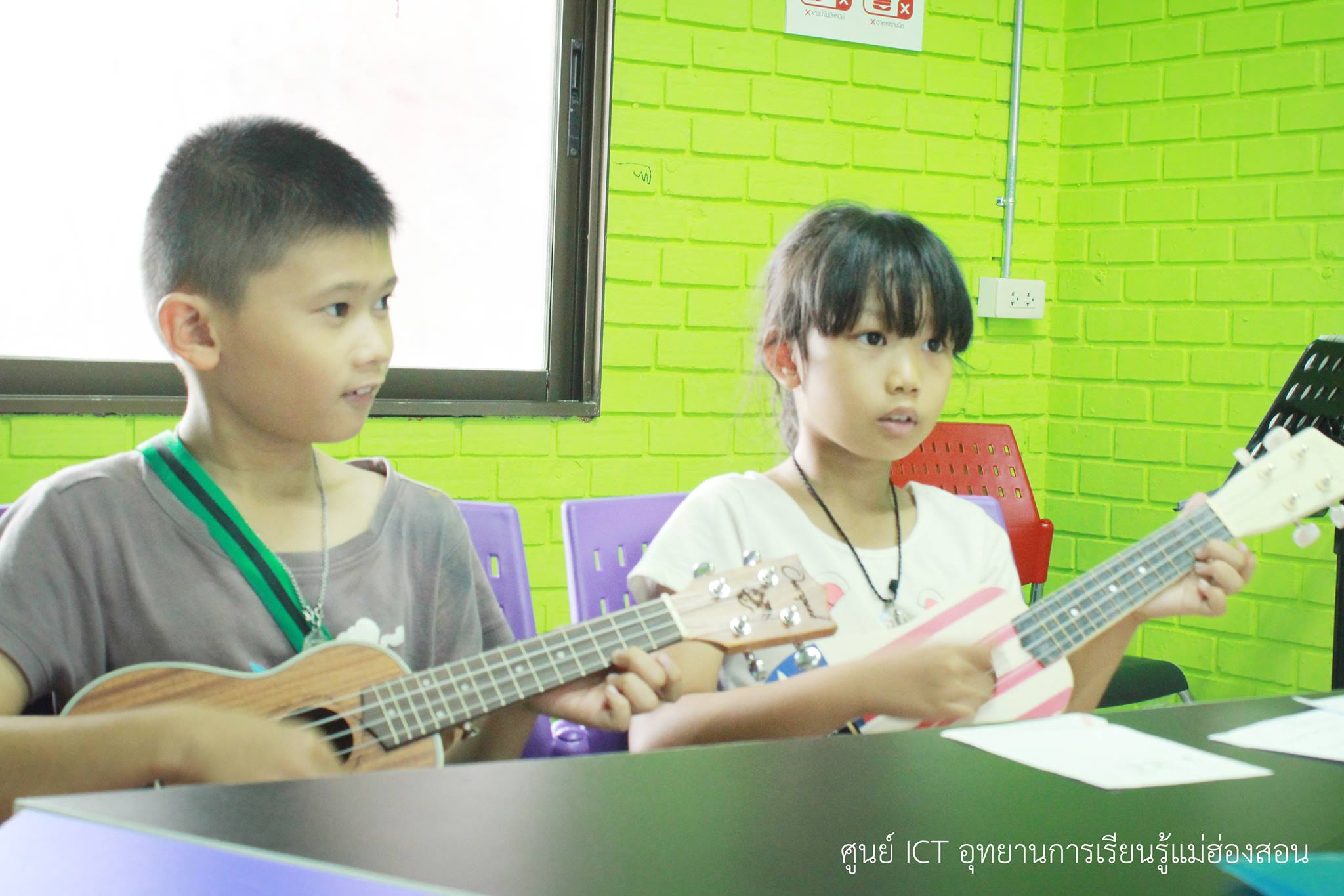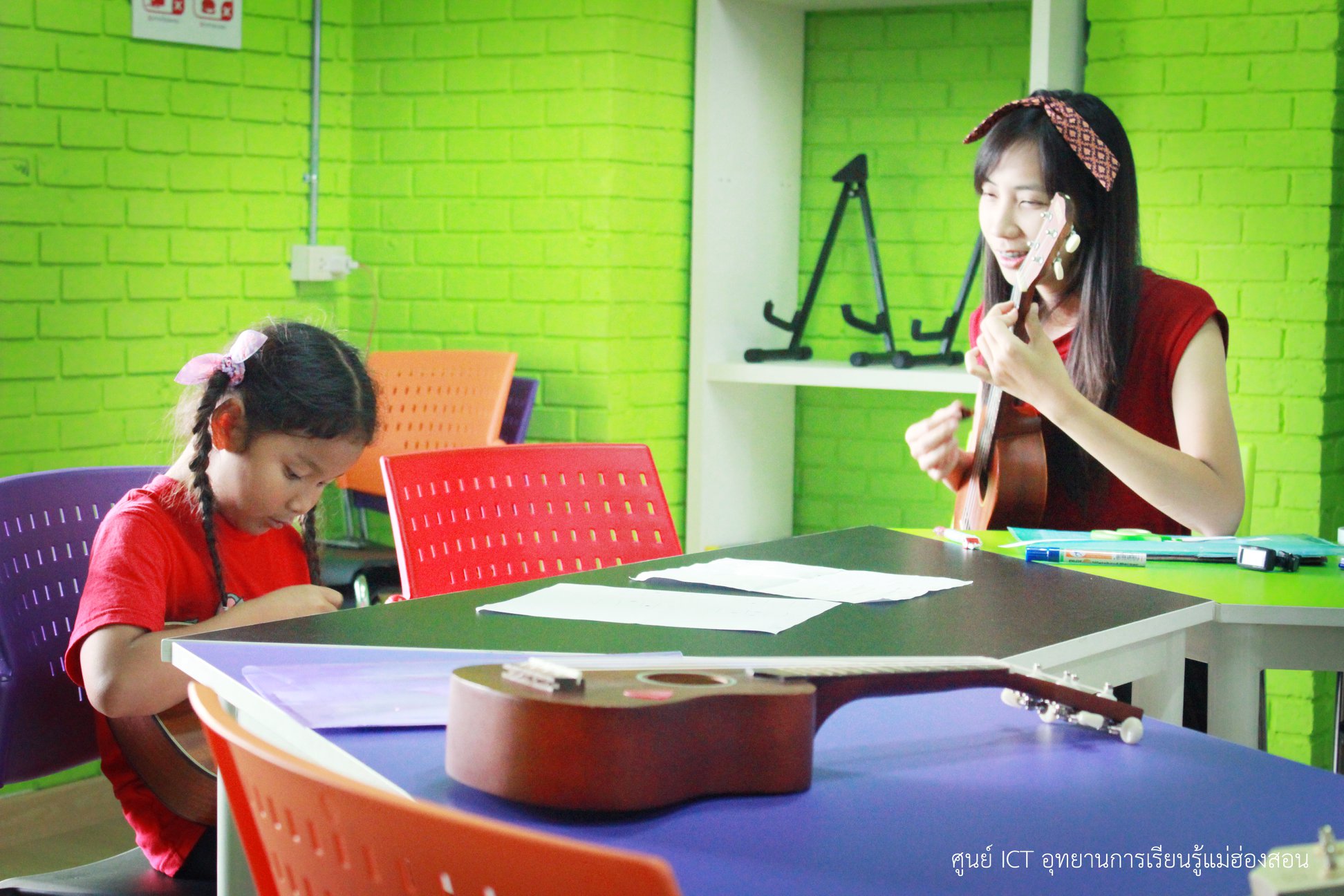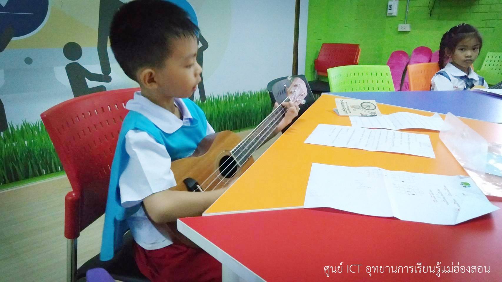 กิจกรรมเรียนดนตรีอูคูเลเล่ เล่นวันละนิด ช่วยให้จิตแจ่มใส เรียนทุกวัน ยกเว้นวันจันทร์และวันศุกร์ ณ ห้อง Study Room