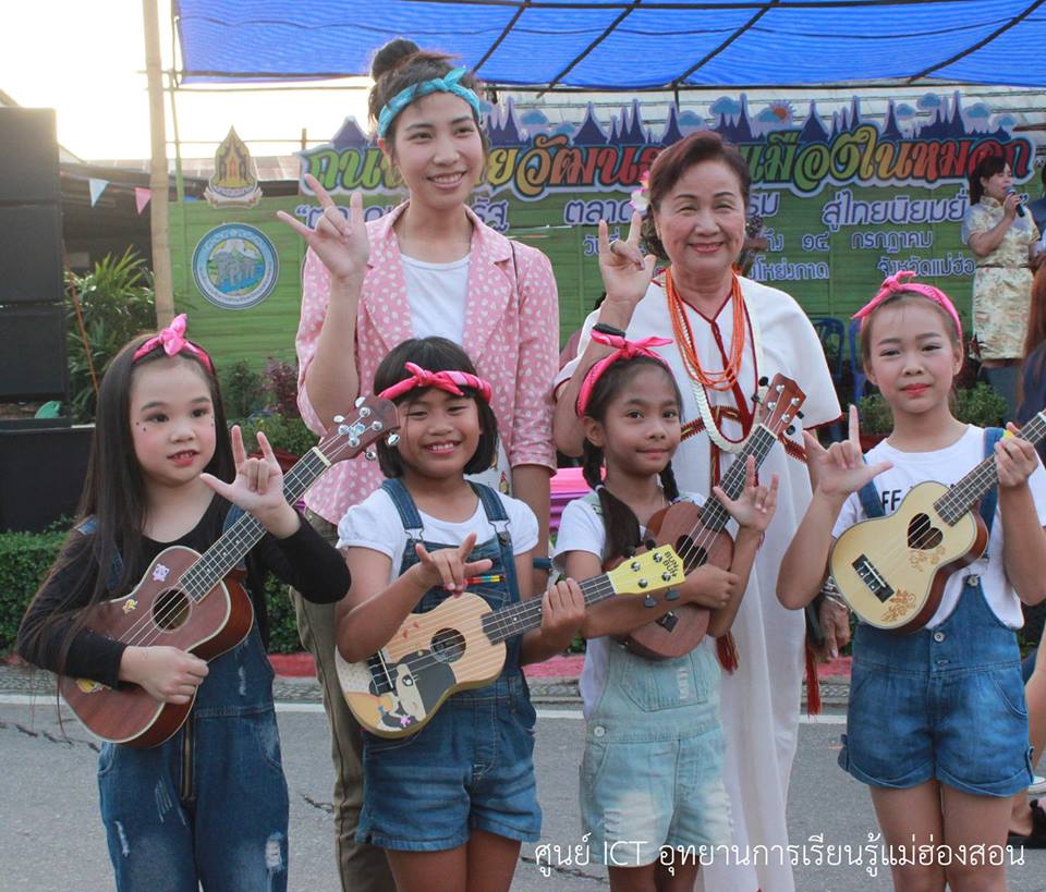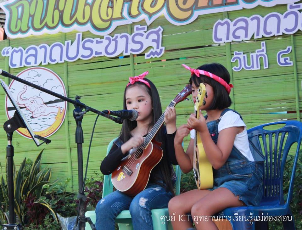 เด็กๆ คลาสเรียนอูคูเลเล่ เข้าร่วมกิจกรรมถนนสายวัฒนธรรมเมืองในหมอก จำนวน 4 คน เมื่อวันที่ 16 มิ.ย. 2561