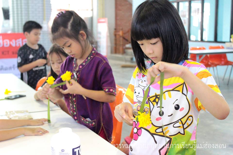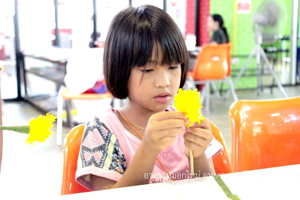 น้อง ๆ มีความมุ่งมั่นและตั้งใจในการทำดอกไม้มาก ผลงานของแต่ละสวยงามไม่แพ้กัน