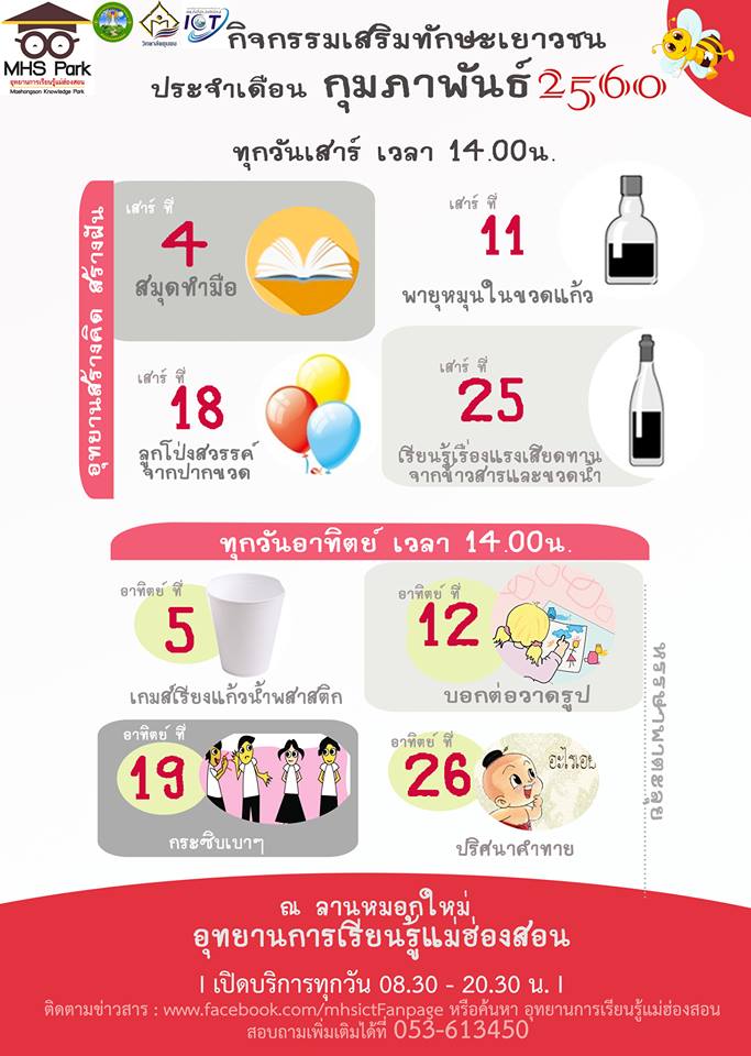 ตารางกิจกรรมเสริมทักษะเยาวชนประจำเดือน ก.พ.60