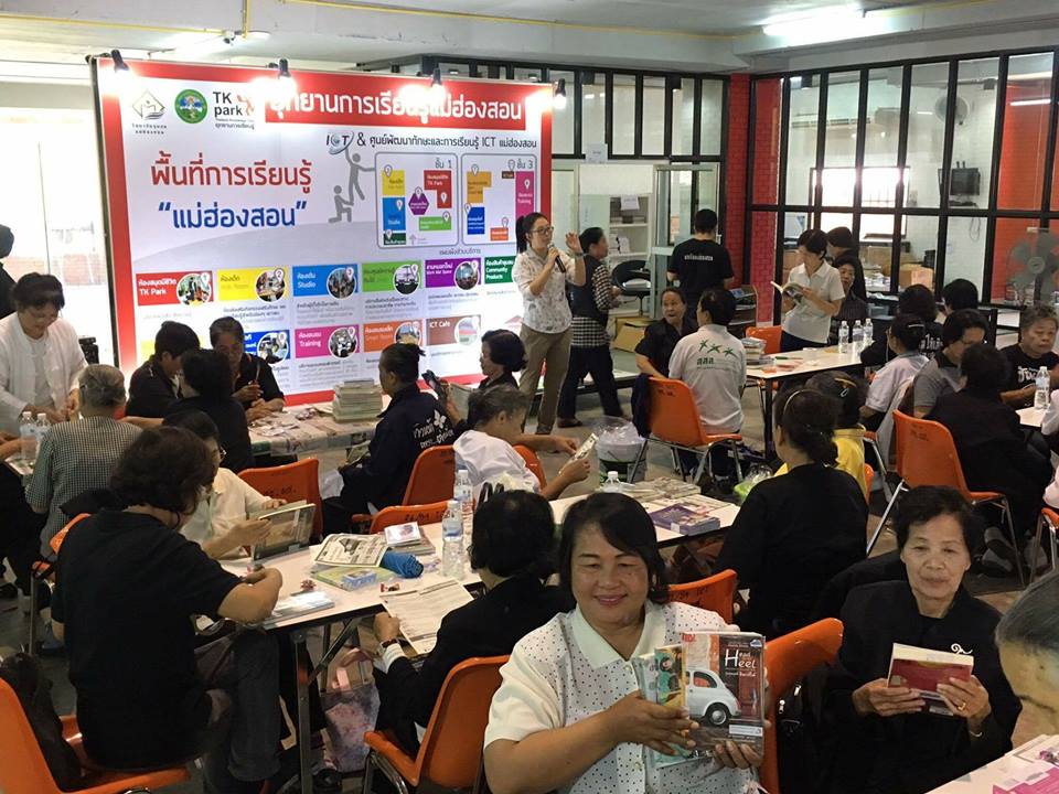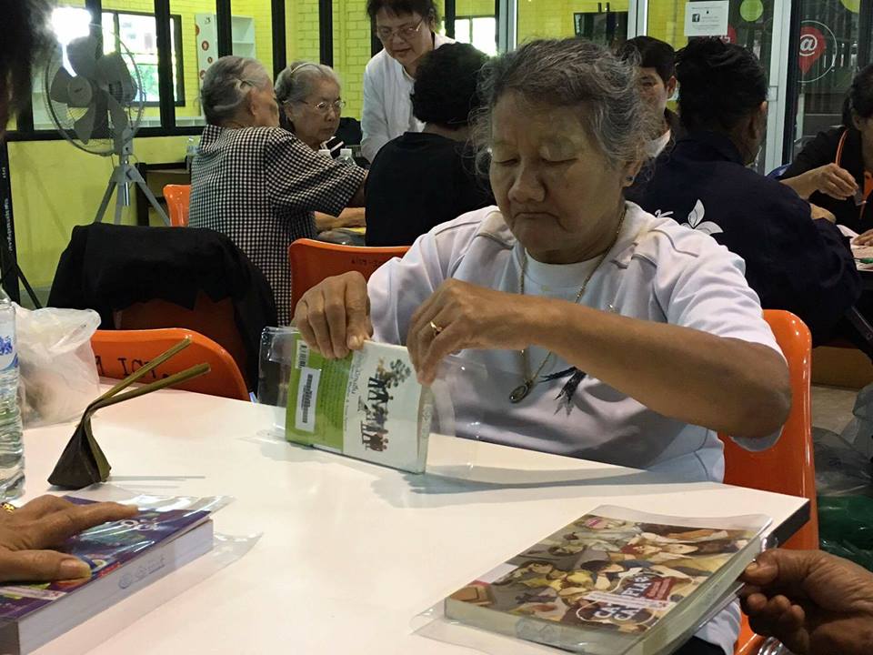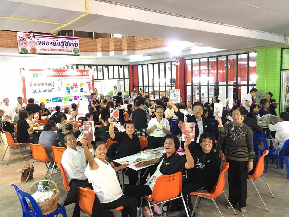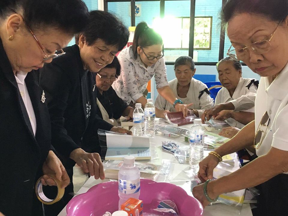 กลุ่มนักเรียนผู้สูงอายุเทศบาลเมืองแม่ฮ่องสอน ร่วมห่อปกหนังสือสำหรับให้บริการ ณ ห้องสมุดมีชีวิตอุทยานการเรียนรู้แม่ฮ่องสอน