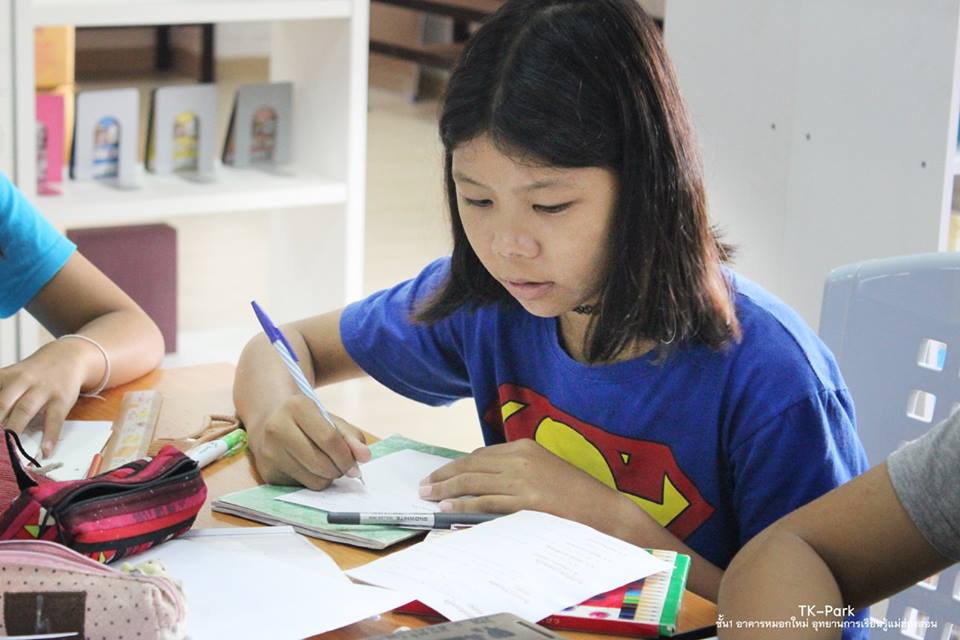 บรรยากาศผู้ใช้บริการลานกิจกรรมหมอกใหม่ ซึ่งมีเด็ก ๆ และเยาวชน นักเรียนมานั่งทำงาน และการบ้านส่งอาจารย์ ณ อุทยานการเรียนรู้แม่ฮ่องสอน ชั้น 1 อาคารหมอกใหม่