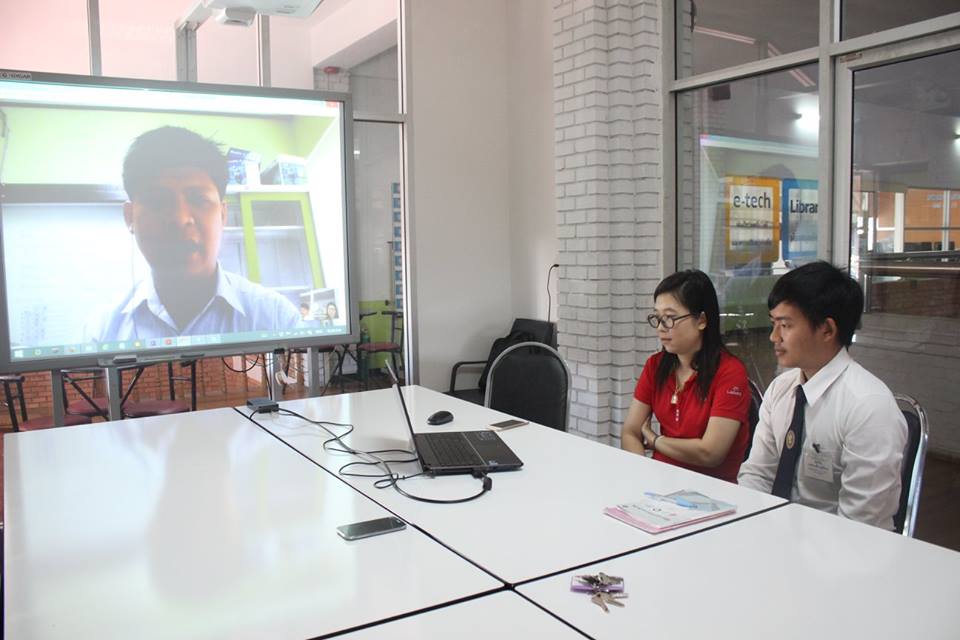 อาจารย์ เอมอร ลิ้มวัฒนา ผู้ช่วยผู้อำนวยการศูนย์ฯ ร่วมกับอาจารย์พิภพ มณีจำนงค์ ผู้ช่วยคณบดี จากวิทยาลัยน่าน มหาวิทยาลัยราชภัฏอุตรดิตถ์ นิเทศนักศึกษาฝึกงานผ่าน VDO Conference ณ ศูนย์ ICT แม่ฮ่องสอน เมื่อวันที่ 1 ธันวาคม 2558 เวลา 13.00 - 14.00 น.