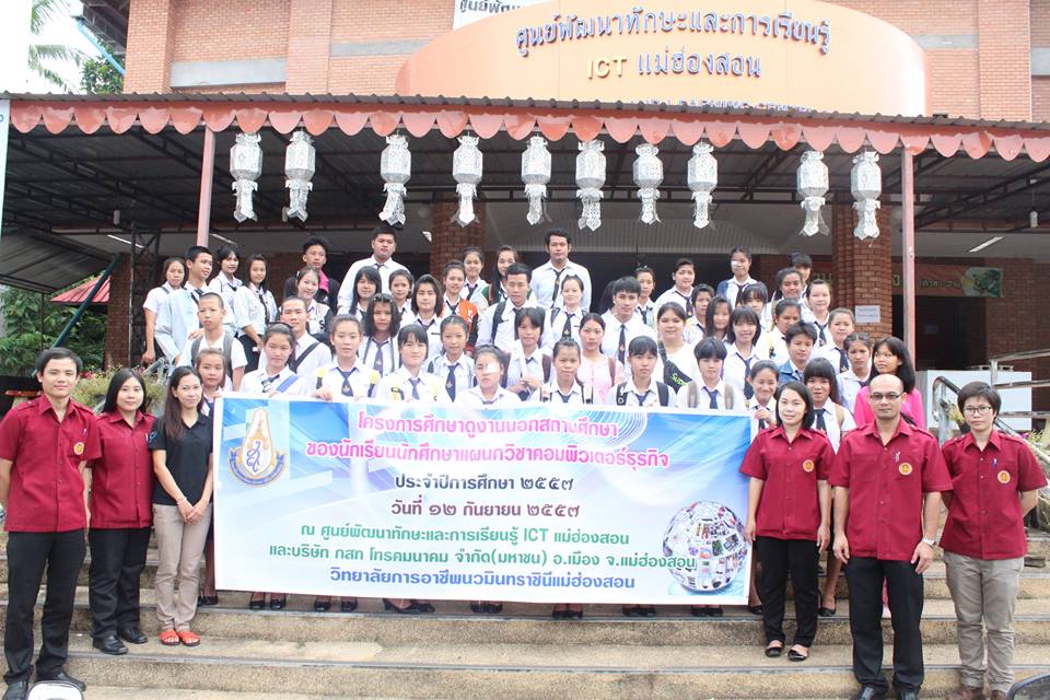 คณะอาจารย์และนักศึกษาวิทยาลัยการอาชีพนวมินทร์ทราชินีแม่ฮ่องสอน ระดับปวช.1และปวส.1 จำนวน 65 คน เข้าเยี่ยมชมการดำเนินงานของศูนย์พัฒนาทักษะและการเรียนรู้ ICT แม่ฮ่องสอน เมื่อวันที่ 12 กันยายน 2557