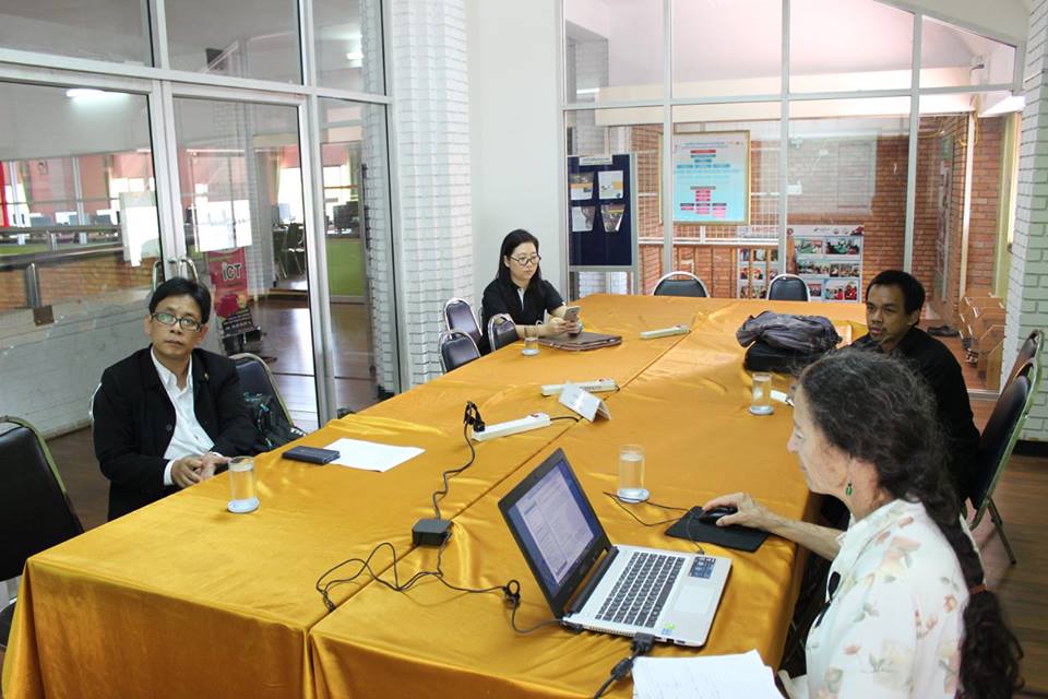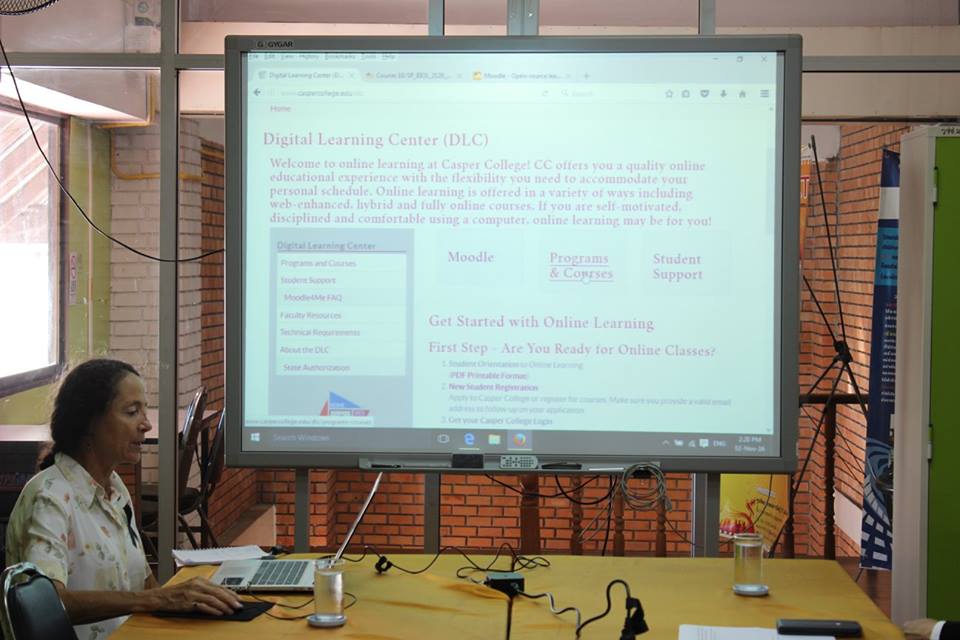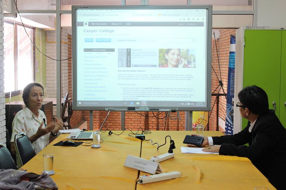 วิทยาลัยชุมชนแม่ฮ่องสอนโดยศูนย์ ICT แม่ฮ่องสอน หารือและรับฟังข้อคิดเห็นแนวทางการนำ Moodle มาใช้ในการสร้างสื่อการเรียนการสอน E-Learning จากอาจารย์มาเรีย วิทยาลัยแคสเปอร์ (Casper College) ณ ห้อง Smart Room ศูนย์ ICT แม่ฮ่องสอน ชั้น 3