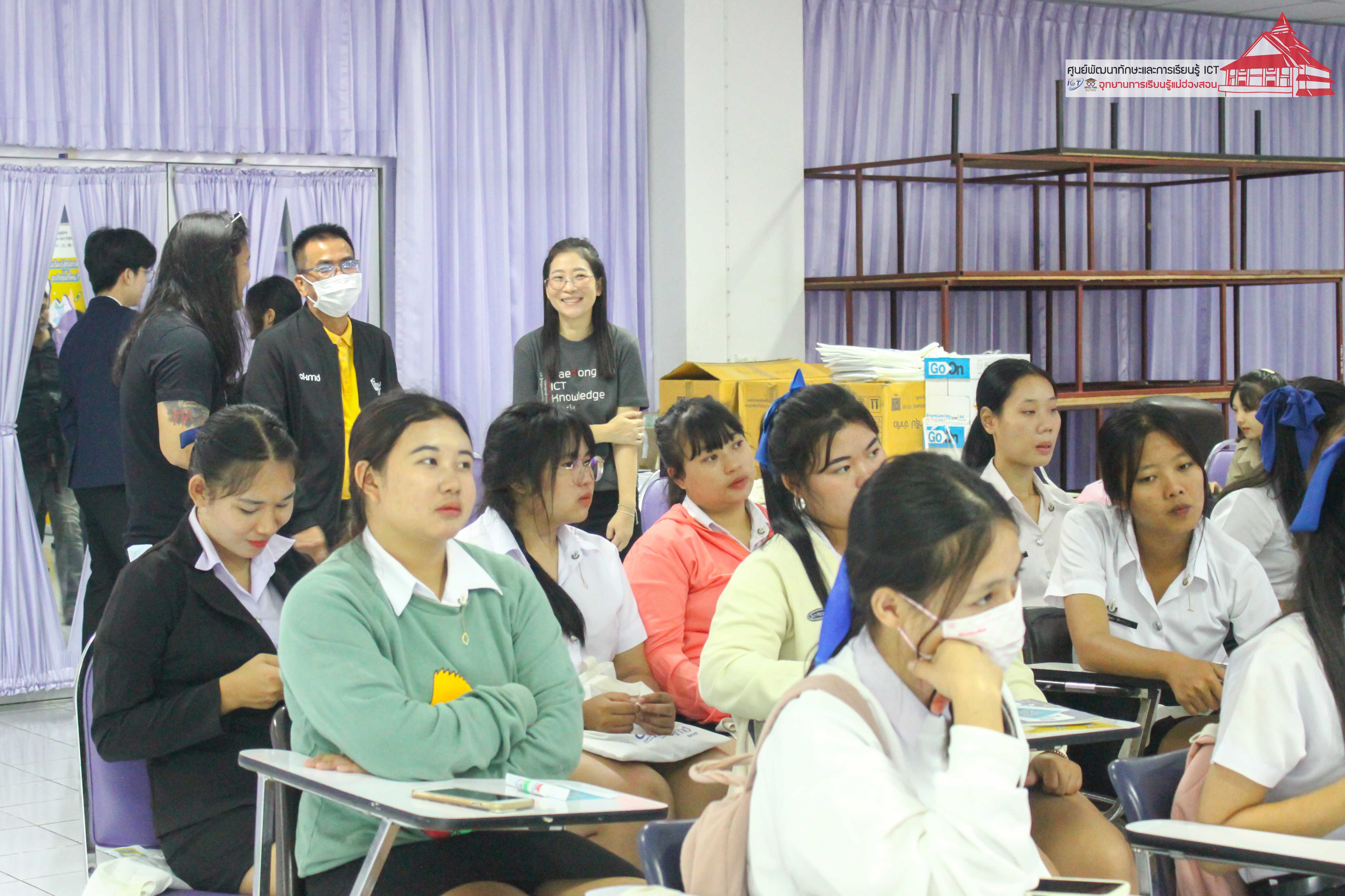 สถาบันอุทยานการเรียนรู้ TK Park จัดกิจกรรมตลาดนัดความรู้ในภูมิภาค (Knowledge Market) ภายใต้โครงการ Fin Lab โครงการคาราวานความรู้ตลาดทุนรุกสู่ภูมิภาค และบ่มเพาะต้นแบบคนรุ่นใหม่ (New Gen) เข้าสู่ตลาดทุน ระหว่างวันที่ 16 - 18 กรกฎาคม 2567 ณ อาคารดงรัก วิทยาลัยชุมชนแม่ฮ่องสอน โดยมีนายธัชกร ชาติตระกูล รองนายกเทศมนตรีเมืองแม่ฮ่องสอน กล่าวทักทาย นายคมสัน คูสินทรัพย์ ผู้อำนวยการวิทยาลัยชุมชนแม่ฮ่องสอน กล่าวต้อนรับ กล่าวเปิดกิจกรรมโดย ดร.ทวารัฐ สูตะบุตร ผู้อำนวยการสำนักงาน และพัฒนาองค์ความรู้ พร้อมด้วยนางสาวธัญลักษณ์ กันทะ รองนายกเทศมนตรีเมืองแม่ฮ่องสอน เดินชมบูธนิทรรศการ