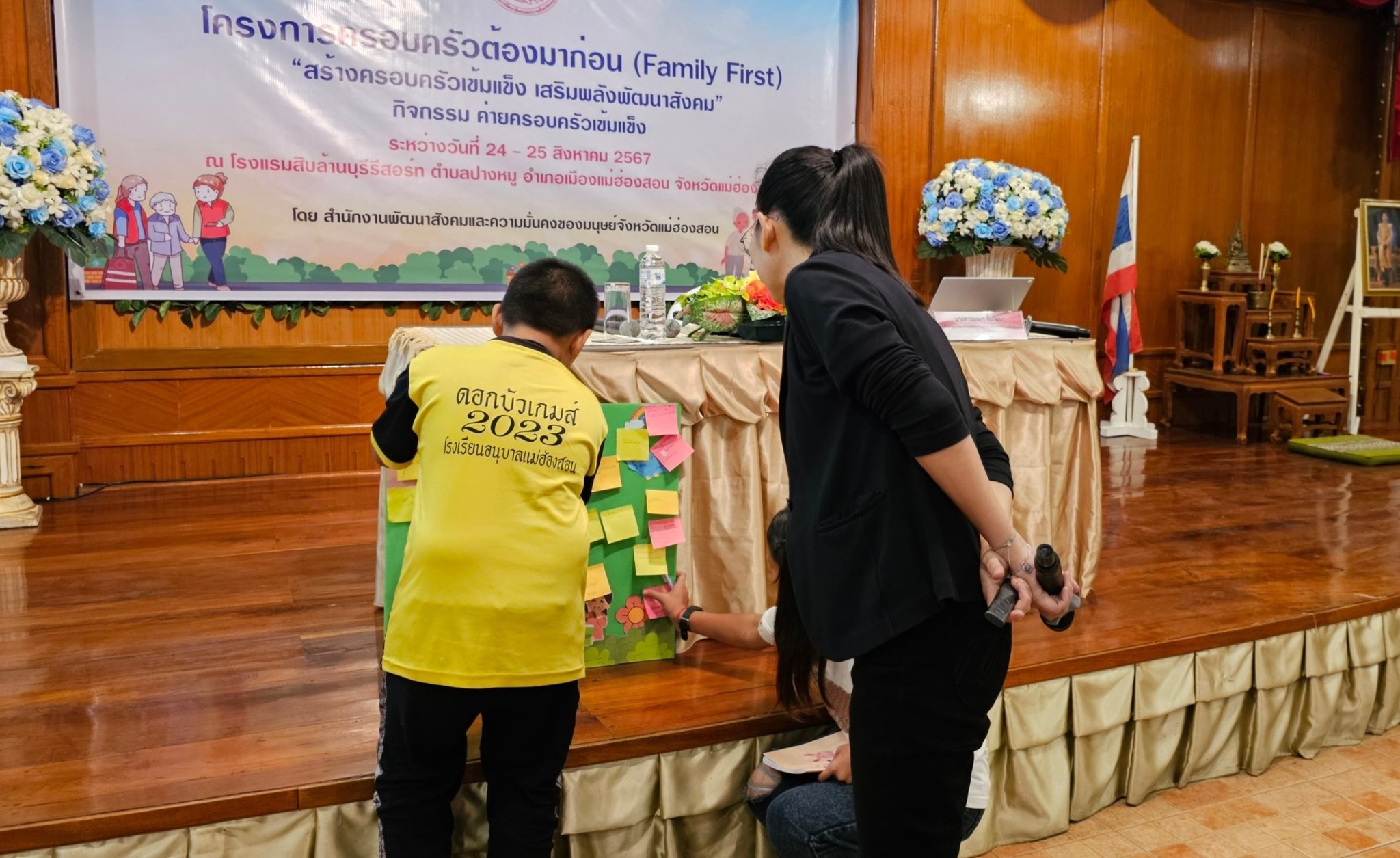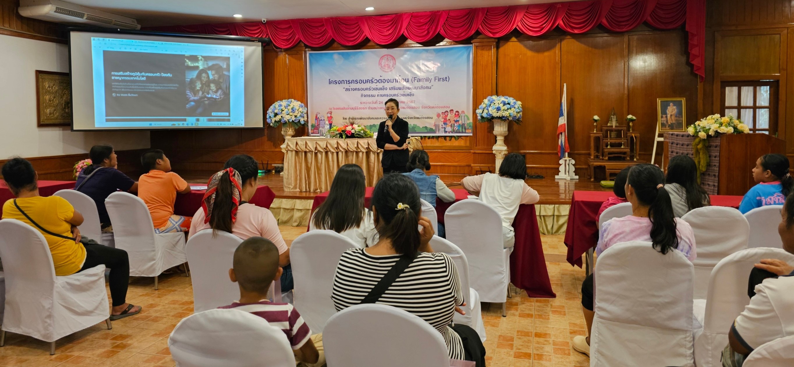 อาจารย์เอมอร ลิ้มวัฒนา ครูชำนาญการวิทยาลัยชุมชนแม่ฮ่องสอน หัวหน้าศูนย์พัฒนนาทักษะและการเรียนรู้ ICT แม่ฮ่องสอน อุทยานการเรียนรู้แม่ฮ่องสอน บรรยายให้ความรู้และฝึกปฏิบัติ หัวข้อ “การเสริมสร้างภูมิคุ้มกันครอบครัว ป้องกันอาชญากรรมเทคโนโลยี” ภายใต้โครงการครอบครัวต้องมาก่อน (Family First) “สร้างครอบครัวเข้มแข็ง เสริมพลังพัฒนาสังคม” กิจกรรมค่ายครอบครัวเข้มแข็ง เพื่อเป็นการเสริมสร้างสภาพแวดล้อมในครอบครัวและสังคมให้เป็นพื้นที่ปลอดภัยโดยเฉพาะอย่างยิ่งด้านเทคโนโลยีสำหรับคนในครอบครัวทุกช่วงวัย จำนวน 50 คน เมื่อวันที่ 24 สิงหาคม 2567 เวลา 18.00 - 19.00 น. ณ โรงแรมสิบล้านบุรีรีสอร์ท จัดโดยสำนักงานพัฒนาสังคมและความมั่นคงของมนุษย์จังหวัดแม่ฮ่องสอน