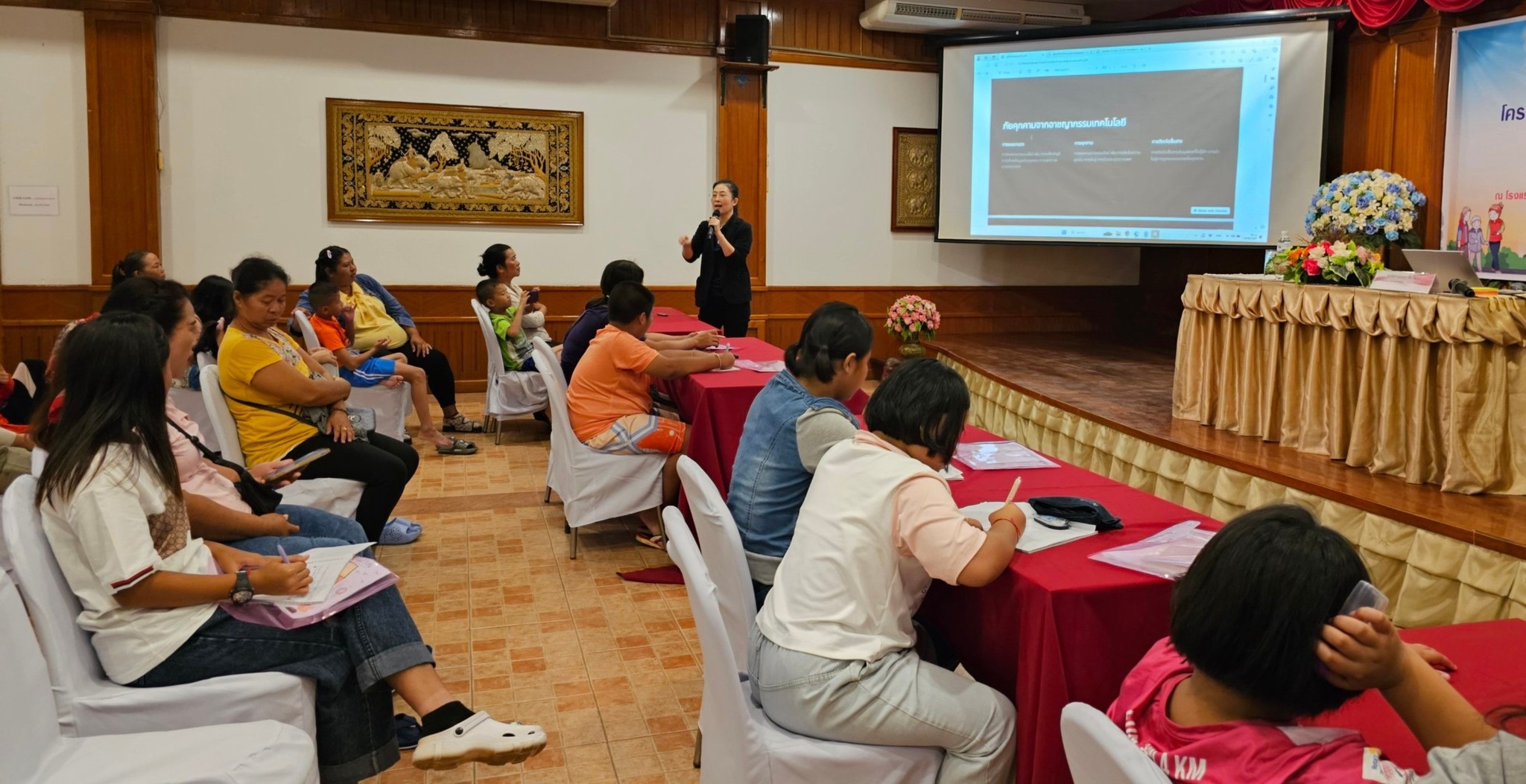 บรรยายให้ความรู้และฝึกปฏิบัติ หัวข้อ “การเสริมสร้างภูมิคุ้มกันครอบครัว ป้องกันอาชญากรรมเทคโนโลยี” ภายใต้โครงการครอบครัวต้องมาก่อน (Family First) “สร้างครอบครัวเข้มแข็ง เสริมพลังพัฒนาสังคม”