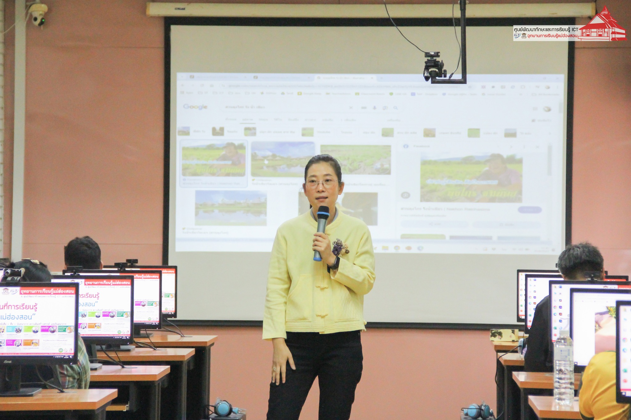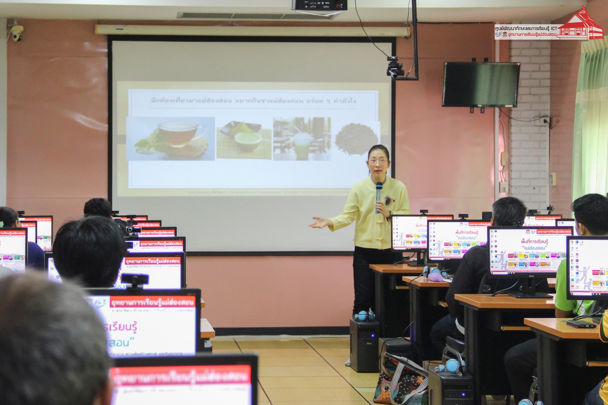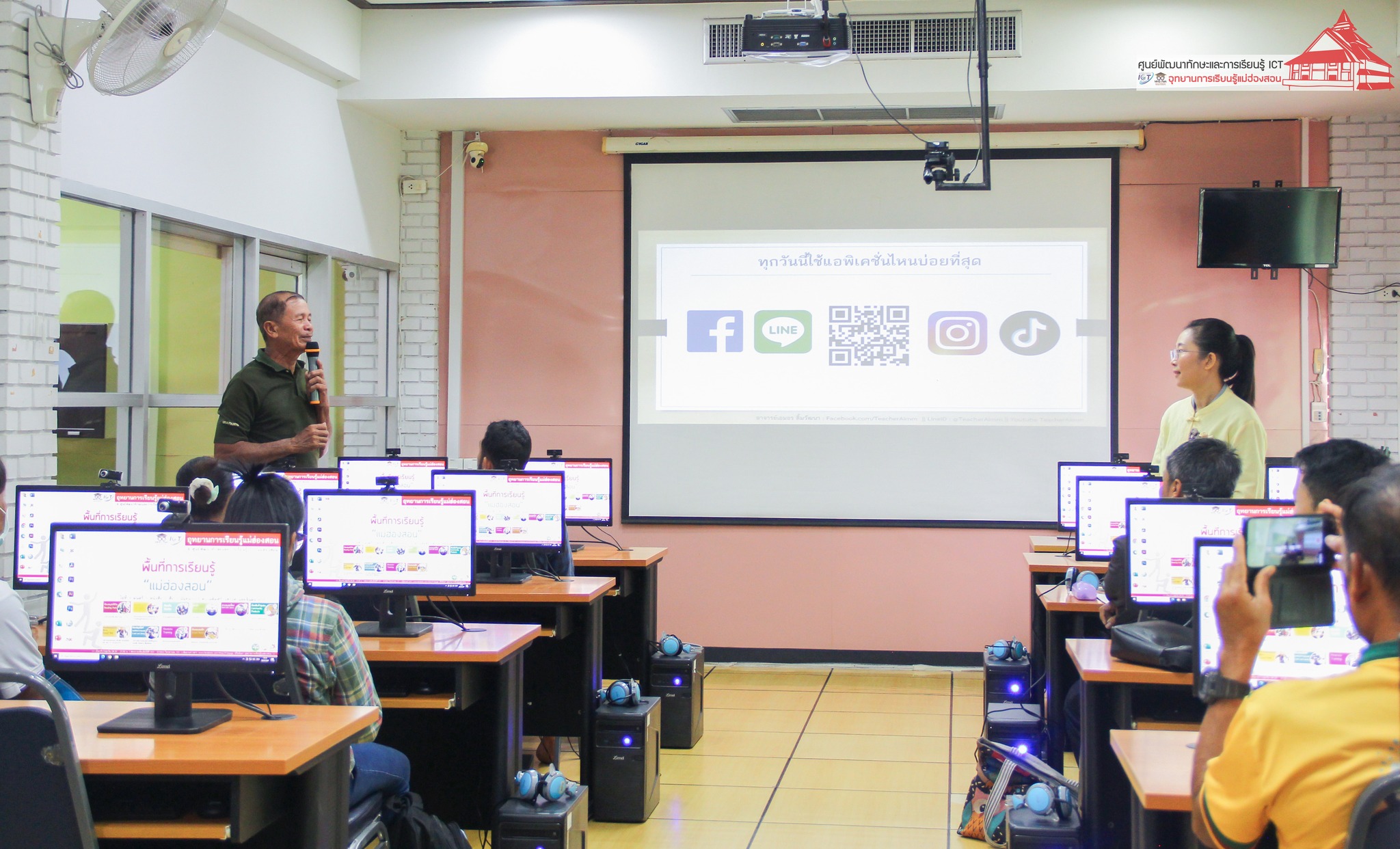 อาจารย์เอมอร ลิ้มวัฒนา ครูชำนาญการวิทยาลัยชุมชนแม่ฮ่องสอน หัวหน้าศูนย์พัฒนาทักษะและการเรียนรู้ ICT แม่ฮ่องสอน อุทยานการเรียนรู้แม่ฮ่องสอน บรรยายให้ความรู้แก่เจ้าหน้าที่ผู้รับผิดชอบงาน ศพก. ระดับอำเภอ ประธานศูนย์หลักและประธานศูนย์เครือข่าย ศพก. จำนวน 35 ราย ในหัวข้อ “การเตรียมความพร้อมสู่เกษตรต้นแบบ เรื่อง การทำตลาดออนไลน์เพื่อการจำหน่ายสินค้าเกษตร” เพื่อพัฒนาศักยภาพของประธานศูนย์หลักและประธานศูนย์เครือข่าย ศพก. ภายใต้โครงการจัดอบรมพัฒนาศักยภาพเกษตรกรต้นแบบโครงการศูนย์การเรียนรู้การเพิ่มประสิทธิภาพการผลิตสินค้าการเกษตร สำนักงานเกษตรจังหวัดแม่ฮ่องสอน เมื่อวันที่ 29 สิงหาคม 2567 ณ ห้องอบรมคอมพิวเตอร์ ศูนย์พัฒนาทักษะและการเรียนรู้ ICT แม่ฮ่องสอน อุทยานการเรียนรู้แม่ฮ่องสอน