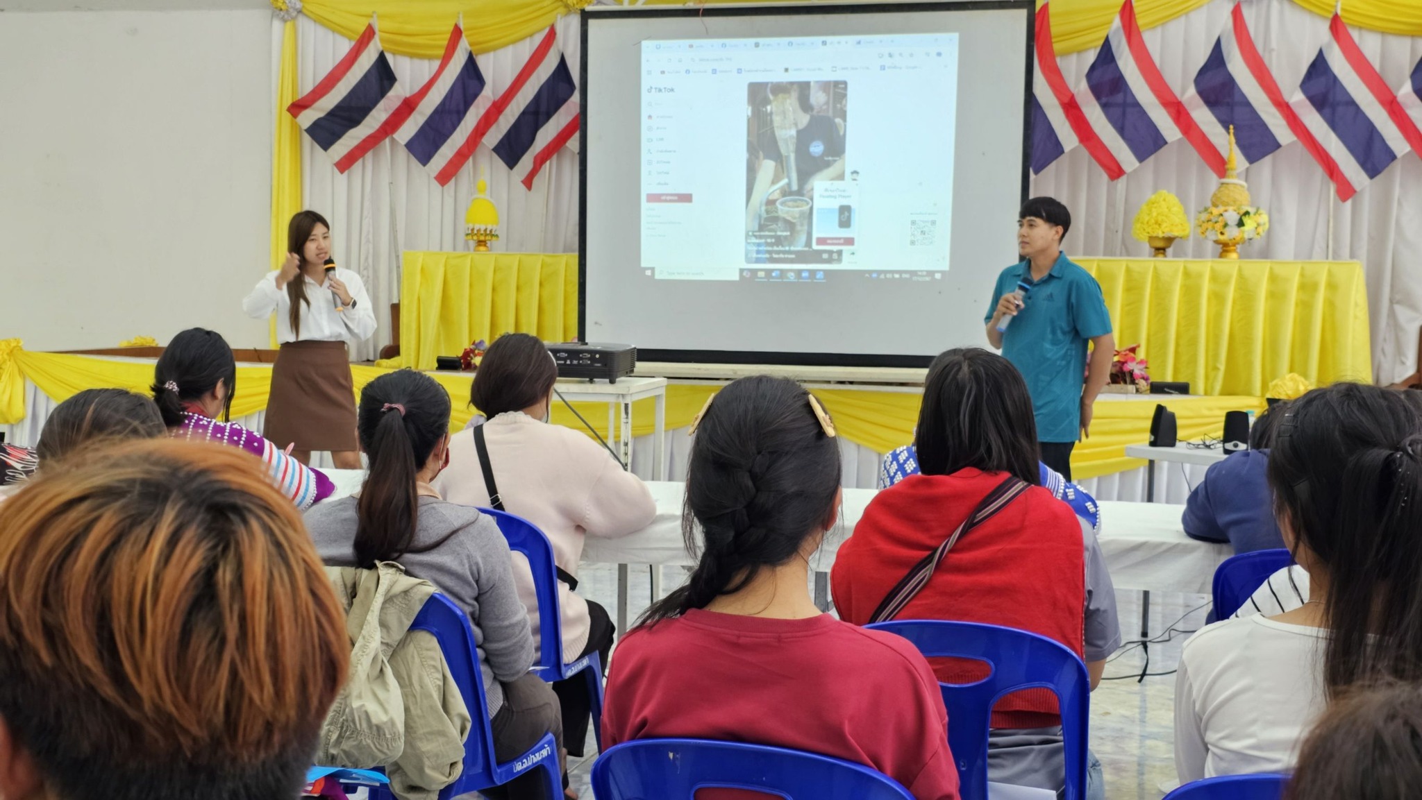 วิทยากรโดยนางสาวสุพิชญา เกิดสุขศิริมงคล เจ้าของช่อง TikTok / Facebook / Youtube ลูกพีชแชลแนล / นายสมบัติ เจ้าของช่อง TikTok / Facebook / Youtube kursuar Maehongson และ อาจารย์เอมอร ลิ้มวัฒนา อาจารย์ประจำสาขาเทคโนโลยีดิจิทัลธุรกิจ วิทยาลัยชุมชนแม่ฮ่องสอน หัวหน้าศูนย์พัฒนาทักษะและการเรียนรู้ ICT อุทยานการเรียนรู้แม่ฮ่องสอน