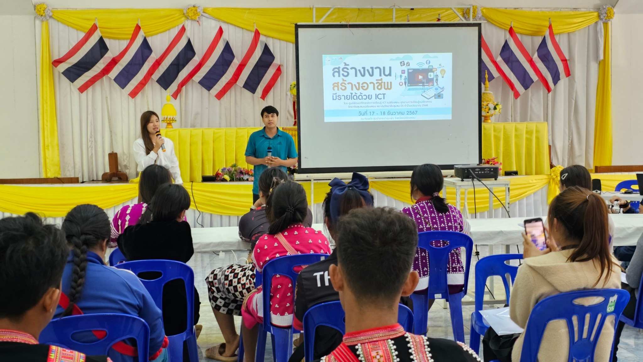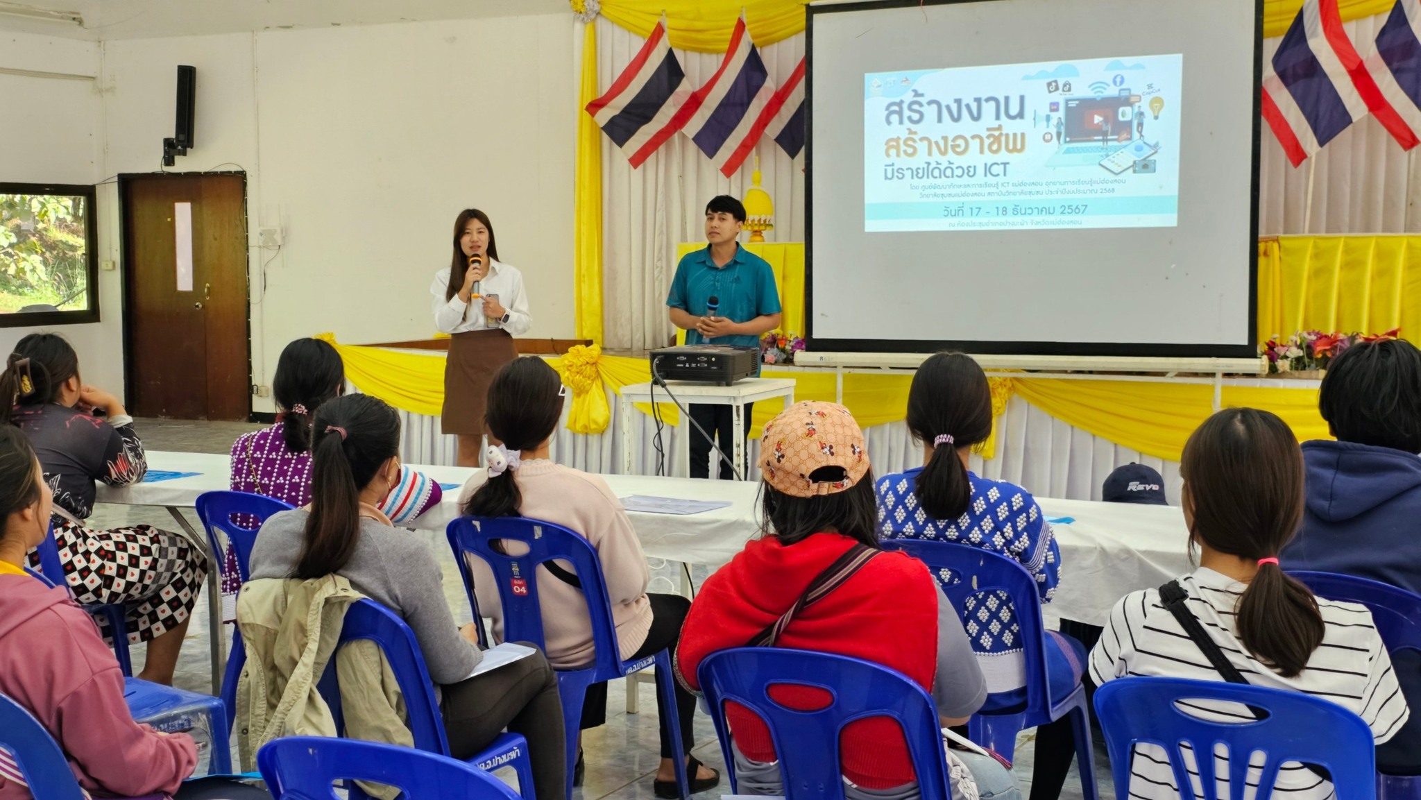 ศูนย์พัฒนาทักษะและการเรียนรู้ ICT แม่ฮ่องสอน อุทยานการเรียนรู้แม่ฮ่องสอน วิทยาลัยชุมชนแม่ฮ่องสอน จัดกิจกรรมเสริมทักษะการเรียนรู้ สร้างงาน สร้างอาชีพ มีรายได้ด้วย ICT ครั้งที่ 1 หลักสูตร ดิจิทัลคอมเมิร์ซสำหรับผู้ประกอบการ และชุมชน ณ หอประชุมที่ว่าการอำเภอปางมะผ้า ในวันที่ 17 - 18 ธันวาคม 2567 โดยมีนายสุรินทร์ มหาวรรณ์ รองผู้อำนวยการวิทยาลัยชุมชนแม่ฮ่องสอน โดยมีนายวีรพงษ์ รัตนศรี นายอำเภอปางมะผ้าเป็นประธานในพิธี กล่าวต้อนรับโดยนายสุรินทร์ มหาวรรณ์ รองผู้อำนวยการวิทยาลัยชุมชนแม่ฮ่องสอน