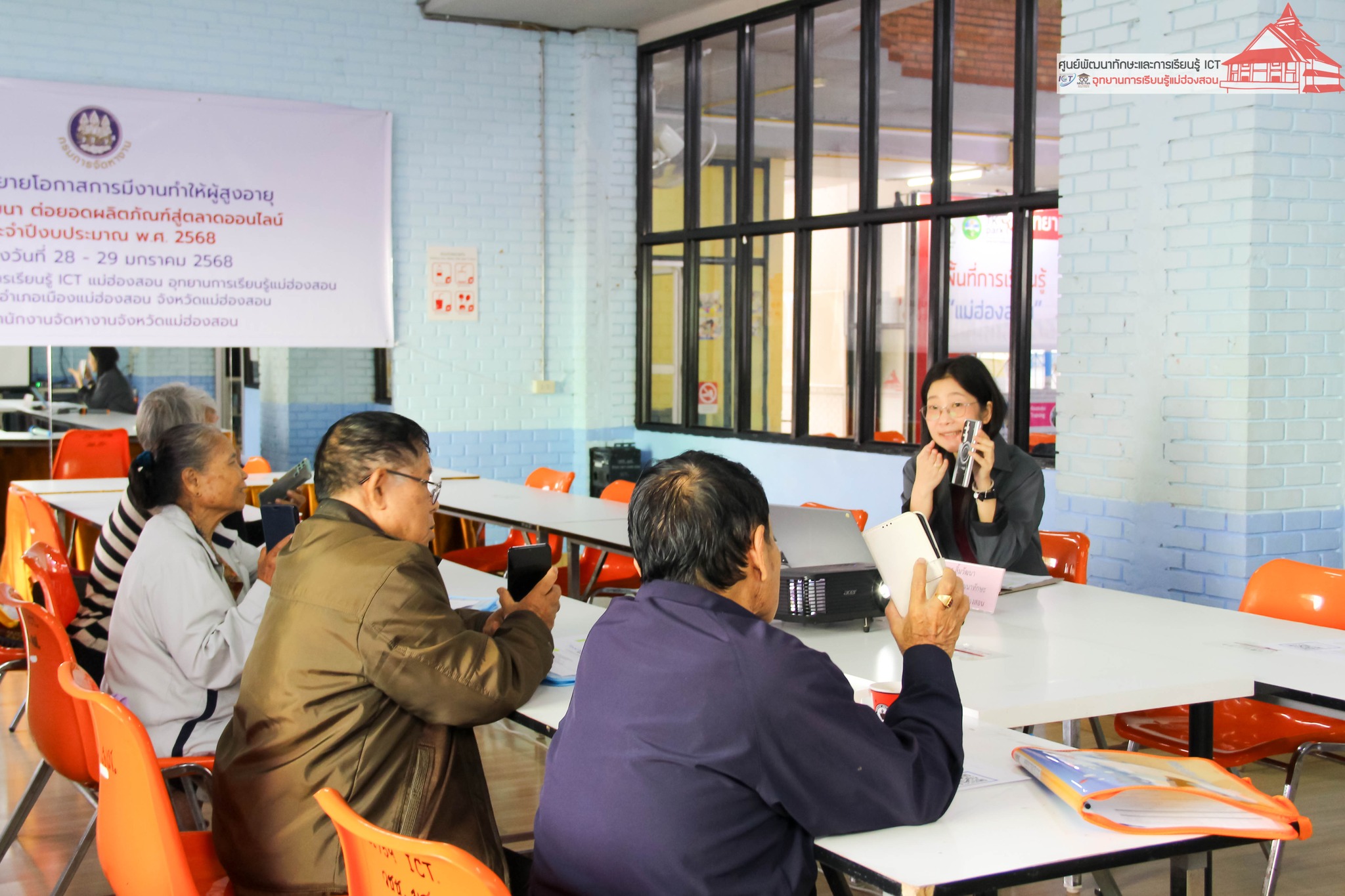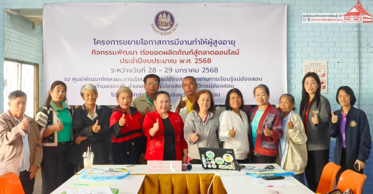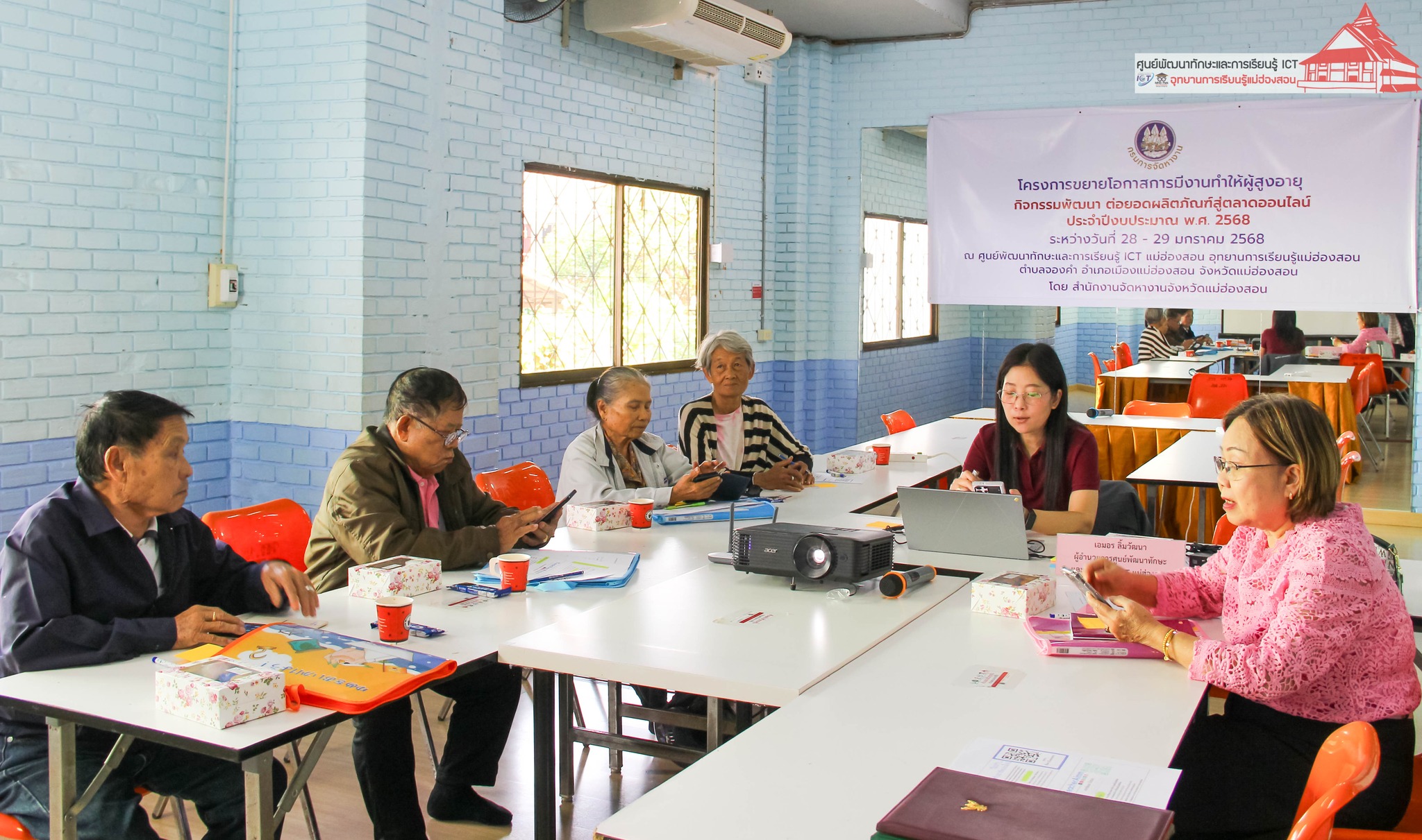 บรรยายให้ความรู้ แก่กลุ่มผู้สูงอายุ อำเภอเมือง จังหวัดแม่ฮ่องสอน ในโครงการขยายโอกาสมีงานทำให้ผู้สูงอายุ กิจกรรมส่งเสริมการประกอบอาชีพอิสระให้ผู้สูงอายุ พัฒนาต่อยอดผลิตภัณฑ์สู่ตลาดออนไลน์