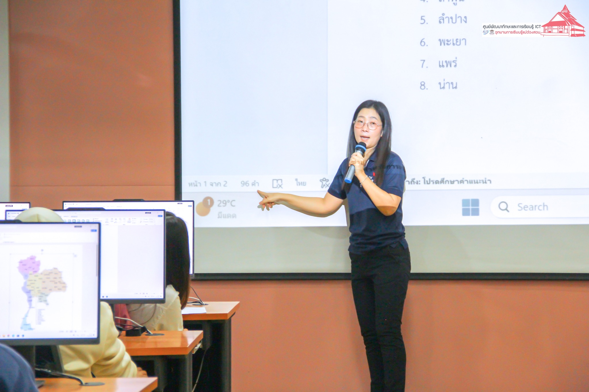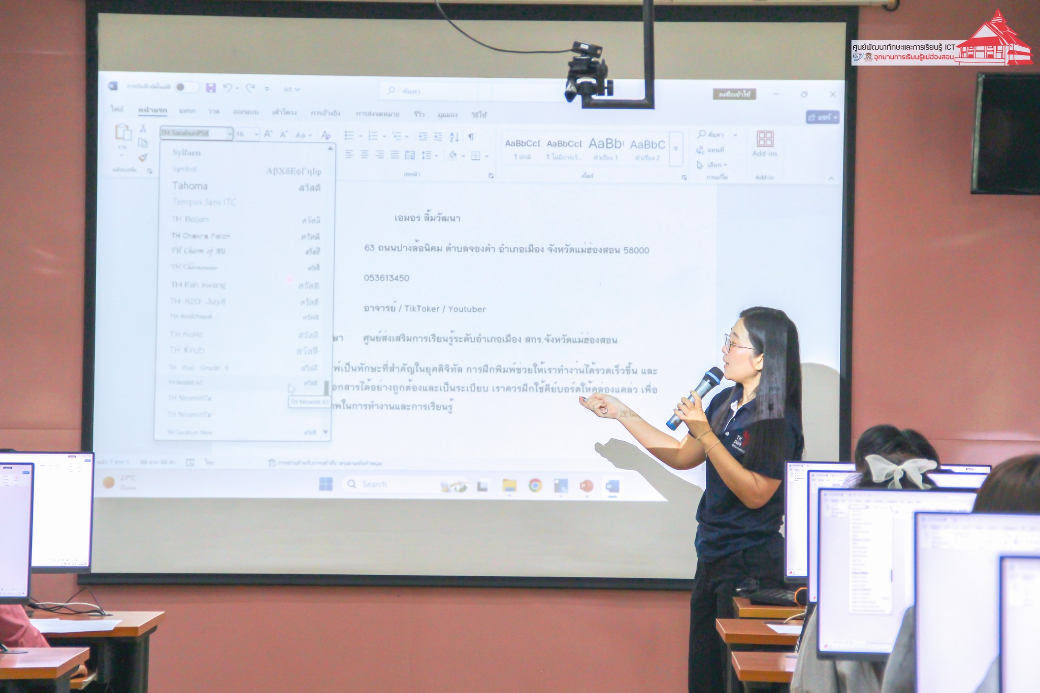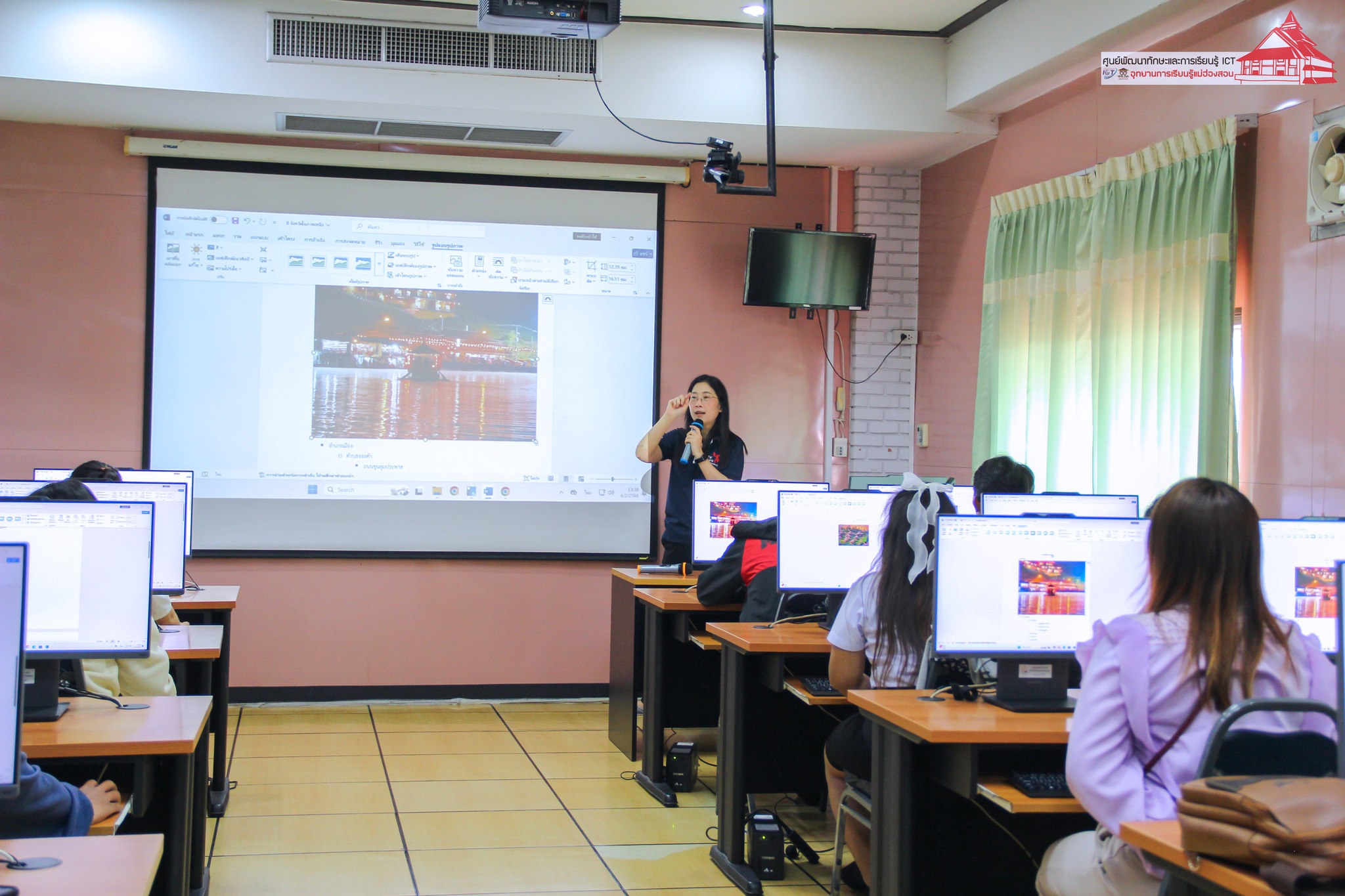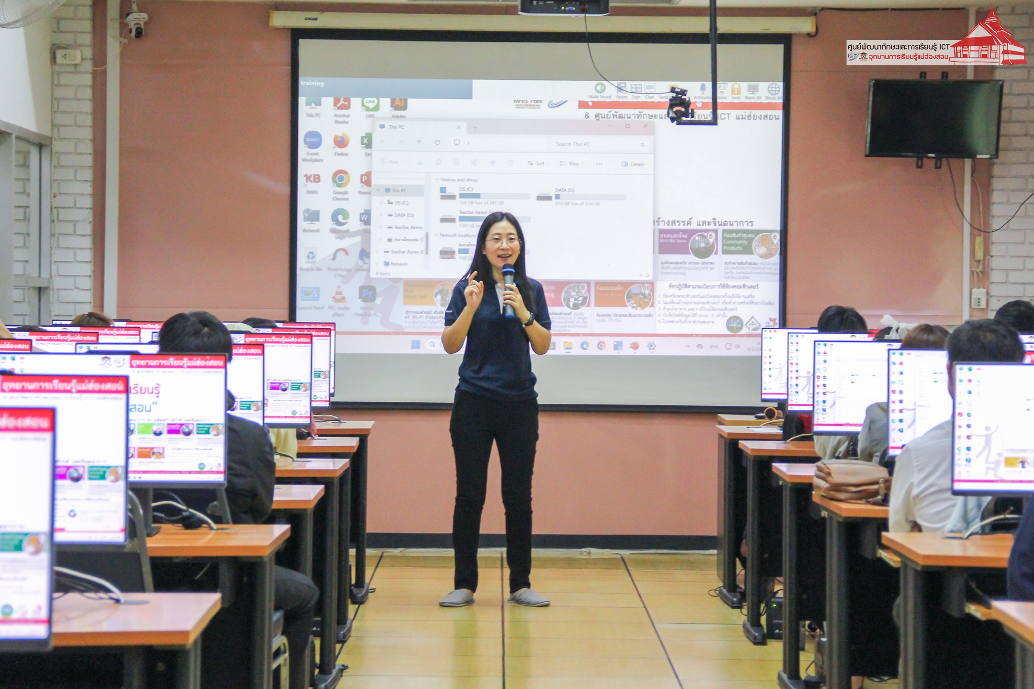 อาจารย์เอมอร ลิ้มวัฒนา อาจารย์วิทยาลัยชุมชนแม่ฮ่องสอน หัวหน้าศูนย์พัฒนาทักษะและการเรียนรู้ ICT อุทยานการเรียนรู้แม่ฮ่องสอนบรรยายให้ความรู้ และฝึกปฏิบัติการใช้งานคอมพิวเตอร์ การเตรียมตัวเข้าสอบ N-NET แก่นักศึกษาศูนย์ส่งเสริมการเรียนรู้ (สกร.) อำเภอเมืองแม่ฮ่องสอน เพื่อสร้างความรู้ ความเข้าใจในการใช้งานคอมพิวเตอร์ การใช้งานโปรแกรมสำนักงาน สำหรับไปประยุกต์ใช้ในการเรียน จำนวน 40 คน เมื่อวันที่ 4 กุมภาพันธ์ 2568 เวลา 08.30 - 16.00 น. ณ ห้อง Training ศูนย์พัฒนาทักษะและการเรียนรู้ ICT อุทยานการเรียนรู้แม่ฮ่องสอน