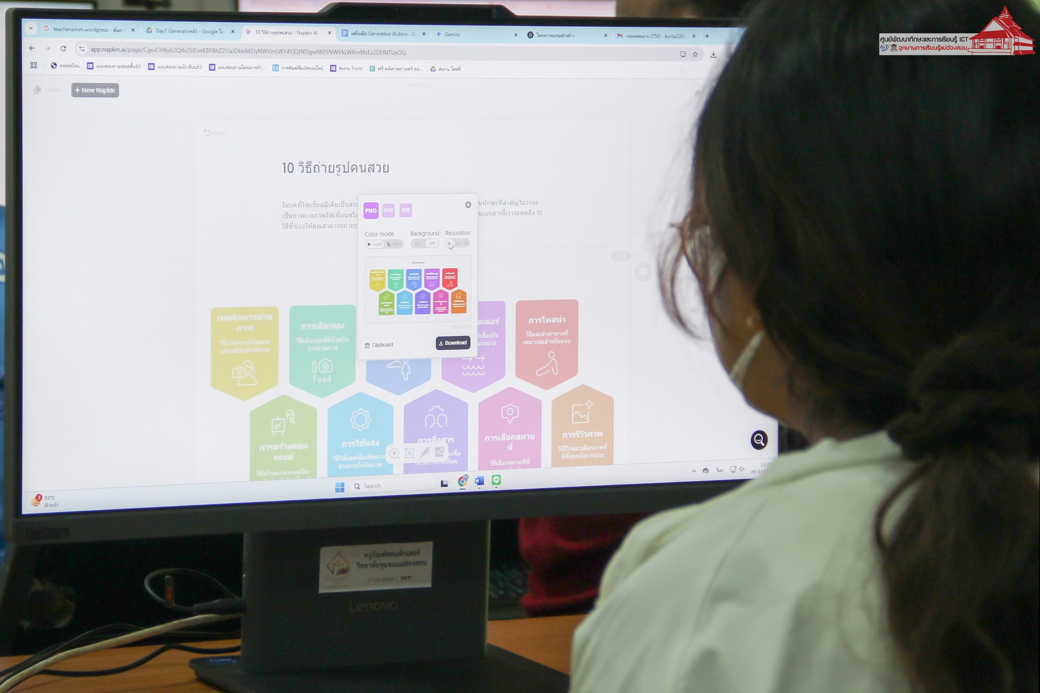 เนื้อหาการเรียนรู้ประกอบด้วย การใช้ Generative AI เพื่อเพิ่มประสิทธิภาพการทำงาน ChatGPT, Gemini, Copilot, DeepSeek และ Perplexity / ถอดบันทึกการประชุมผ่าน Transkriptor.com / การแต่งเพลงด้วย Suno / การสร้างคลิปหลายภาษาด้วย Heygen / การสร้างภาพด้วย AI Prompt / เทคนิคการใช้ Google Search / การจัดการไฟล์ผ่าน Google Drive / การใช้งาน Google Docs, Sheets, Slides /การสร้างแบบสอบถามด้วย Google Forms / การใช้ Google Translate แปลงข้อความจากภาพ / การจดบันทึกด้วย Google Keep / การออกแบบสื่อการนำเสนอ โปสเตอร์ ปกเอกสาร รายงาน และสื่อภาพเคลื่อนไหวด้วยโปรแกรม Canva / การตัดต่อคลิปวิดีโอด้วย Capcut