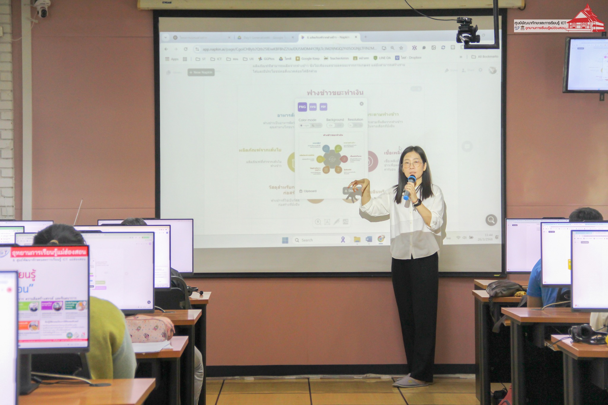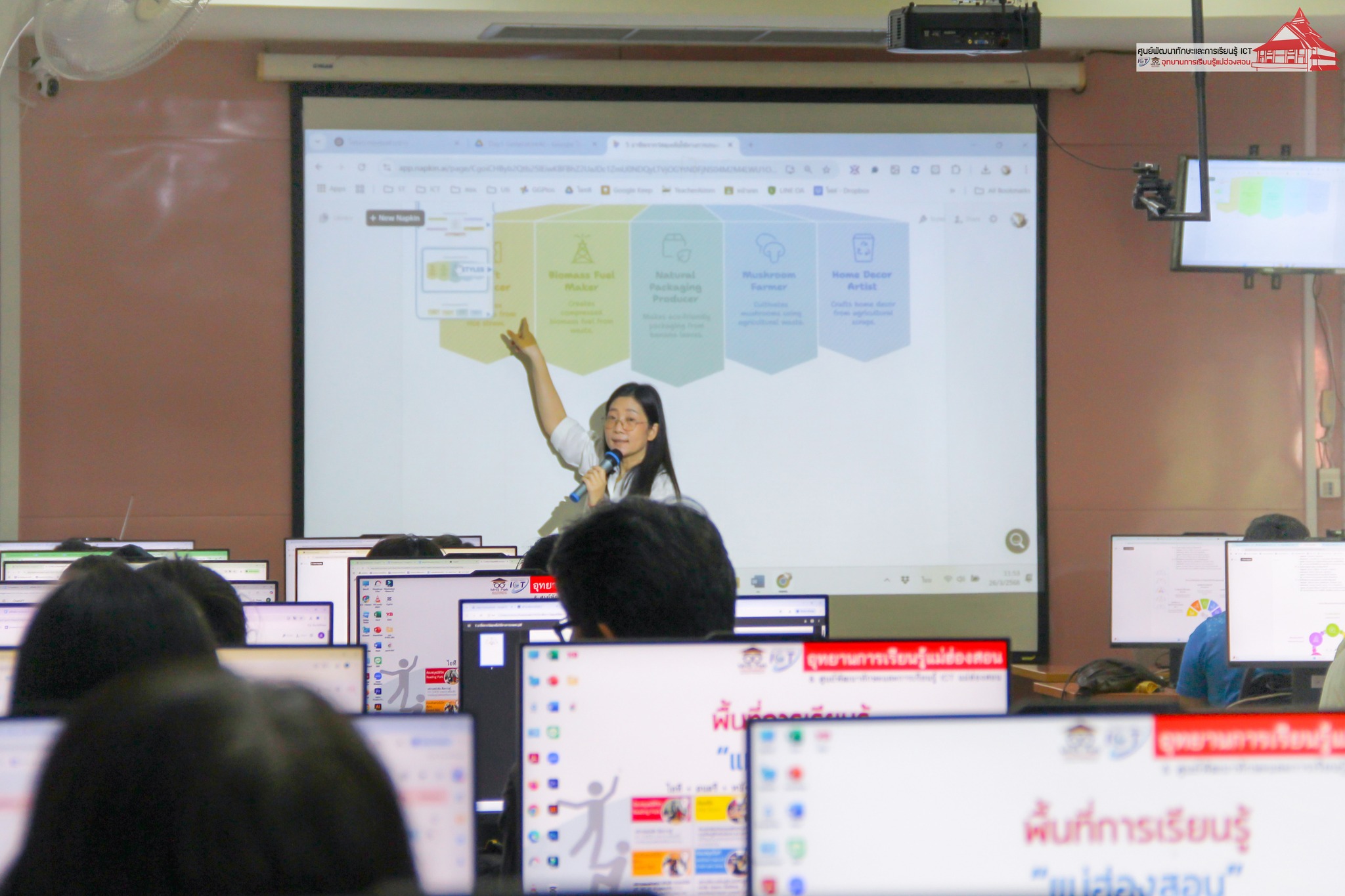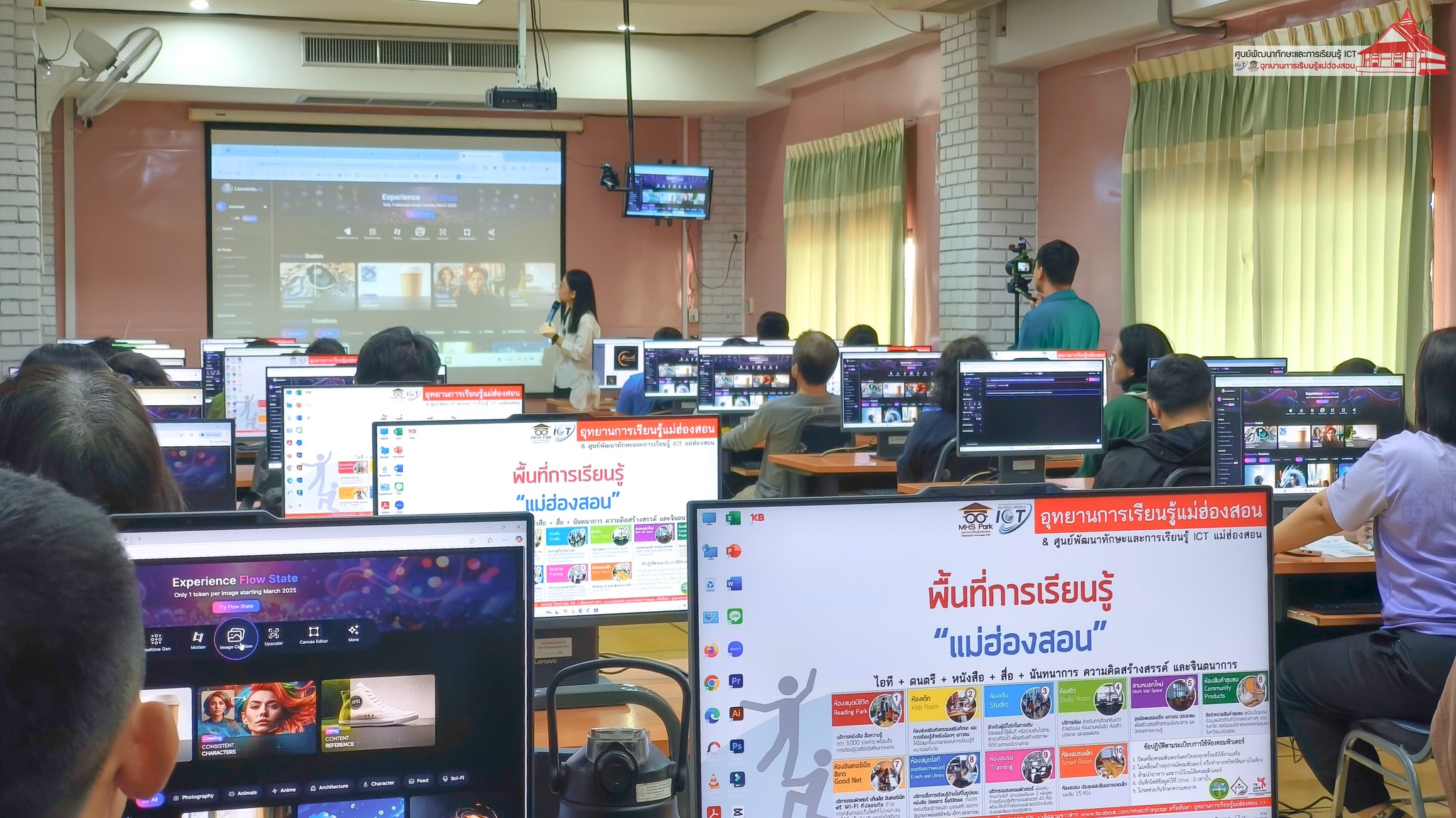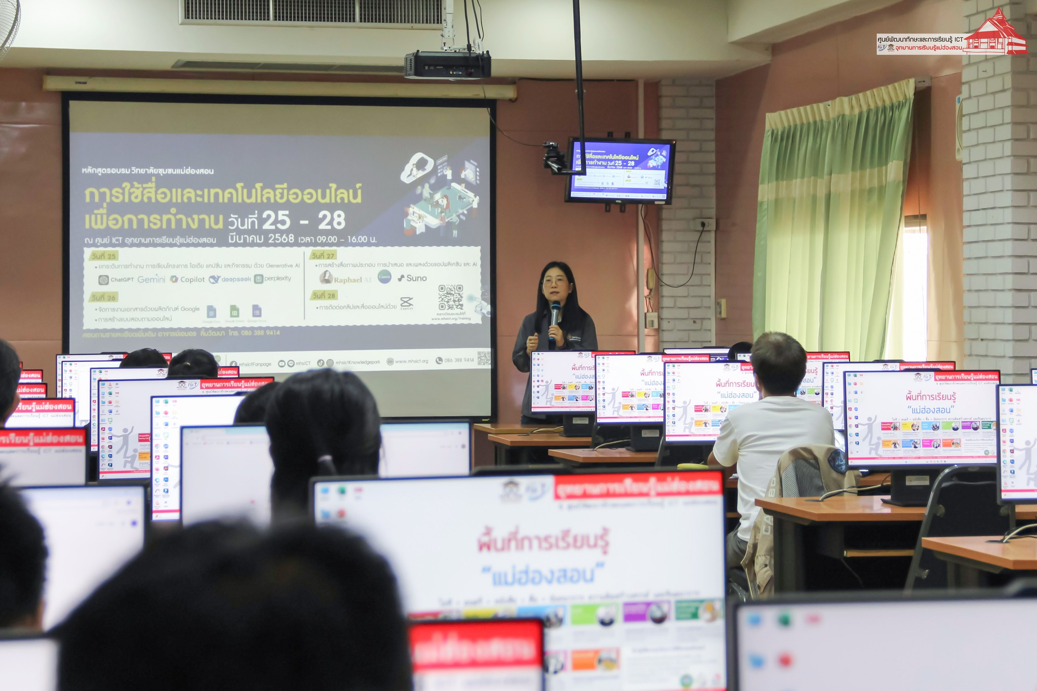 ศูนย์พัฒนาทักษะและการเรียนรู้ ICT อุทยานการเรียนรู้แม่ฮ่องสอน จัดอบรม “การใช้สื่อและเทคโนโลยีออนไลน์เพื่อการทำงาน” สำหรับบุคลากรภาครัฐและเอกชน ระหว่างวันที่ 25 – 28 มีนาคม 2568 เวลา 09.00 – 16.00 น. ณ ห้องอบรมคอมพิวเตอร์ อุทยานการเรียนรู้แม่ฮ่องสอน โดยมีวัตถุประสงค์เพื่อพัฒนาศักยภาพการทำงานของบุคลากรจากหน่วยงานภาครัฐ เอกชน และสถานประกอบการ ให้สามารถนำทักษะจากการฝึกปฏิบัติไปประยุกต์ใช้เพื่อเพิ่มประสิทธิภาพการทำงานภายในองค์กรได้อย่างมีประสิทธิผล ตลอดระยะเวลา 4 วันของการอบรม มีการถ่ายทอดความรู้และการฝึกปฏิบัติในหัวข้อที่เกี่ยวข้องกับเทคโนโลยีดิจิทัลและเครื่องมือออนไลน์ วิทยากรโดย อาจารย์เอมอร ลิ้มวัฒนา ครูชำนาญการ วิทยาลัยชุมชนแม่ฮ่องสอน และหัวหน้าศูนย์พัฒนาทักษะและการเรียนรู้ ICT และ นายอาเขต แซ่ภู่ ครูชำนาญการโรงเรียนบ้านห้วยผา