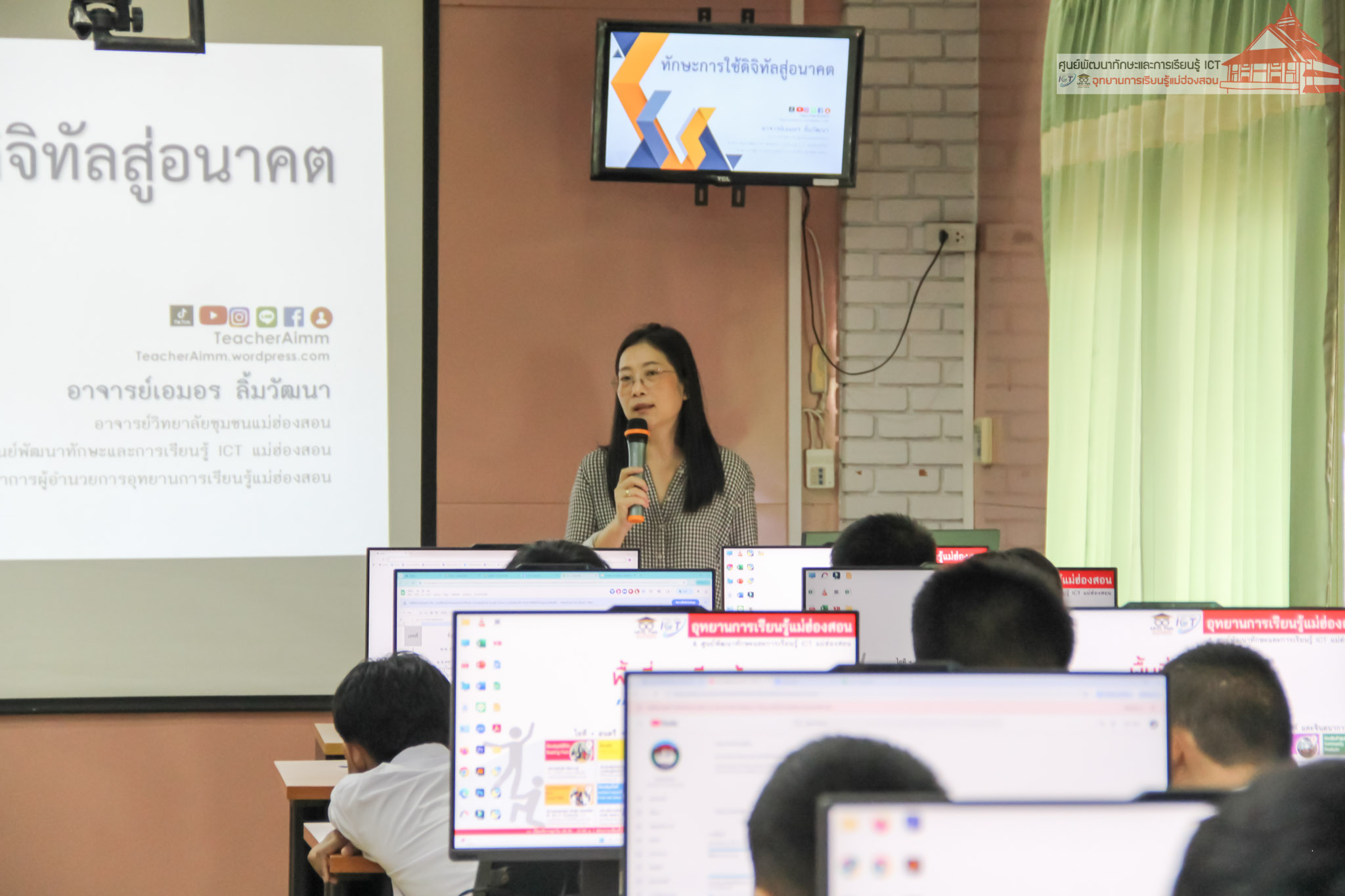 วิทยาลัยชุมชนแม่ฮ่องสอน ส่งเสริมการเรียนรู้เทคโนโลยีดิจิทัลอย่างสร้างสรรค์ ผ่านหลักสูตรอบรมดิจิทัลคอมเมิร์ซ วันที่ 27 - 30 พฤษภาคม 2568 ศูนย์พัฒนาทักษะและการเรียนรู้ ICT อุทยานการเรียนรู้แม่ฮ่องสอน วิทยาลัยชุมชนแม่ฮ่องสอน จัดอบรมหลักสูตร ดิจิทัลคอมเมิร์ซ ให้แก่เยาวชน ประชาชน บุคลากรภาครัฐ และเอกชน โดยมีวัตถุประสงค์เพื่อส่งเสริมการใช้เทคโนโลยีอย่างสร้างสรรค์และปลอดภัย การประยุกต์ใช้ AI เพื่อสร้างรายได้ พัฒนาทักษะด้านดิจิทัลที่จำเป็นต่อการประกอบอาชีพในยุคเศรษฐกิจดิจิทัล เสริมสร้างความรู้ในการใช้แพลตฟอร์มออนไลน์เพื่อสร้างตัวตนและขยายโอกาสทางธุรกิจ และสร้างแรงบันดาลใจให้ผู้เข้าอบรมสามารถนำความรู้ไปต่อยอดได้จริงในชีวิตประจำวัน มีเข้าร่วมอบรม 35 คน ณ ห้องอบรมคอมพิวเตอร์ ศูนย์ ICT อุทยาน