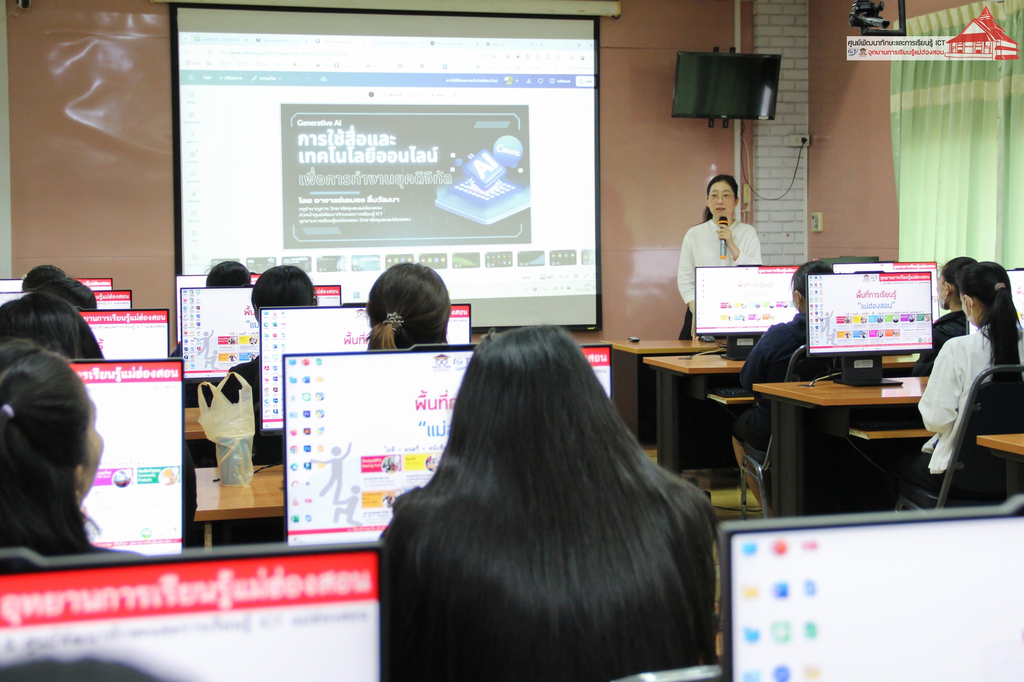 วันที่ 27 มิถุนายน 2568 ศูนย์พัฒนาทักษะและการเรียนรู้ ICT แม่ฮ่องสอน อุทยานการเรียนรู้แม่ฮ่องสอน วิทยาลัยชุมชนแม่ฮ่องสอน จัดกิจกรรมประชุมเชิงปฏิบัติการพัฒนายกระดับศักยภาพบุคลากรด้านดิจิทัลและสร้างเครือข่ายความร่วมมือระดับพื้นที่ ประจำปีงบประมาณ 2568 ในหัวข้อ “การใช้สื่อเทคโนโลยีออนไลน์ เพื่อการทำงานยุคดิจิทัล” ให้แก่ บุคลากรองค์การบริหารส่วนตำบลปางหมู ครูผู้ดูแลเด็ก ศูนย์พัฒนาเด็กเล็ก 6 แห่ง ภายใต้สังกัด อบต.ปางหมู โดยมุ่งเน้นการสร้างเครือข่ายความร่วมมือระดับชุมชน และการแลกเปลี่ยน เรียนรู้ร่วมกัน ตลอดจนการเสริมทักษะด้านการสื่อสารดิจิทัล การประยุกต์ใช้เทคโนโลยีเพื่อยกระดับการพัฒนาชุมชนและพื้นที่บริการ ผู้เข้าร่วมอบรม 25 คน ณ ห้องอบรมคอมพิวเตอร์ ศูนย์ ICT อุทยานการเรียนรู้แม่ฮ่องสอน วิทยากรโดย อาจารย์เอมอร ลิ้มวัฒนา ครูชำนาญการ วิทยาลัยชุมชนแม่ฮ่องสอน หัวหน้าศูนย์พัฒนาทักษะและการเรียนรู้ ICT อุทยานการเรียนรู้แม่ฮ่องสอน