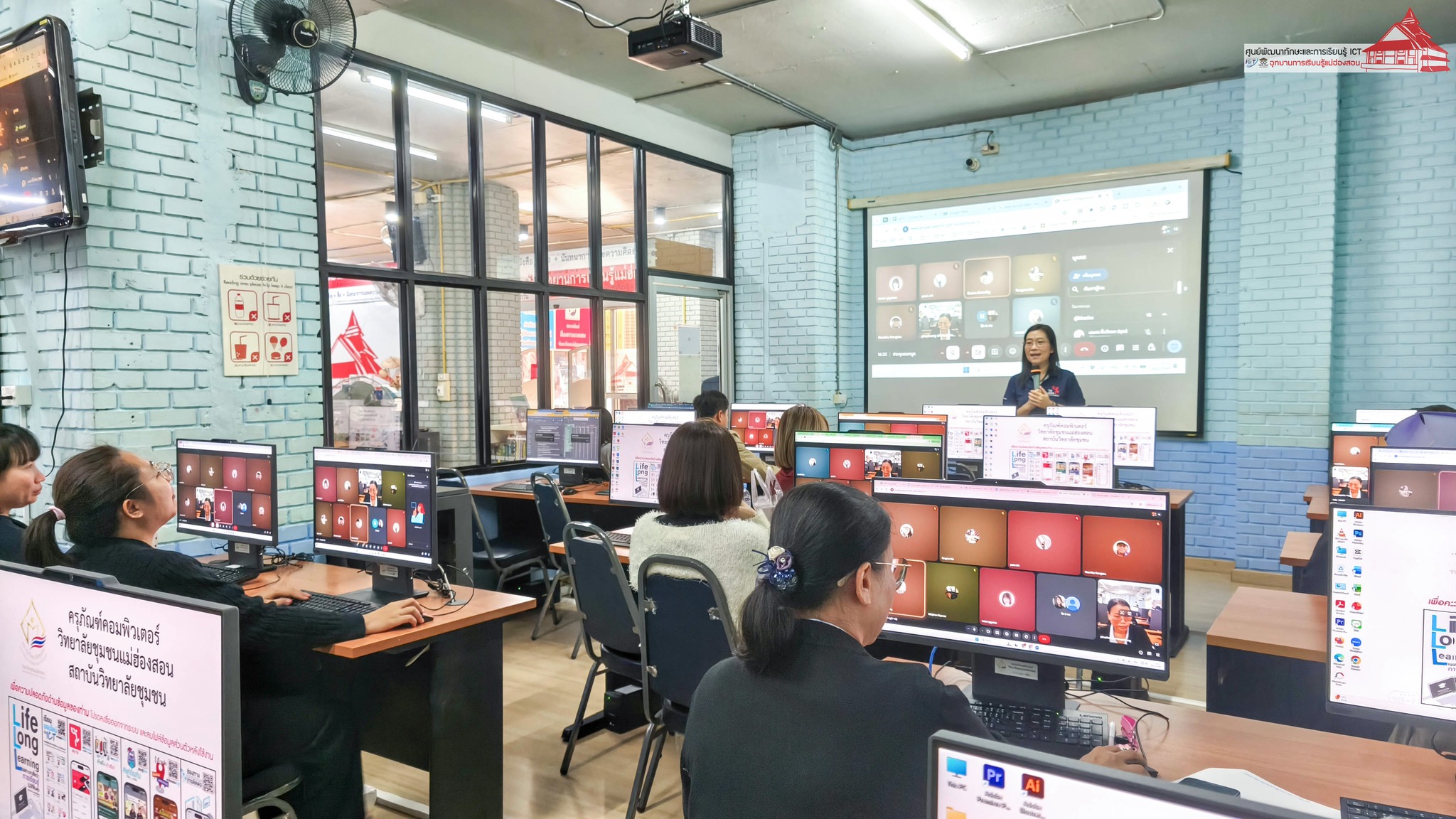 ศูนย์พัฒนาทักษะและการเรียนรู้ ICT อุทยานการเรียนรู้แม่ฮ่องสอน วิทยาลัยชุมชนแม่ฮ่องสอน จัดอบรมหลักสูตร “การใช้สื่อและเทคโนโลยีออนไลน์เพื่อการทำงาน” ระหว่างวันที่ 20 - 23 มกราคม 2569 เวลา 08.30 - 17.00 น. ณ ห้องอบรมคอมพิวเตอร์ ผู้เข้าร่วมอบรม 25 ราย จากหน่วยงานภาครัฐ เอกชน และชุมชนจังหวัดแม่ฮ่องสอน กล่าวเปิดการอบรมโดย อาจารย์เอมอร ลิ้มวัฒนา ครูชำนาญการ วิทยาลัยชุมชนแม่ฮ่องสอน หัวหน้าศูนย์พัฒนาทักษะและการเรียนรู้ ICT อุทยานการเรียนรู้แม่ฮ่องสอน วิทยากร โดย อาจารย์จีรัง คำนวณตา อาจารย์ประจำมหาวิทยาลัยราชภัฎเชียงใหม่ วิทยาเขตแม่ฮ่องสอน, นายปดิธร แสงคุณ, นายสมบัติ และอาจารย์เอมอร ลิ้มวัฒนา ครูชำนาญการ วิทยาลัยชุมชนแม่ฮ่องสอน หัวหน้าศูนย์ ICT อุทยานการเรียนรู้แม่ฮ่องสอน การอบรมมุ่งเน้นการฝึกปฏิบัติทักษะการใช้โปรแกรมคอมพิวเตอร์และ Application สำหรับการทำงานออนไลน์ การใช้ทรัพยากรออนไลน์ร่วมกัน การสร้างแบบสำรวจและแบบสอบถามออนไลน์ การจัดทำกราฟิค สื่อ การประชาสัมพันธ์ การถ่ายทำและตัดต่อคลิปวิดีโอ การจัดทำเว็บไซต์ องค์กร