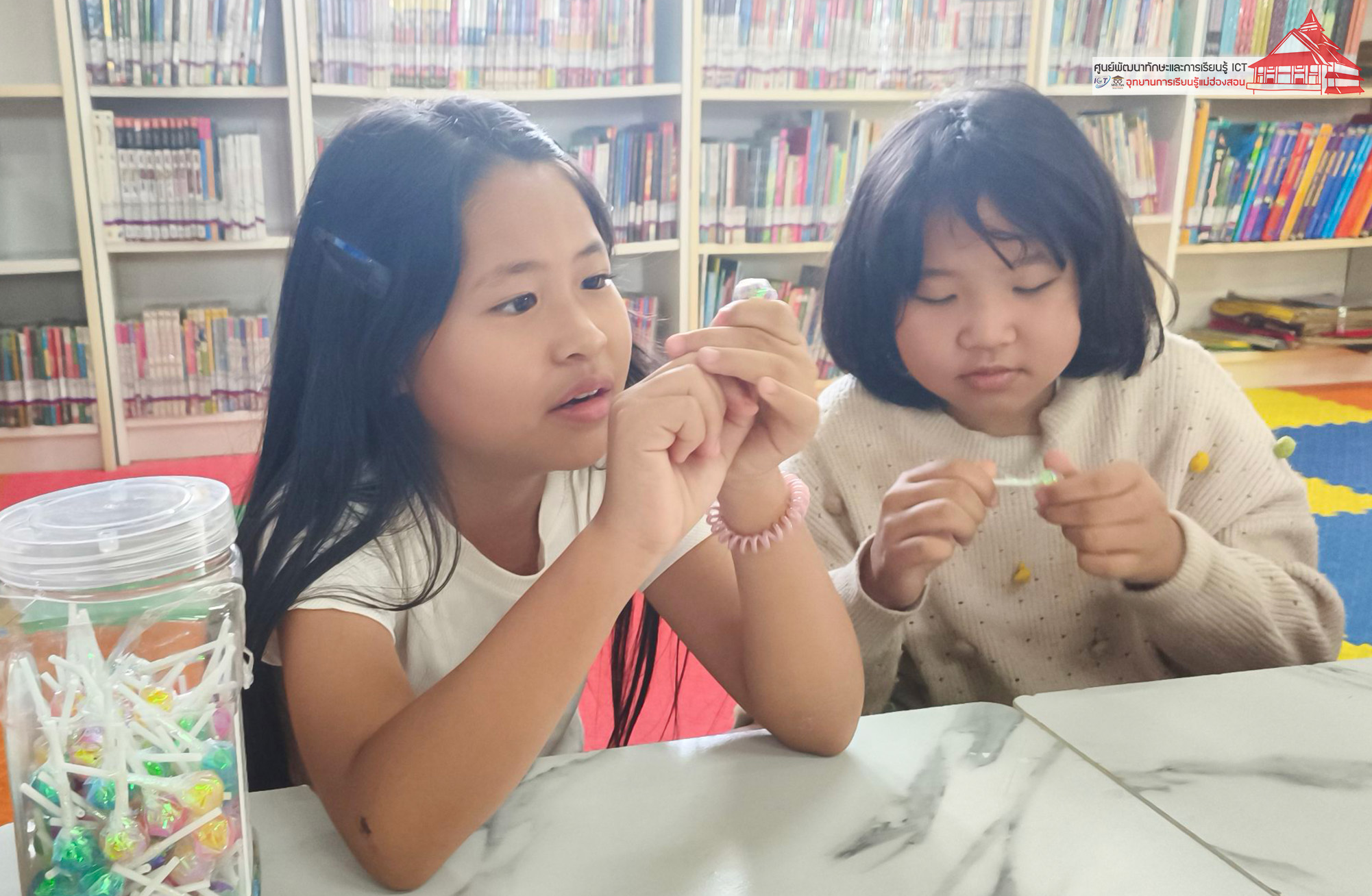 เมื่อวันเสาร์ที่ 14 มีนาคม 2569 ณ ห้อง Study Room ศูนย์ ICT อุทยานการเรียนรู้แม่ฮ่องสอน น้องๆเพลิดเพลินกับเรื่องราวของลูกหมีที่ต้องเอาตัวรอดในเมืองจากหนังสือ "ลูกหมีเรียนรู้" ต่อท้ายด้วยเกม ทายรสชาติจากอมยิ้ม น้องบอยทายว่ารสองุ่น และน้องนะโมทายว่ารสแตงโม แต่พอเฉลยออกมาว่าเป็น รสสตอเบอรี่ ทำเอาเพื่อน ๆ หัวเราะกันลั่นห้อง ขอบคุณทุกเสียงหัวเราะที่มาเติมเต็มวันหยุดนะคะ แล้วมาพบกันใหม่เสาร์หน้าค่ะ