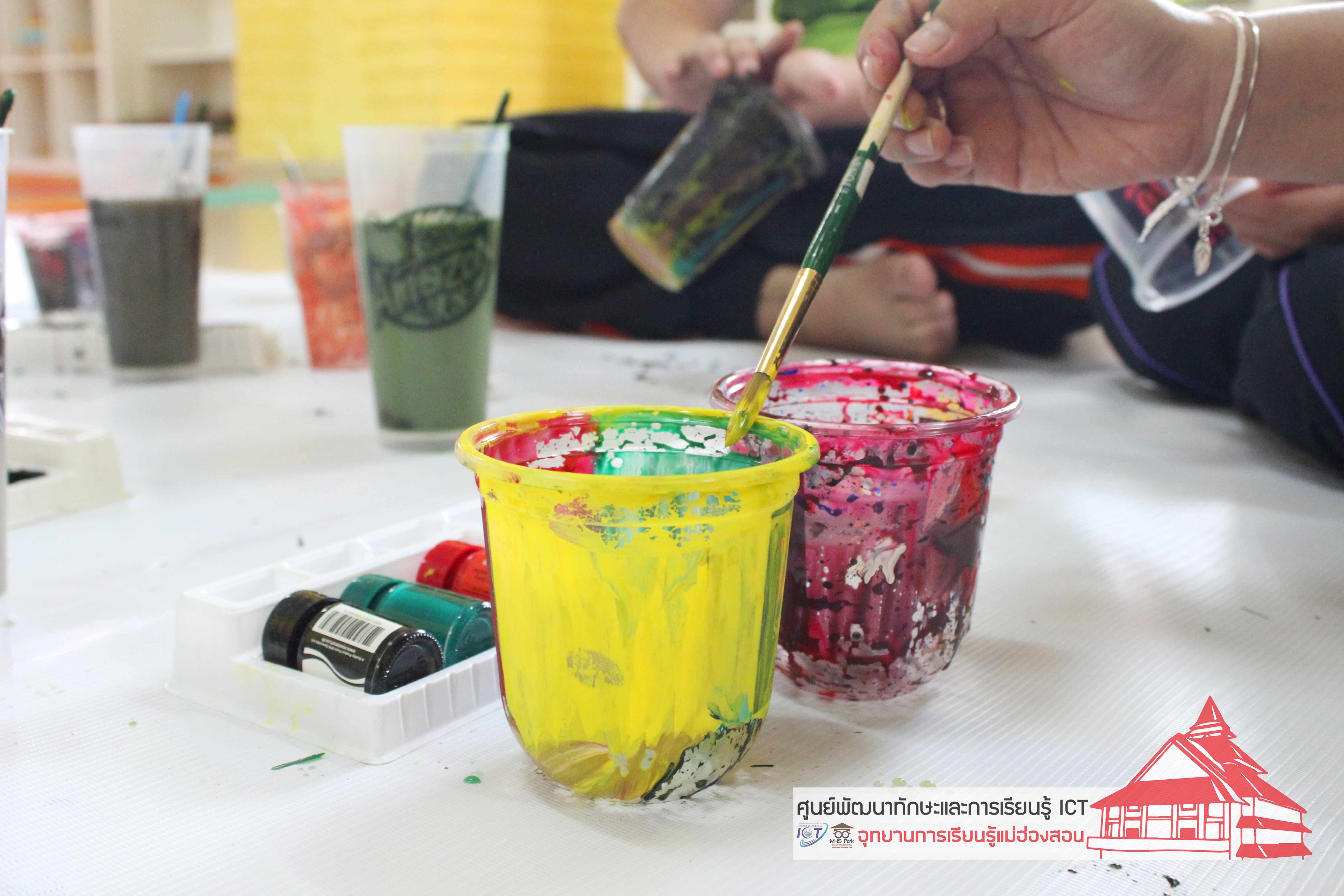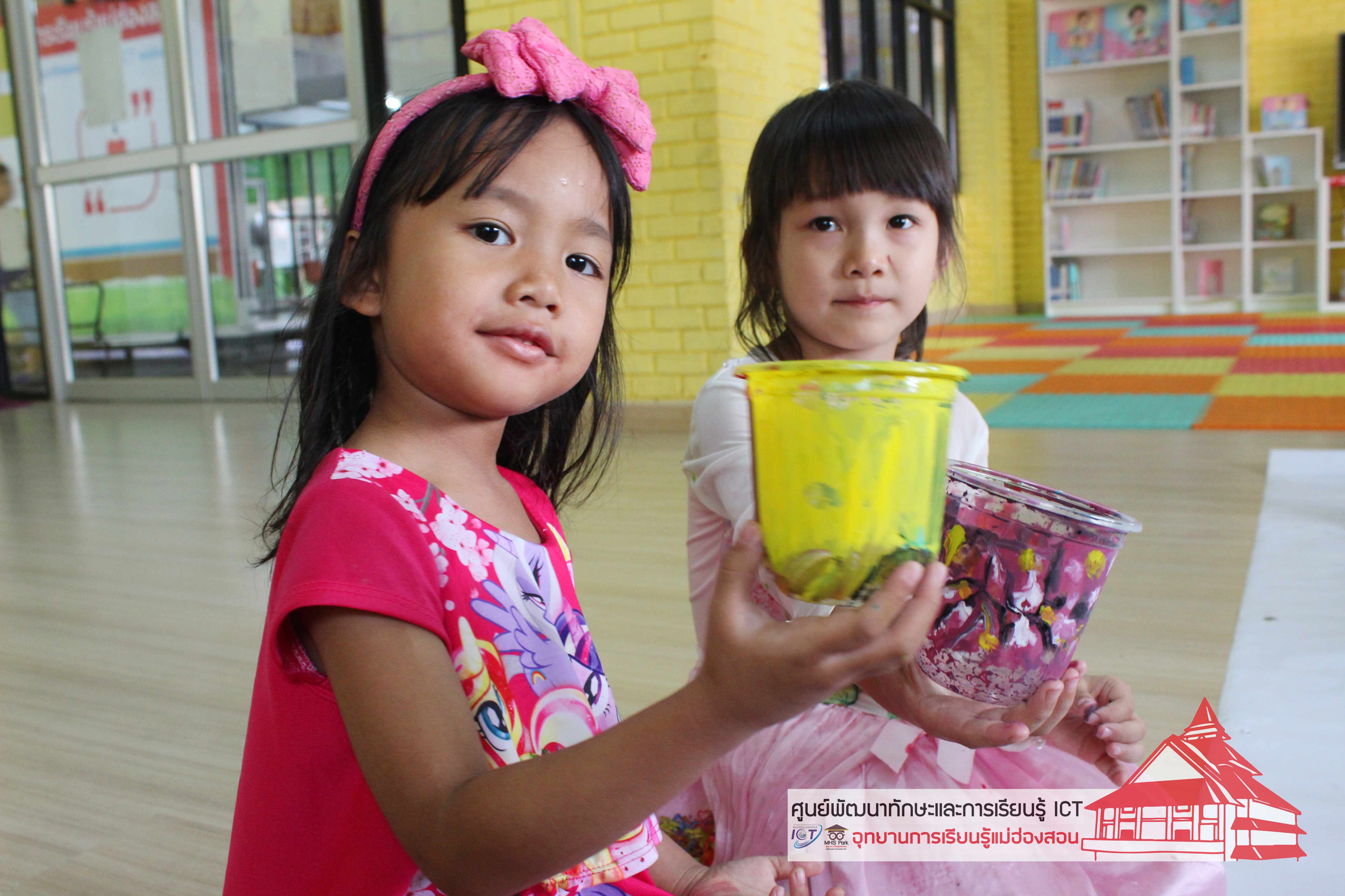 นำวัสดุเหลือใช้ มาทำให้เป็นประโยชน์ โดยการมาทำกระถางดอกไม้ ศูนย์พัฒนาทักษะและการเรียน