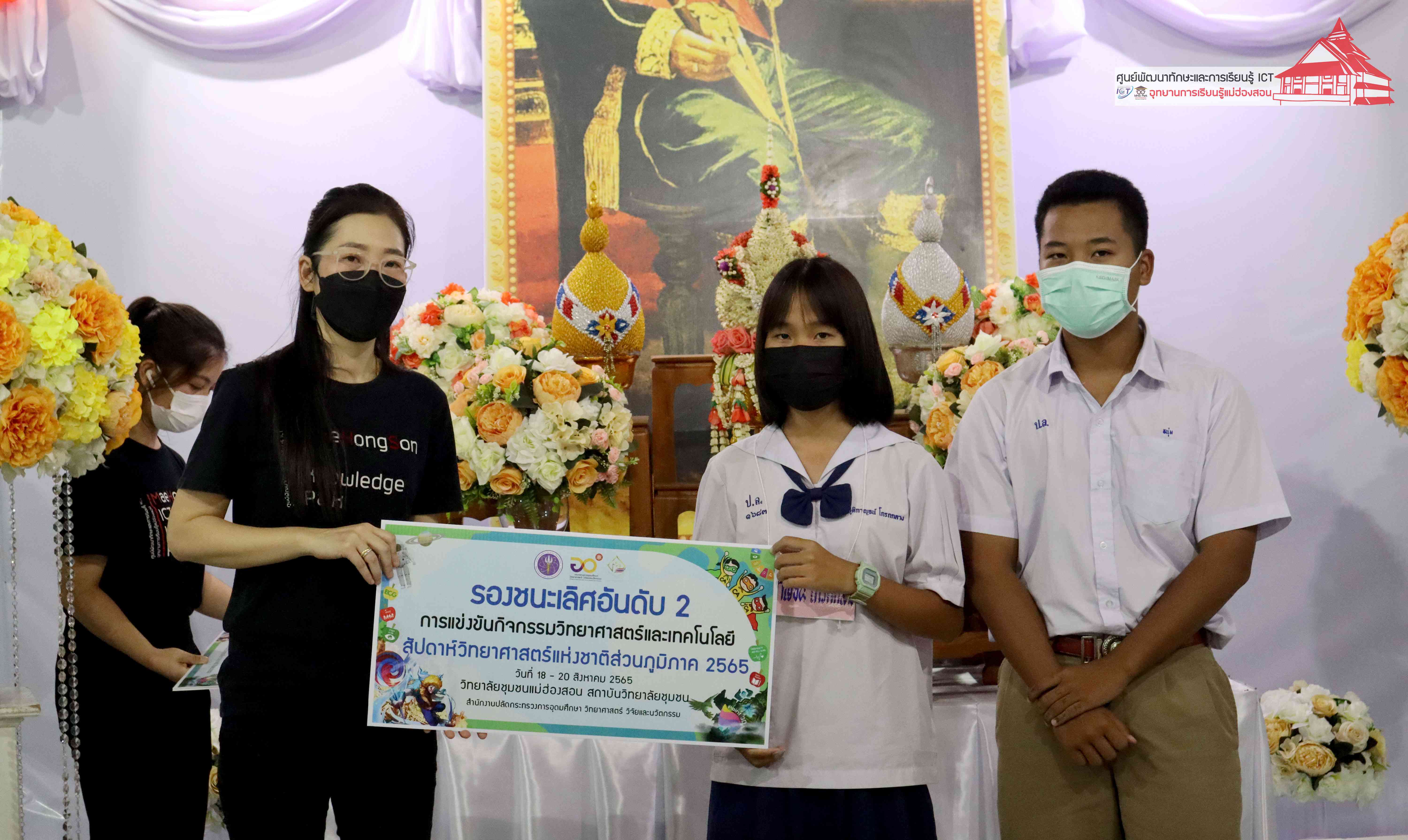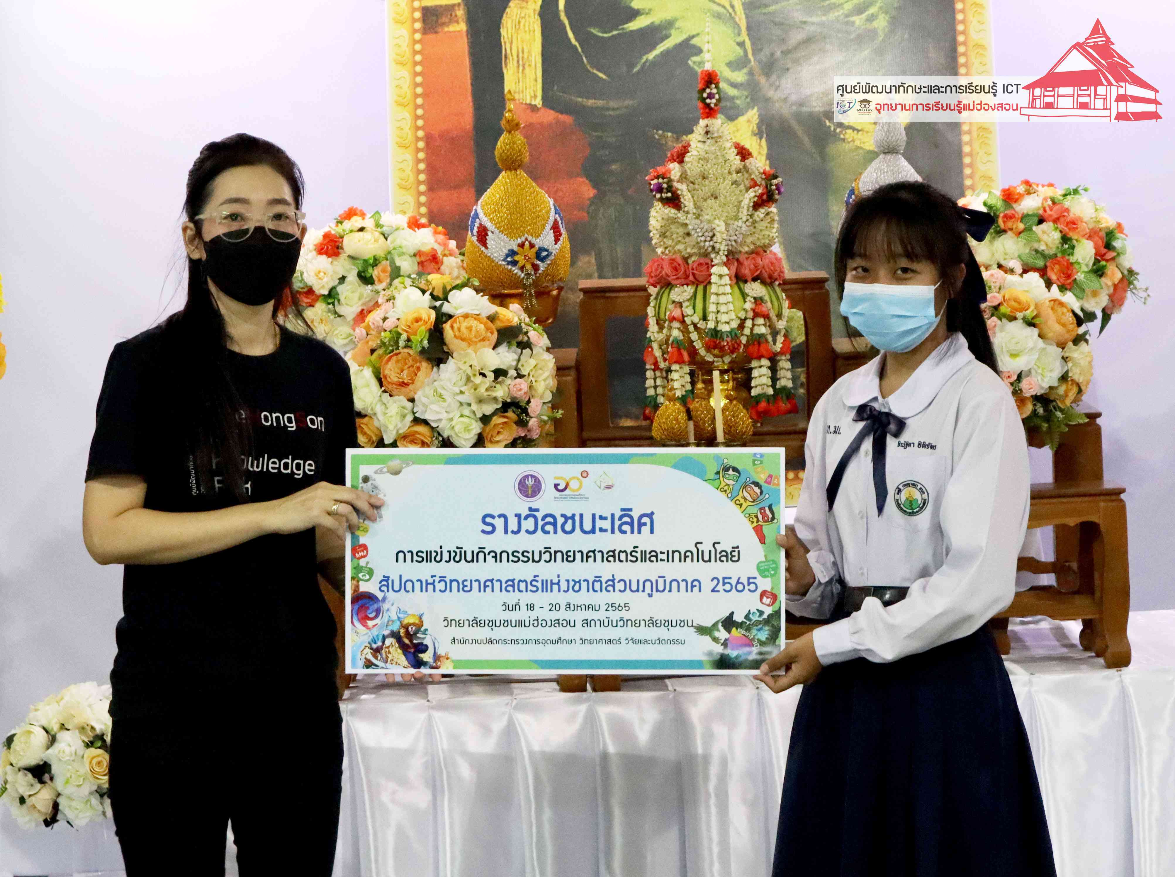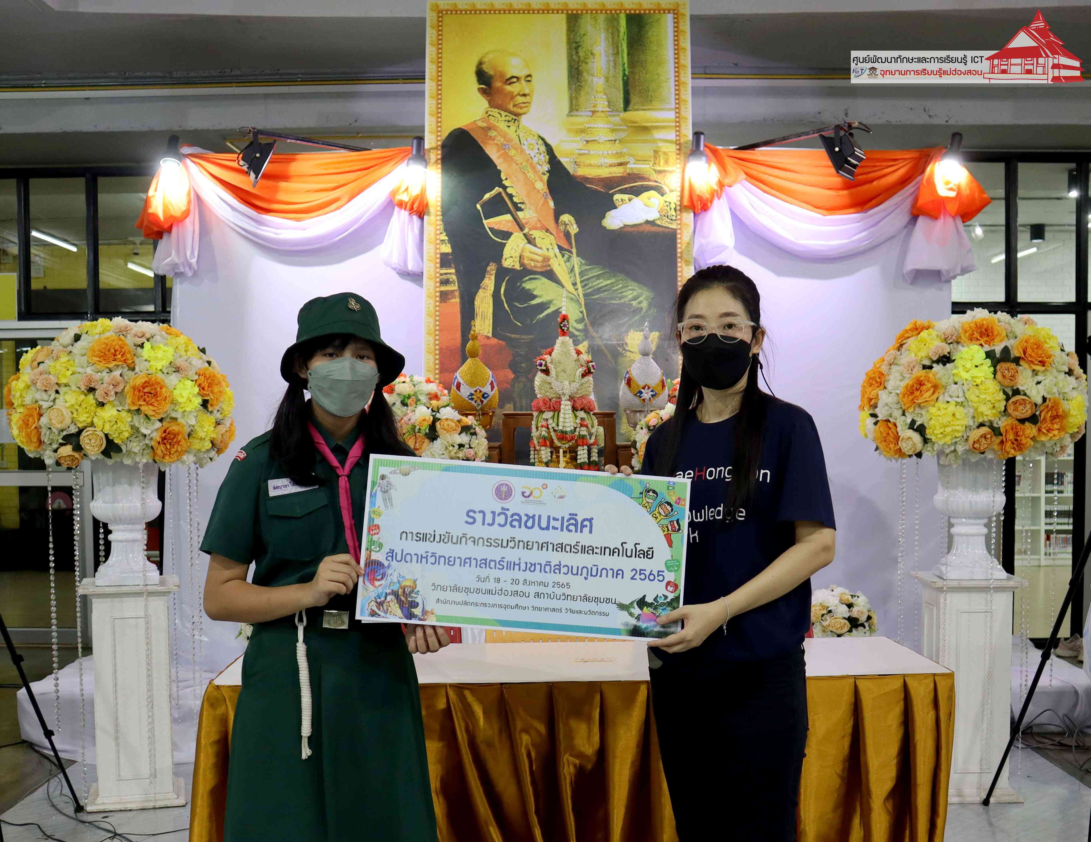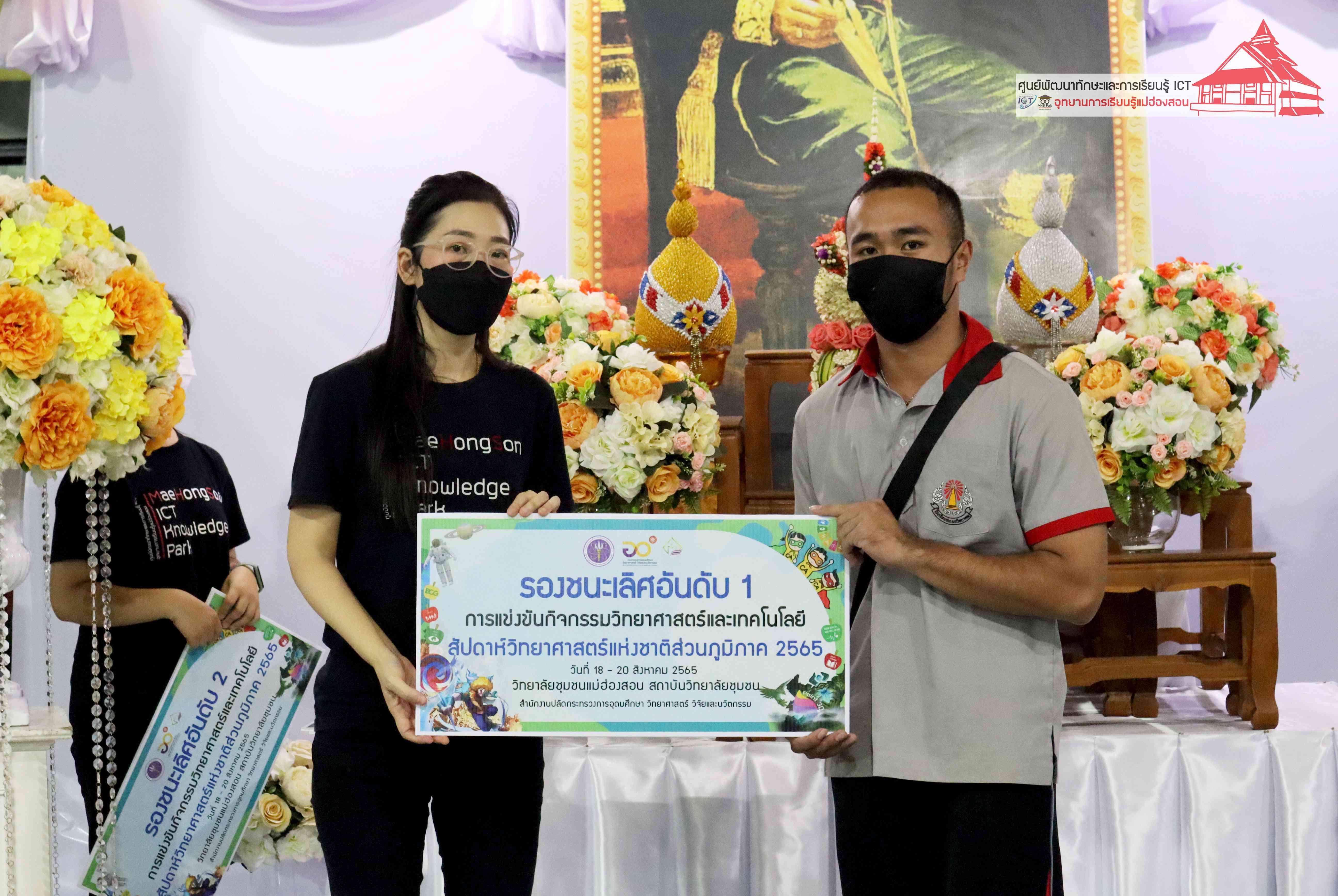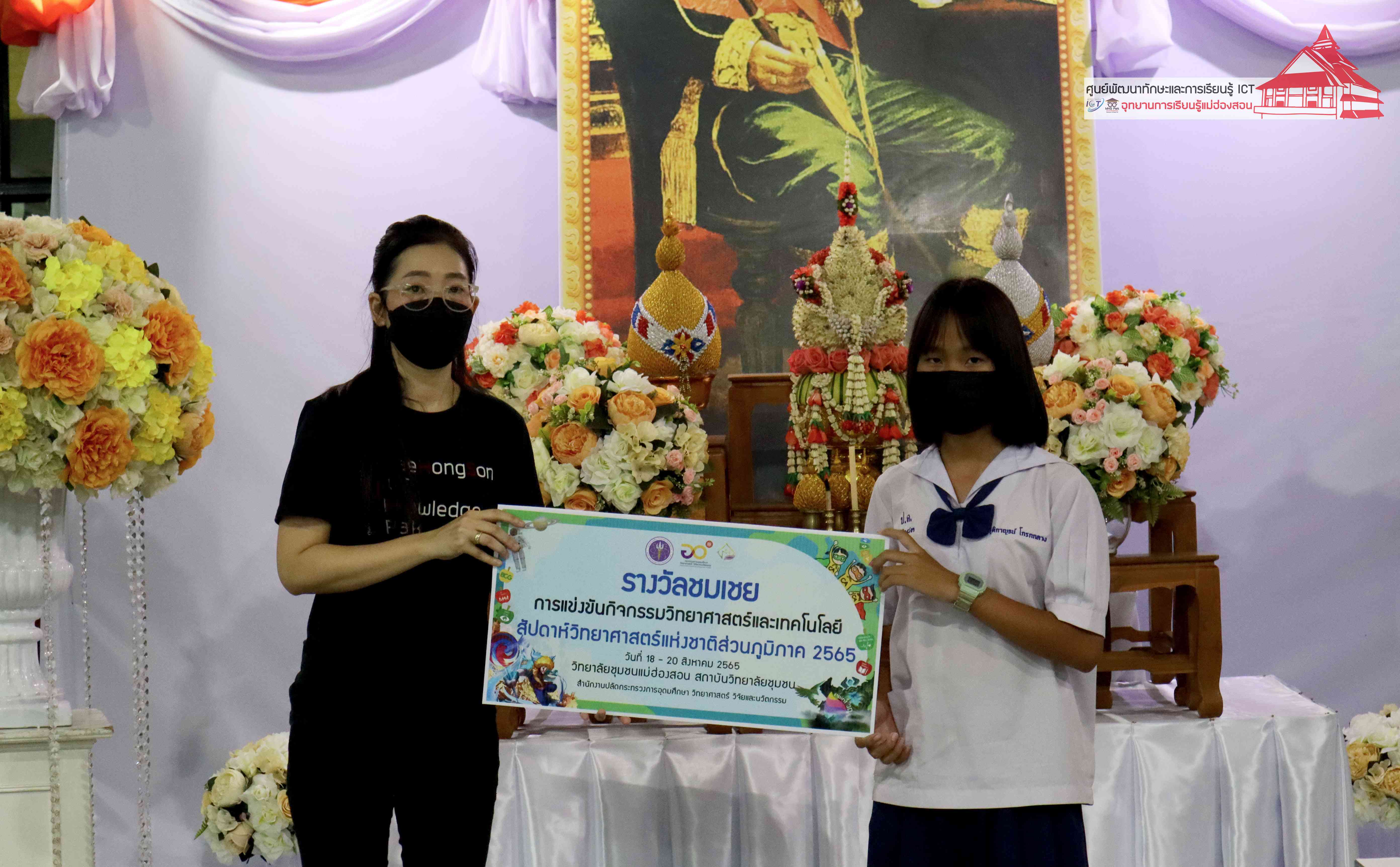 พิธีมอบรางวัลกิจกรรมสัปดาห์วิทยาศาสตร์แห่งชาติส่วนภูมิภาค วิทยาลัยชุมชนแม่ฮ่องสอน ประจำปี 2565 โดยอาจารย์เอมอร ลิ้มวัฒนา หัวหน้าศูนย์พัฒนาทักษะและการเรียนรู้ ICT แม่ฮ่องสอน อุทยานการเรียนรู้แม่ฮ่องสอน และคุณณิชกานต์ ธรมธัช เจ้าหน้าที่งานเยาวชนและนวัตกรรมเพื่อสังคม โครงการพัฒนาแห่งสหประชาชาติประจำประเทศไทย (UNDP Thailand)
