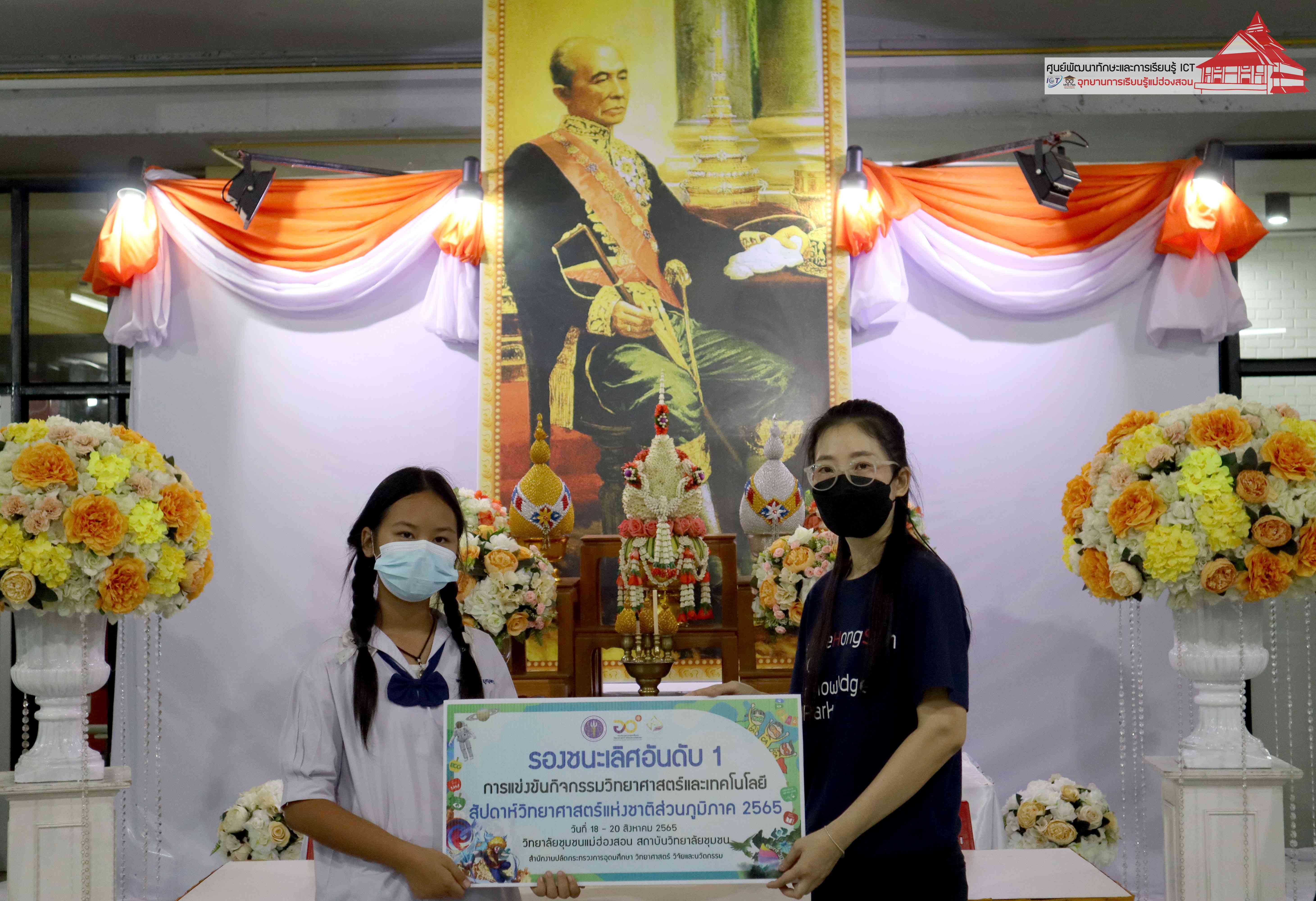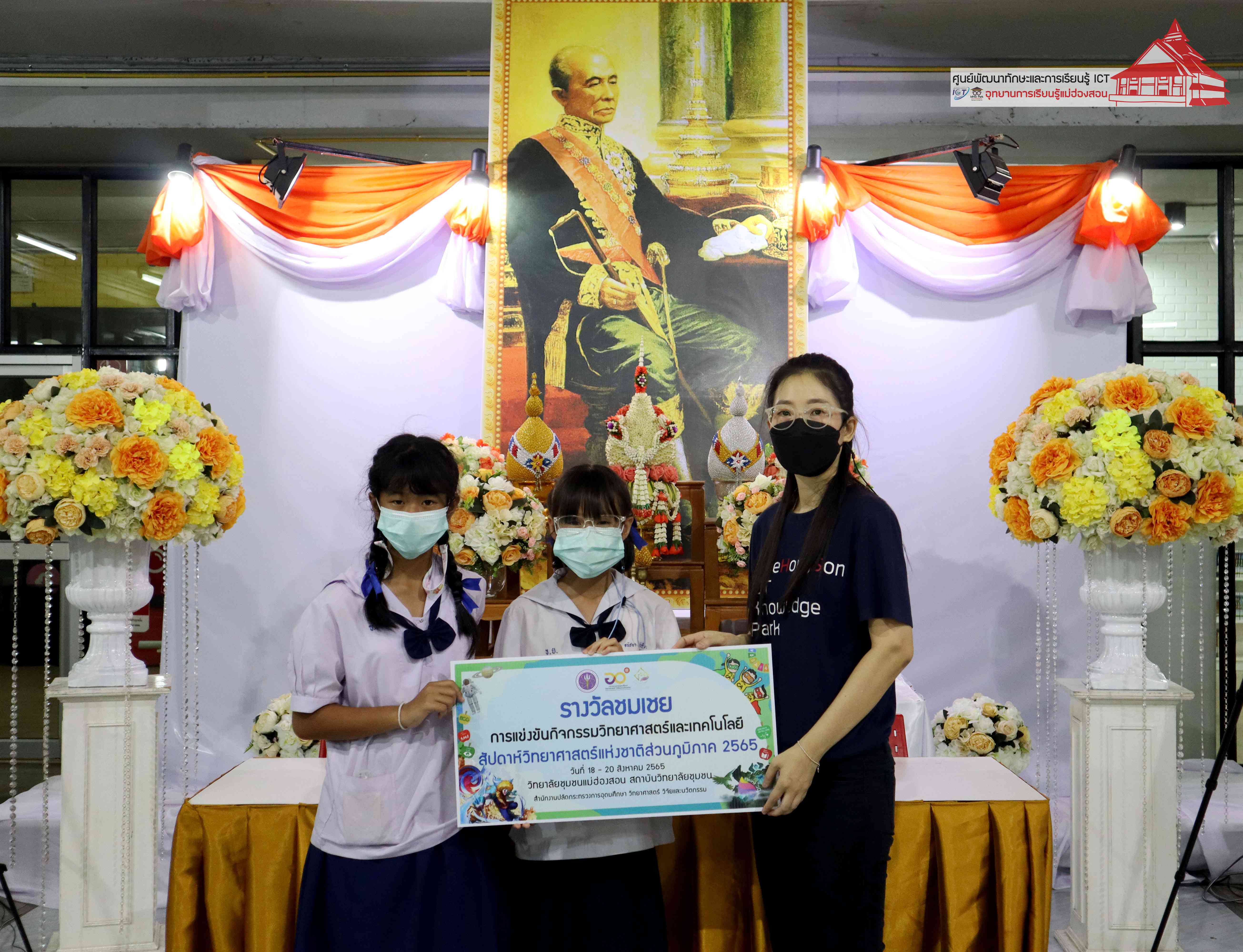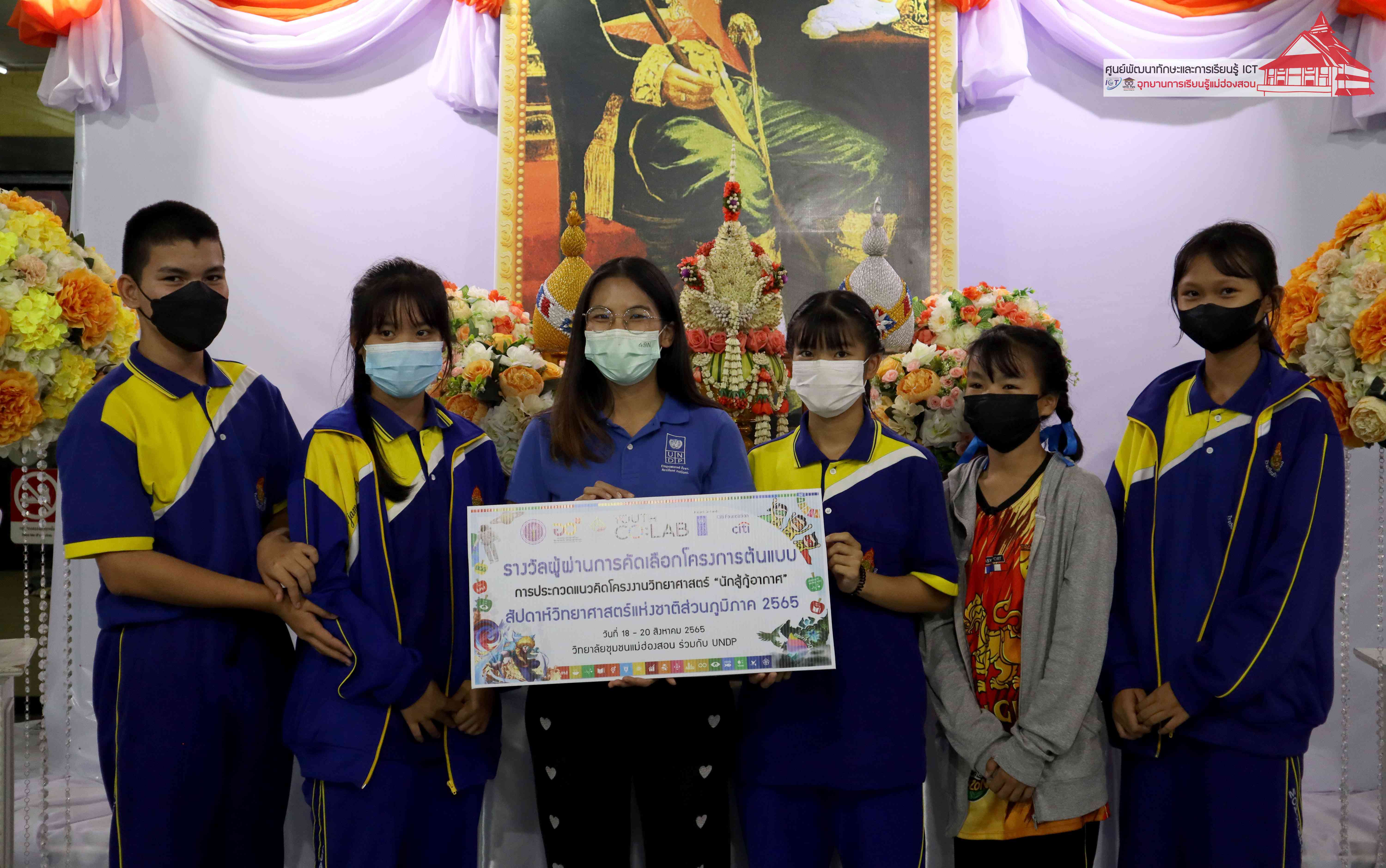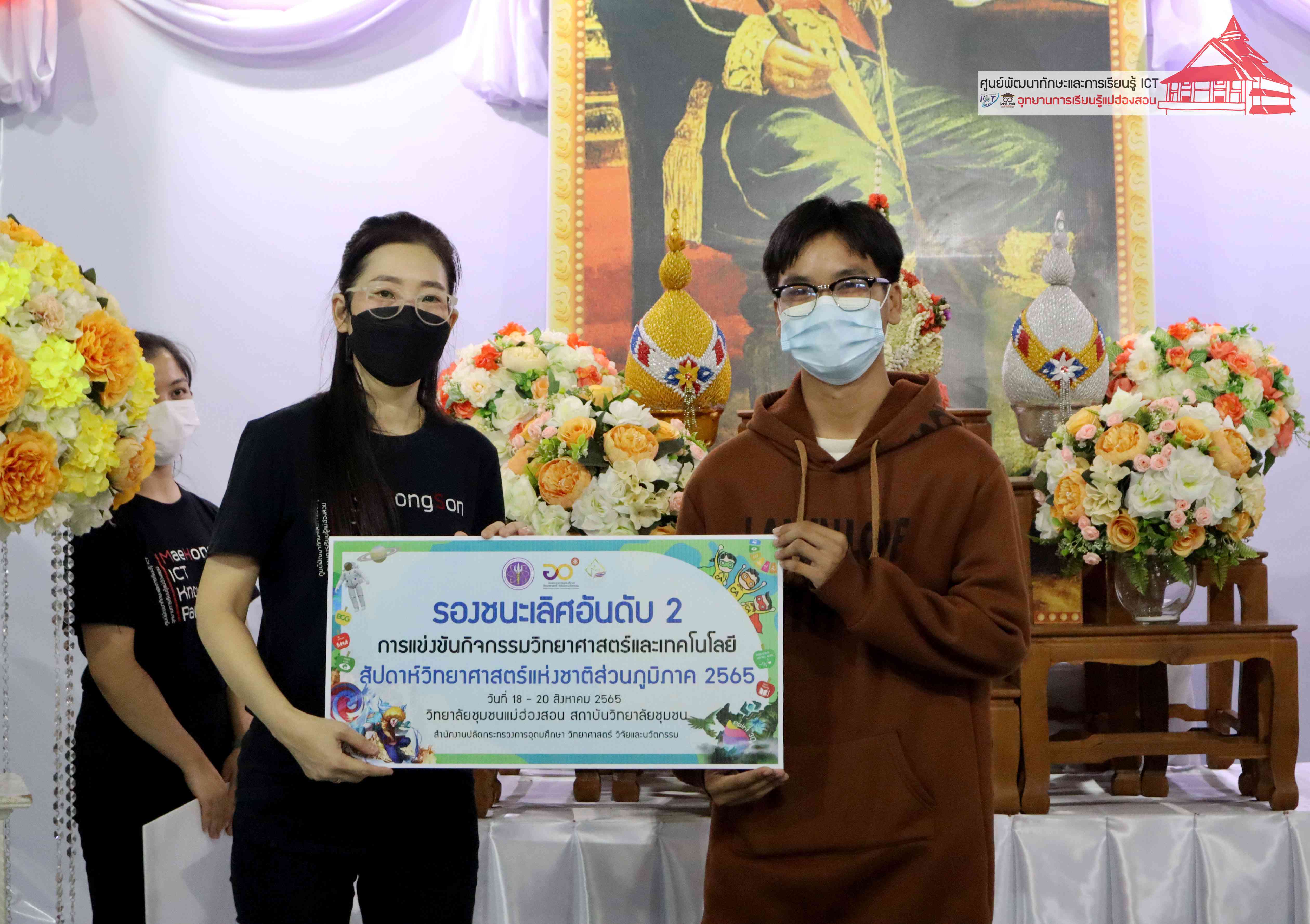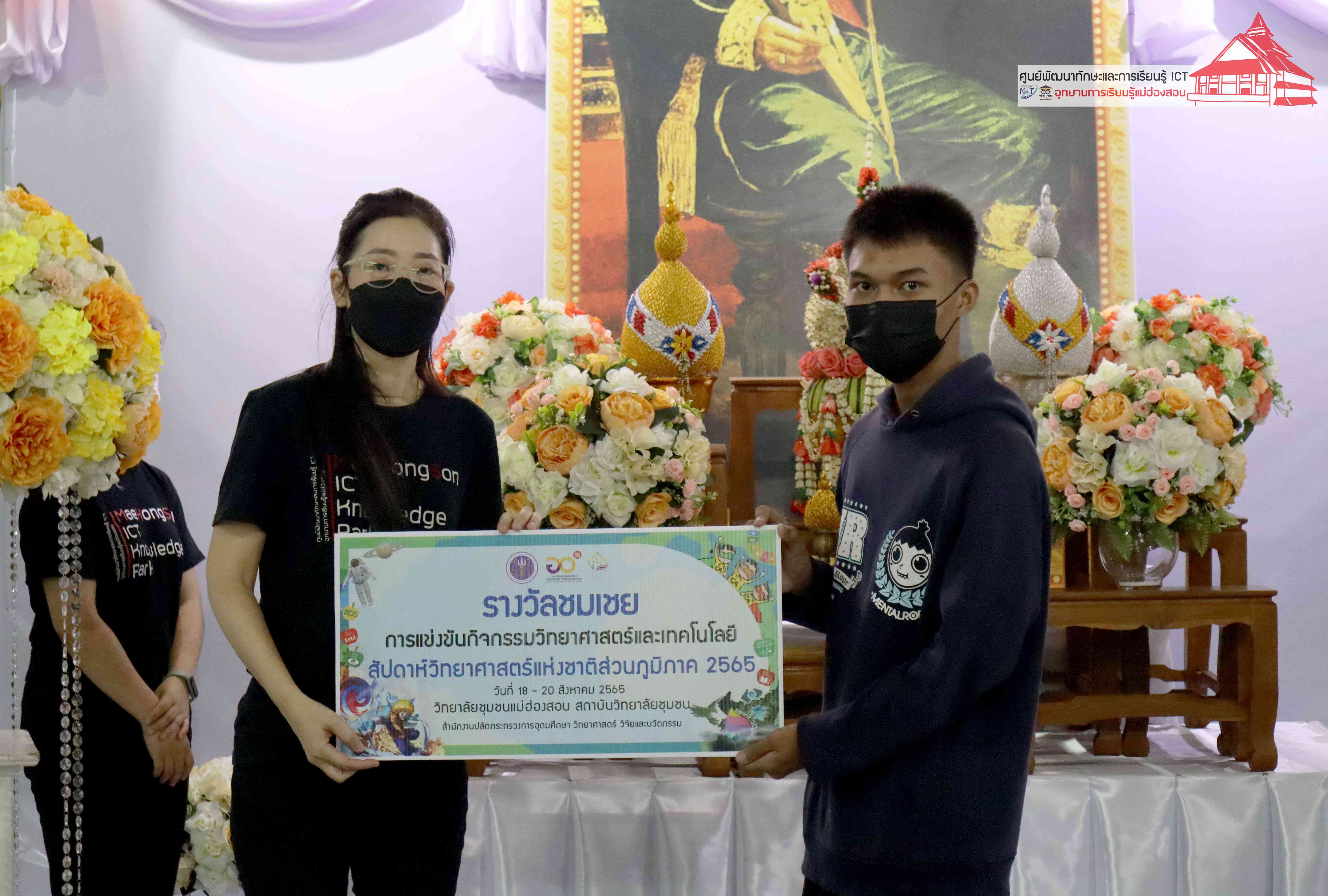 พิธีมอบรางวัลกิจกรรมสัปดาห์วิทยาศาสตร์แห่งชาติส่วนภูมิภาค วิทยาลัยชุมชนแม่ฮ่องสอน ประจำปี 2565 โดยอาจารย์เอมอร ลิ้มวัฒนา หัวหน้าศูนย์พัฒนาทักษะและการเรียนรู้ ICT แม่ฮ่องสอน อุทยานการเรียนรู้แม่ฮ่องสอน และคุณณิชกานต์ ธรมธัช เจ้าหน้าที่งานเยาวชนและนวัตกรรมเพื่อสังคม โครงการพัฒนาแห่งสหประชาชาติประจำประเทศไทย (UNDP Thailand)
