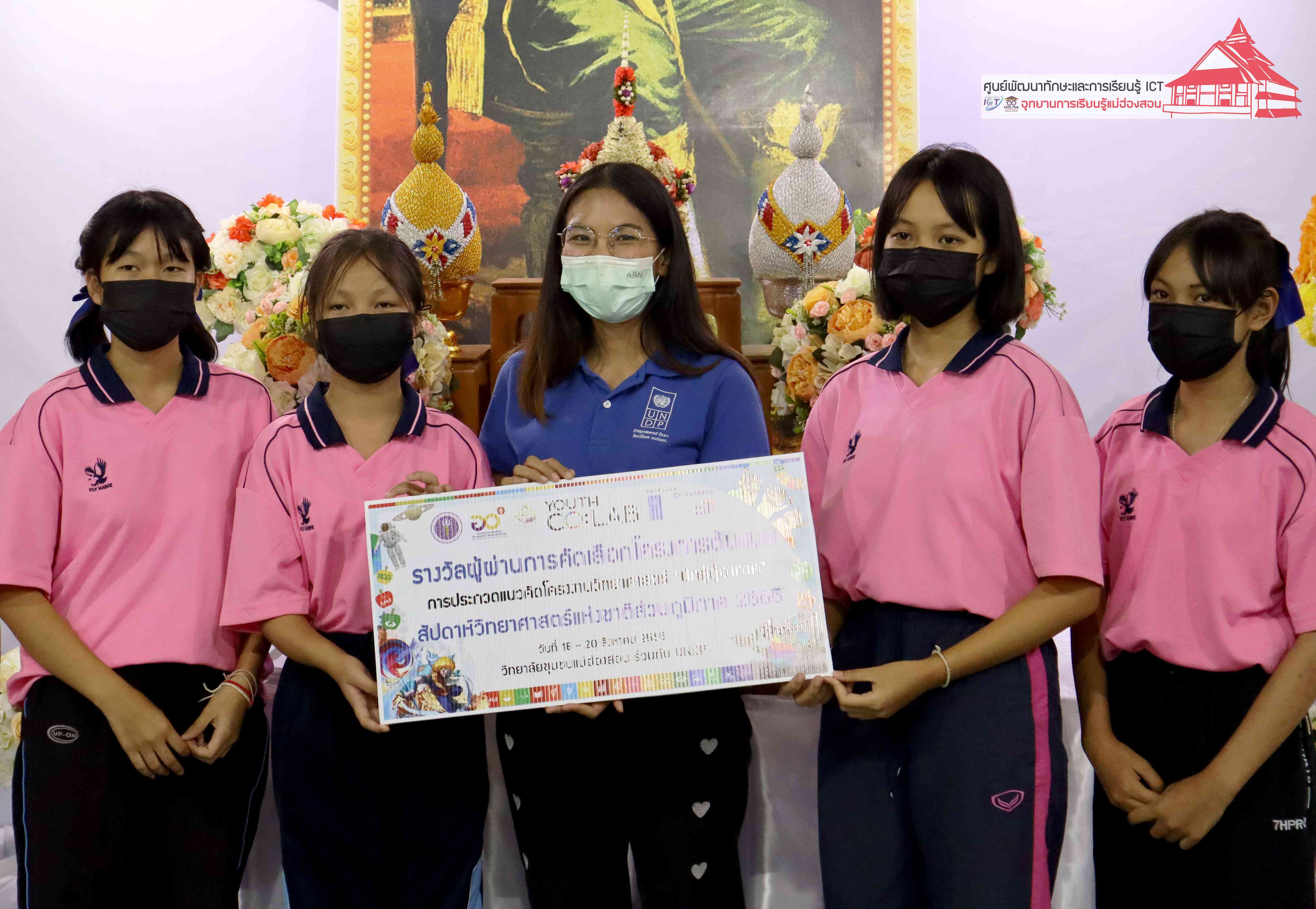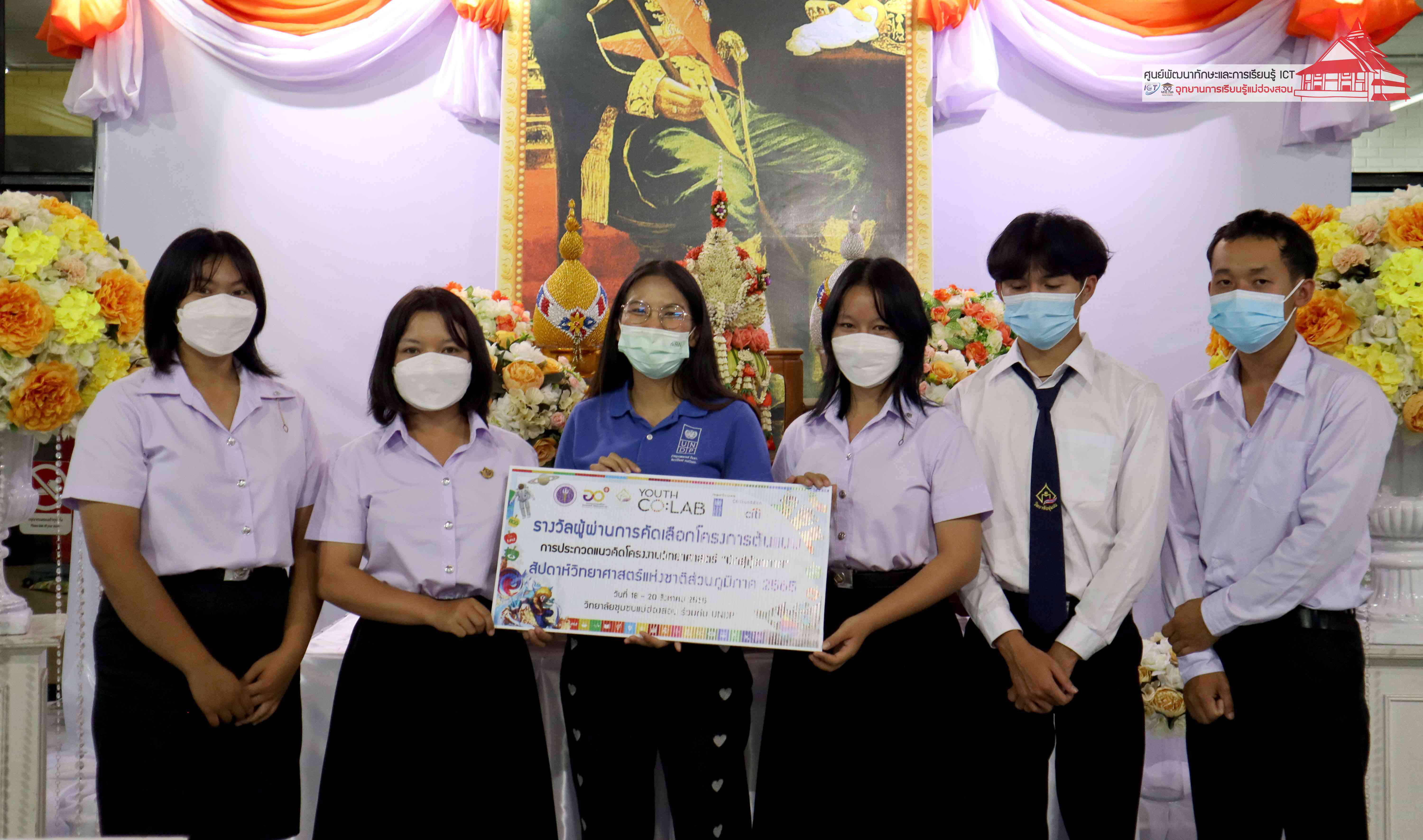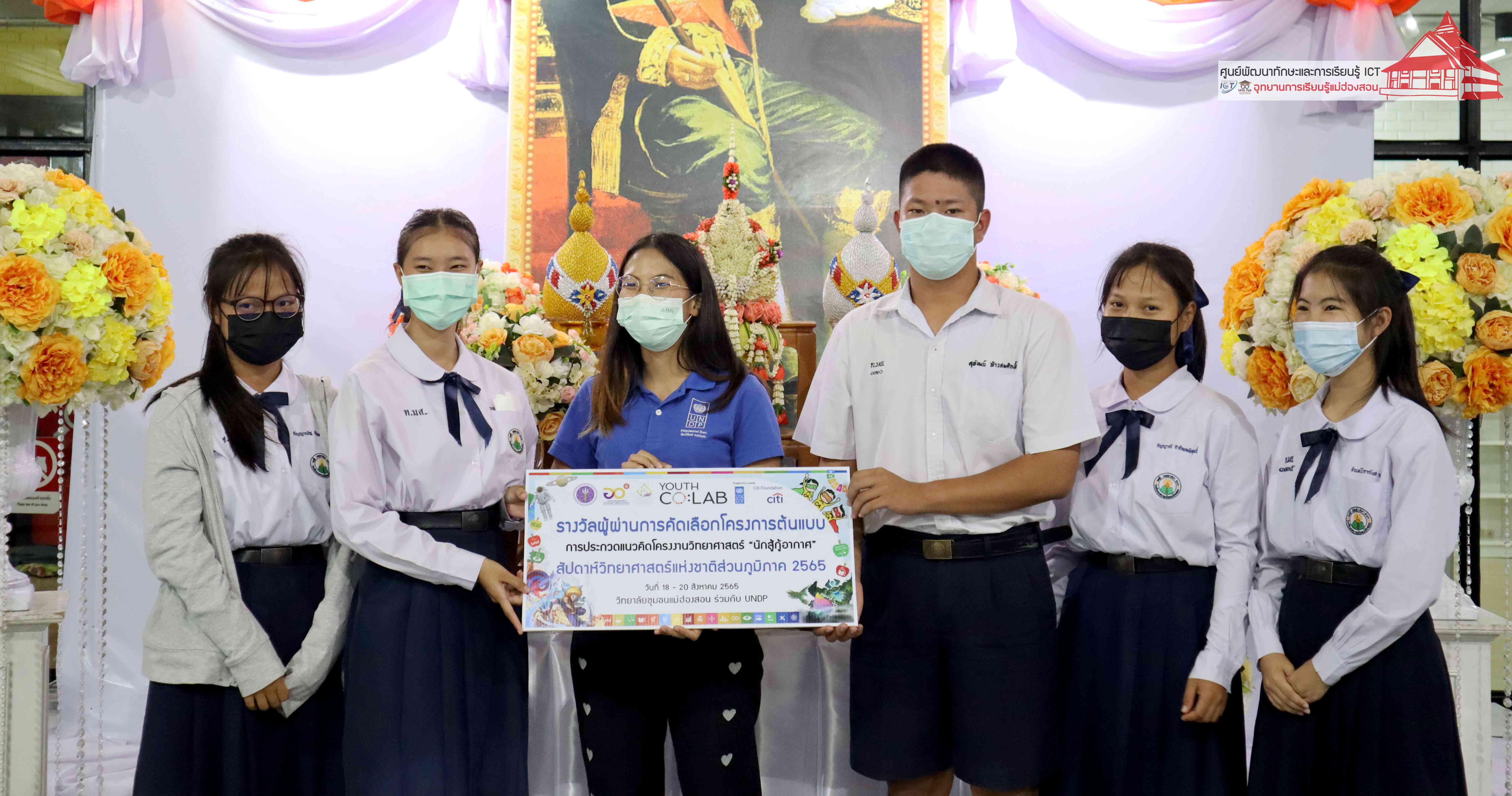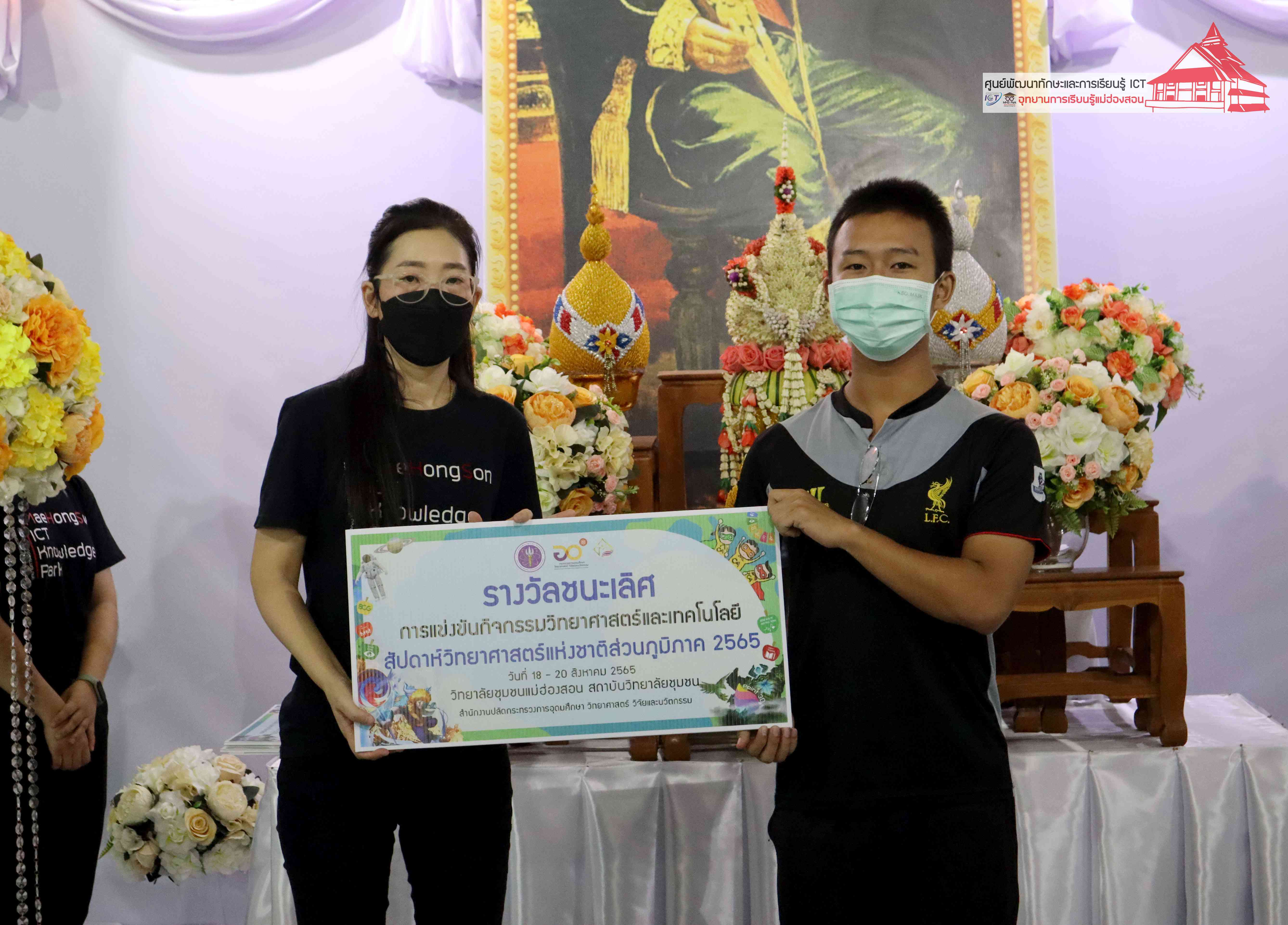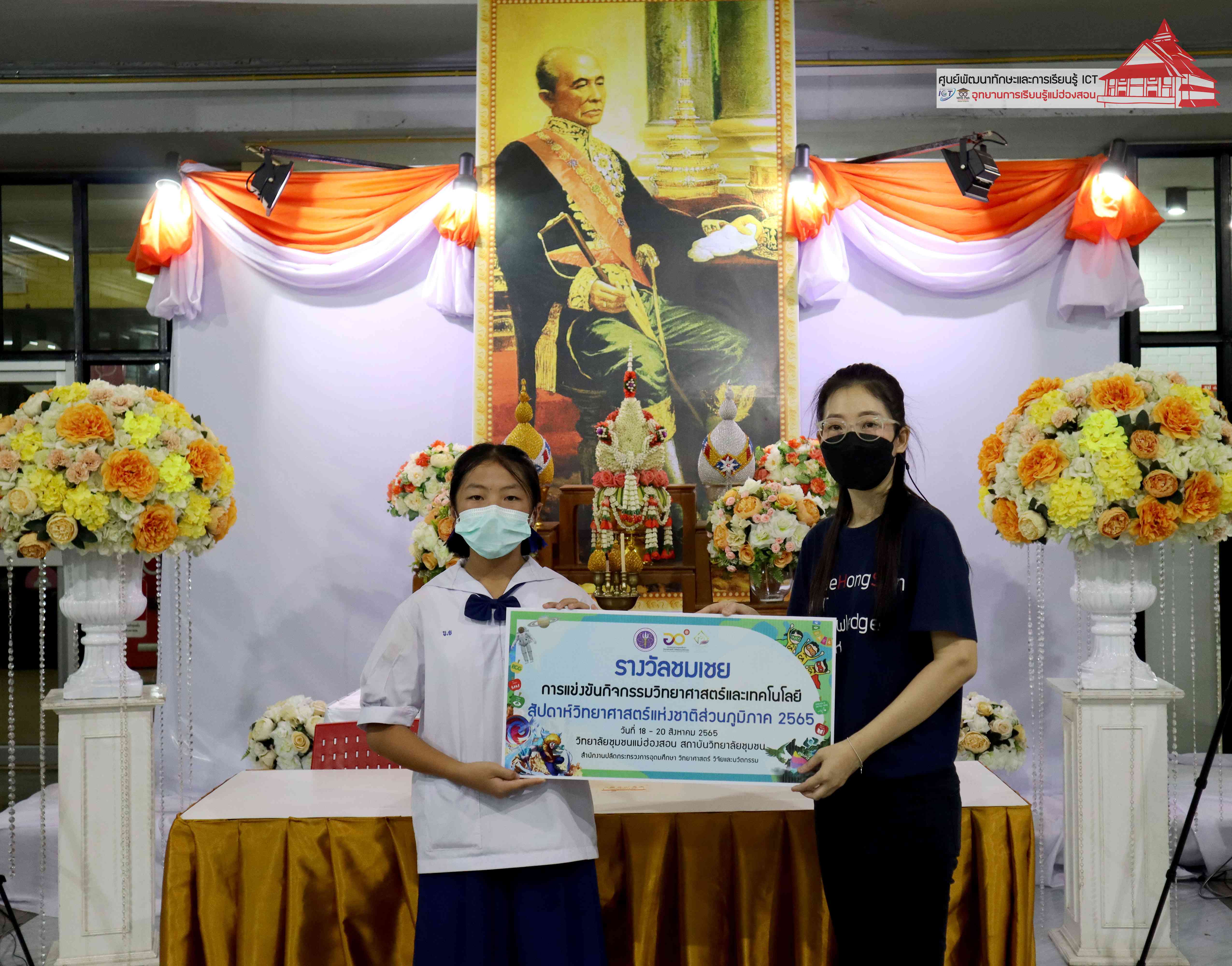 พิธีมอบรางวัลกิจกรรมสัปดาห์วิทยาศาสตร์แห่งชาติส่วนภูมิภาค วิทยาลัยชุมชนแม่ฮ่องสอน ประจำปี 2565 โดยอาจารย์เอมอร ลิ้มวัฒนา หัวหน้าศูนย์พัฒนาทักษะและการเรียนรู้ ICT แม่ฮ่องสอน อุทยานการเรียนรู้แม่ฮ่องสอน และคุณณิชกานต์ ธรมธัช เจ้าหน้าที่งานเยาวชนและนวัตกรรมเพื่อสังคม โครงการพัฒนาแห่งสหประชาชาติประจำประเทศไทย (UNDP Thailand)