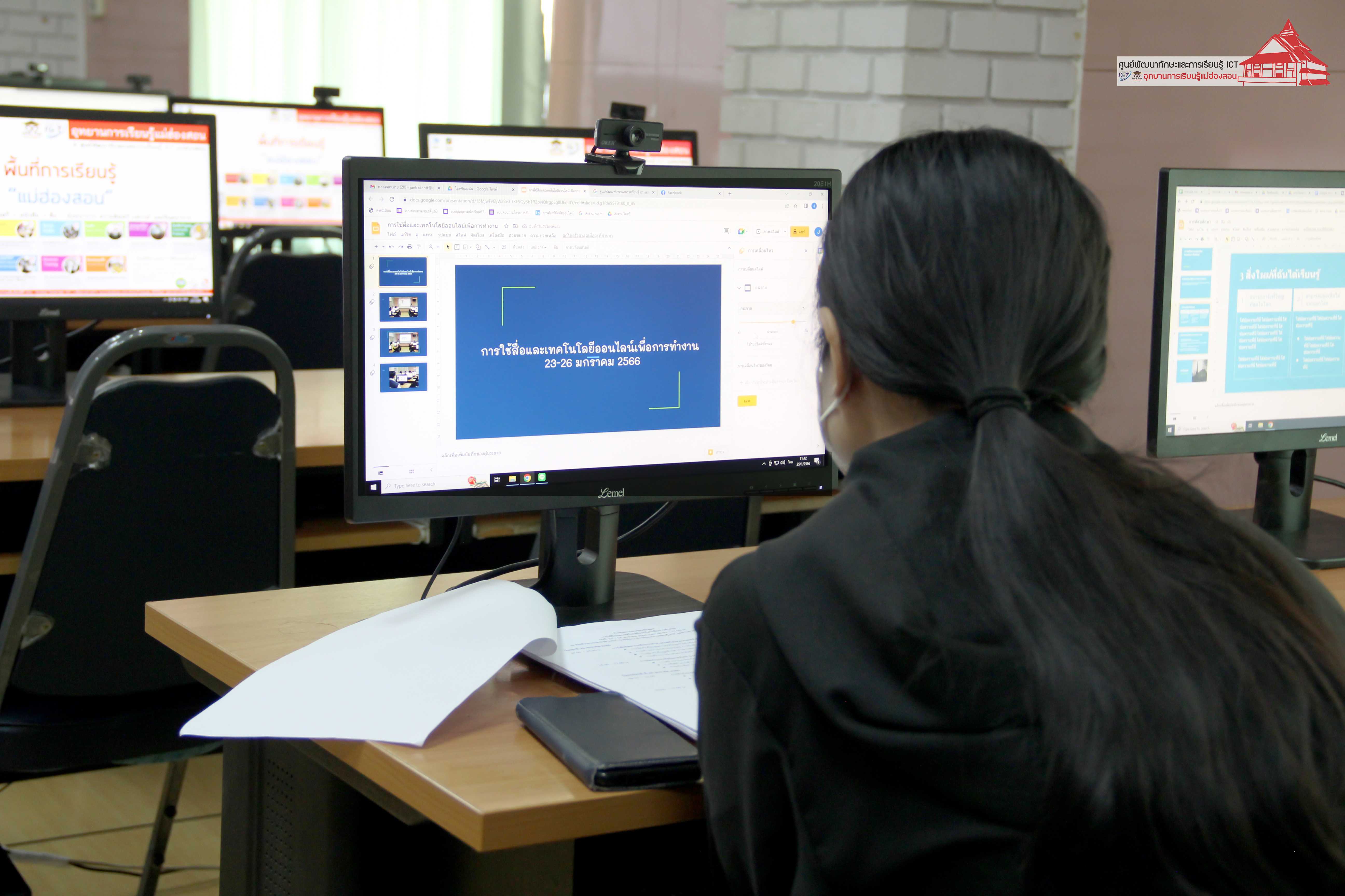 ศูนย์พัฒนาทักษะและการเรียนรู้ ICT แม่ฮ่องสอน อุทยานการเรียนรู้แม่ฮ่องสอน จัดอบรมหลักสูตร “การใช้สื่อและเทคโนโลยีเพื่อการทำงาน” ในวันที่ 23 - 26 มกราคม 2566 เวลา 08.30 – 17.00 น. ณ ห้องอบรมคอมพิวเตอร์ ศูนย์ ICT อุทยานการเรียนรู้แม่ฮ่องสอน วิทยากรโดย นายปดิธร แสงคุณ และ อาจารย์เอมอร ลิ้มวัฒนา