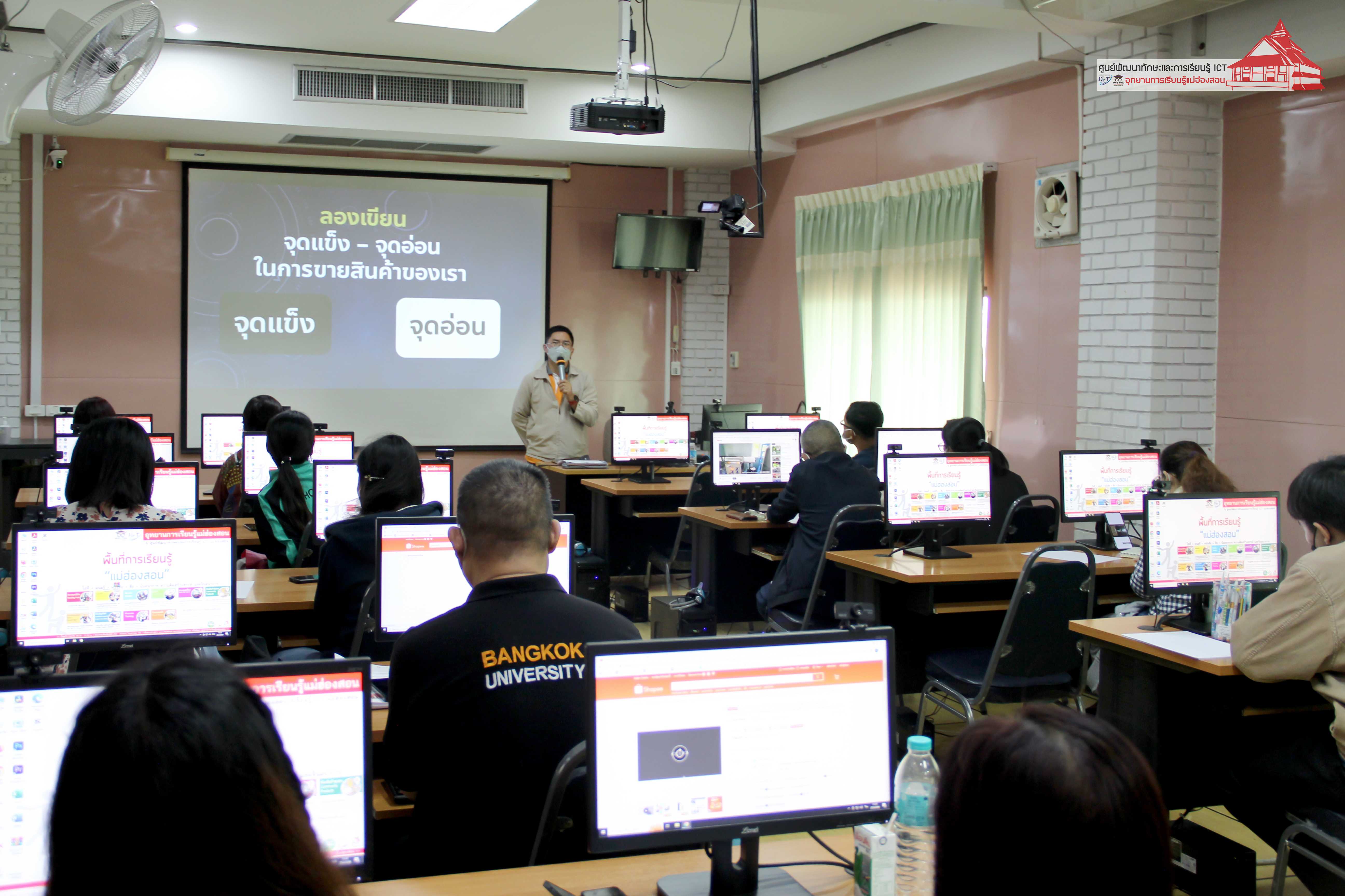 ศูนย์พัฒนาทักษะและการเรียนรู้ ICT แม่ฮ่องสอน อุทยานการเรียนรู้แม่ฮ่องสอน จัดอบรมหลักสูตร “การตลาดออนไลน์” เมื่อวันที่ 25 - 27 กุมภาพันธ์ 2566 เวลา 09.00 – 16.00 น. ณ ห้องอบรมคอมพิวเตอร์ ศูนย์ ICT อุทยานการเรียนรู้แม่ฮ่องสอน กล่าวต้อนรับและแนะนำการอบรมโดย อาจารย์เอมอร ลิ้มวัฒนา หัวหน้าศูนย์ ICT อุทยานการเรียนรู้แม่ฮ่องสอน วิทยากร นายอาเขต แซ่ภู่