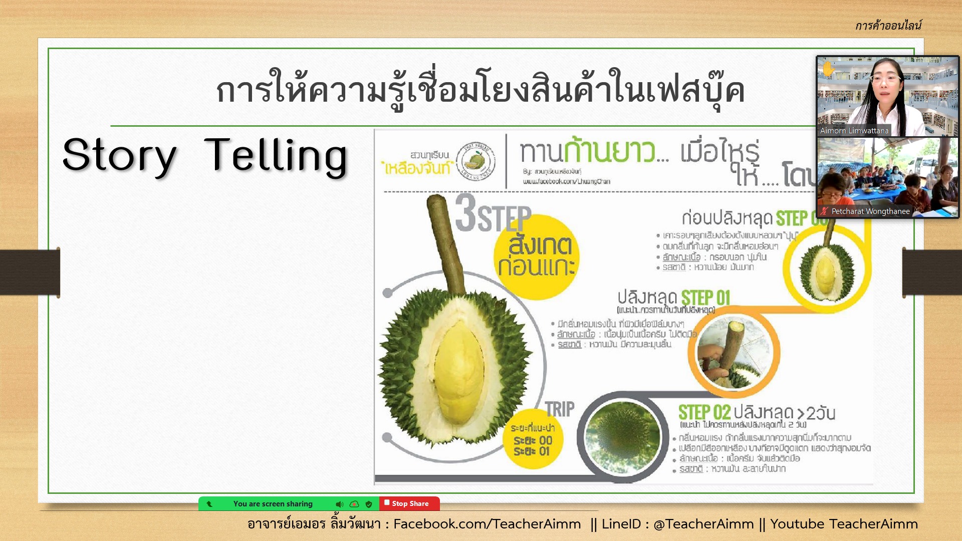 บรรยายให้ความรู้และการฝึกปฏิบัติผ่านระบบ Zoom ในหัวข้อ แนวทางการผ่านสื่อออนไลน์และการขายของออนไลน์ผ่านแพลตฟอร์มออนไลน์ เทคนิคการถ่ายภาพ ถ่ายวิดีโอ และการเล่าเรื่อง แก่กลุ่มวิสหกิจชุมชน อำเภอแม่สะเรียง