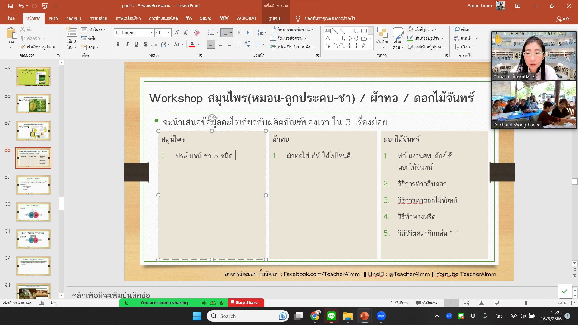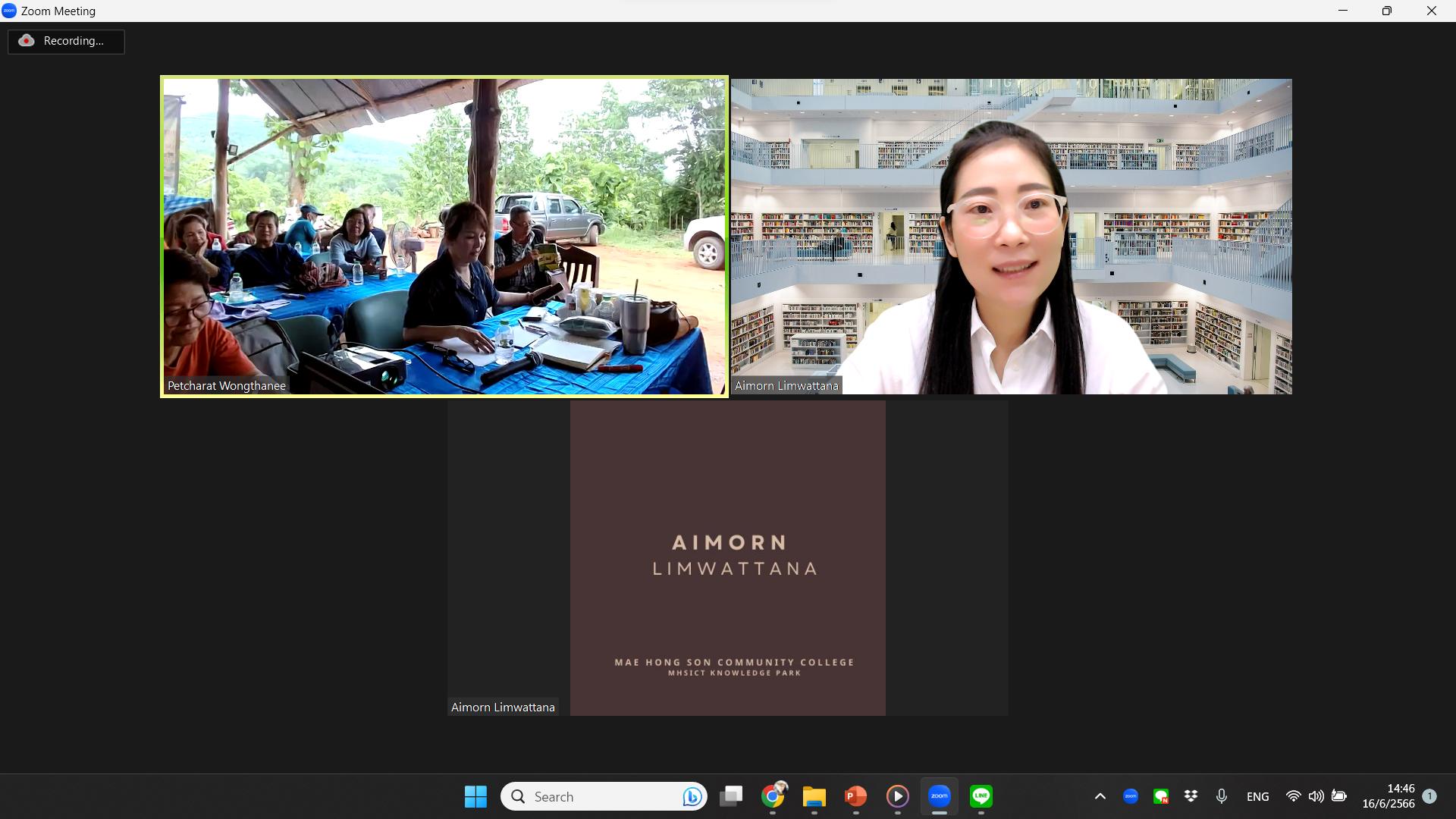 เมื่อวันศุกร์ที่ 16 มิถุนายน 2566 เวลา 13.00 - 15.00 น.อาจารย์เอมอร ลิ้มวัฒนา ครูชำนาญการ วิทยาลัยชุมชนแม่ฮ่องสอน หัวหน้าศูนย์ ICT อุทยานการเรียนรู้แม่ฮ่องสอน บรรยายให้ความรู้และการฝึกปฏิบัติผ่านระบบ Zoom ในหัวข้อ แนวทางการผ่านสื่อออนไลน์และการขายของออนไลน์ผ่านแพลตฟอร์มออนไลน์ เทคนิคการถ่ายภาพ ถ่ายวิดีโอ และการเล่าเรื่อง แก่กลุ่มวิสหกิจชุมชน อำเภอแม่สะเรียง เพื่อเป็นการยกระดับในการก้าวสู่การขายสินค้าออนไลน์เพื่อเป็นช่องทางการตลาดจากผลผลิตที่ได้จากกลุ่ม โดยผลิตภัณฑ์ส่วนใหญ่ของกลุ่ม ได้แก่ ผลิตภัณต์ดอกไม้จันทร์ ผลิตภัณฑ์ผ้าทอกะเหรี่ยง ผลิตภัณฑ์แปรรูปสมุนไพร อาทิ ลูกประคบ ชาสมุนไพร หมอนสมุนไพร เป็นต้น กิจกรรมจัดขึ้นโดยสำนักงานเกษตรจังหวัดแม่ฮ่องสอน