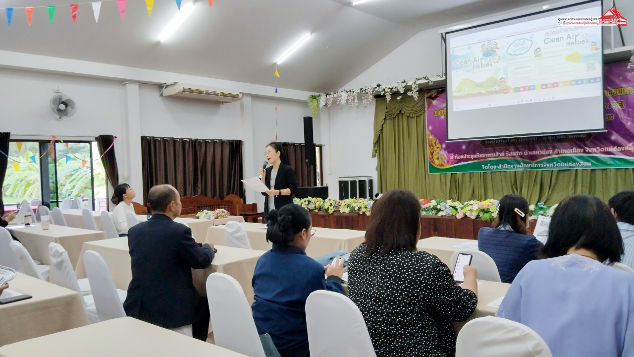 อาจารย์เอมอร ลิ้มวัฒนา หัวหน้าศูนย์พัฒนาทักษะและการเรียนรู้ ICT แม่ฮ่องสอน อุทยานการเรียนรู้แม่ฮ่องสอน ประชาสัมพันธ์ แนะนำโครงการ Clean Air Heroes ปี 2 ออกแบบและสร้างสรรค์ “#ผลิตภัณฑ์จากเศษพืชผลทางการเกษตร” ซึ่งเป็นโครงการประกวดผลิตภัณฑ์ ที่เยาวชนจัดทำขึ้นจากเศษพืชผลทางการเกษตรของจังหวัดแม่ฮ่องสอน เพื่อแก้ปัญหาสิ่งแวดล้อม ลดมลพิษทางอากาศ เพิ่มทางเลือกและสร้างรายได้ ชิงเงินรางวัลรวมกว่า 38,000 บาท โครงการโดยความร่วมมือของศูนย์ ICT อุทยานการเรียนรู้แม่ฮ่องสอน และ UNDP Thailand แก่กลุ่มผู้บริหาร และคณะครู ในสถานศึกษานำร่องพื้นที่นวัตกรรมการศึกษาจังหวัดแม่ฮ่องสอน เมื่อวันอาทิตย์ ที่ 1 ตุลาคม 2566 ณ ห้องประชุมพิชชาพรเฮ้าส์ รีสอร์ท