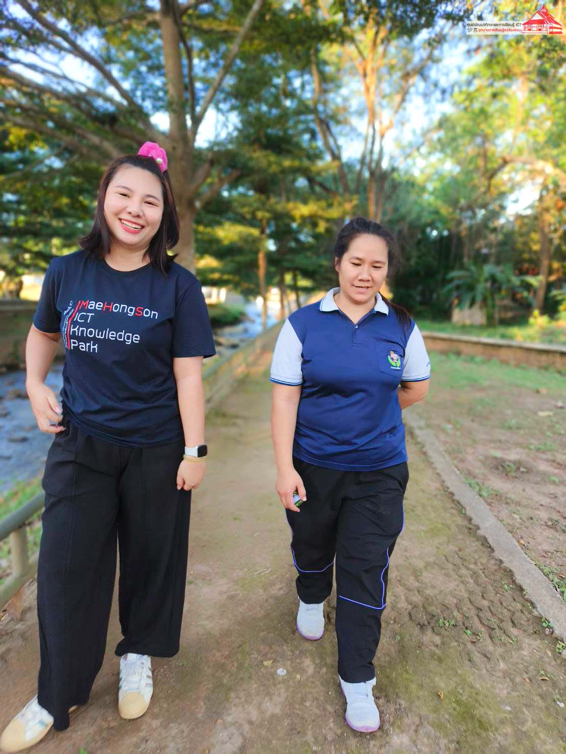 นางสาวอรนิดา แก้วกองบุญ และ นางสาววรญา แสงเจิดฟ้า เข้าร่วมกิจกรรมกิจกรรมเดิน -วิ่ง เลียบลำน้ำแม่ฮ่องสอน เมื่อวันพุธ ที่ 8 เดือน พฤศจิกายน 2566