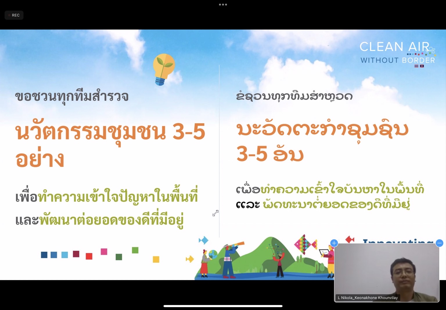 โครงการ Clean Air Heroes Without Border ครั้งที่ 2 ในวันที่ 18 พฤศจิกายน 2566 เป็นการทำ Workshop Online ผ่าน ระบบ zoom meeting
