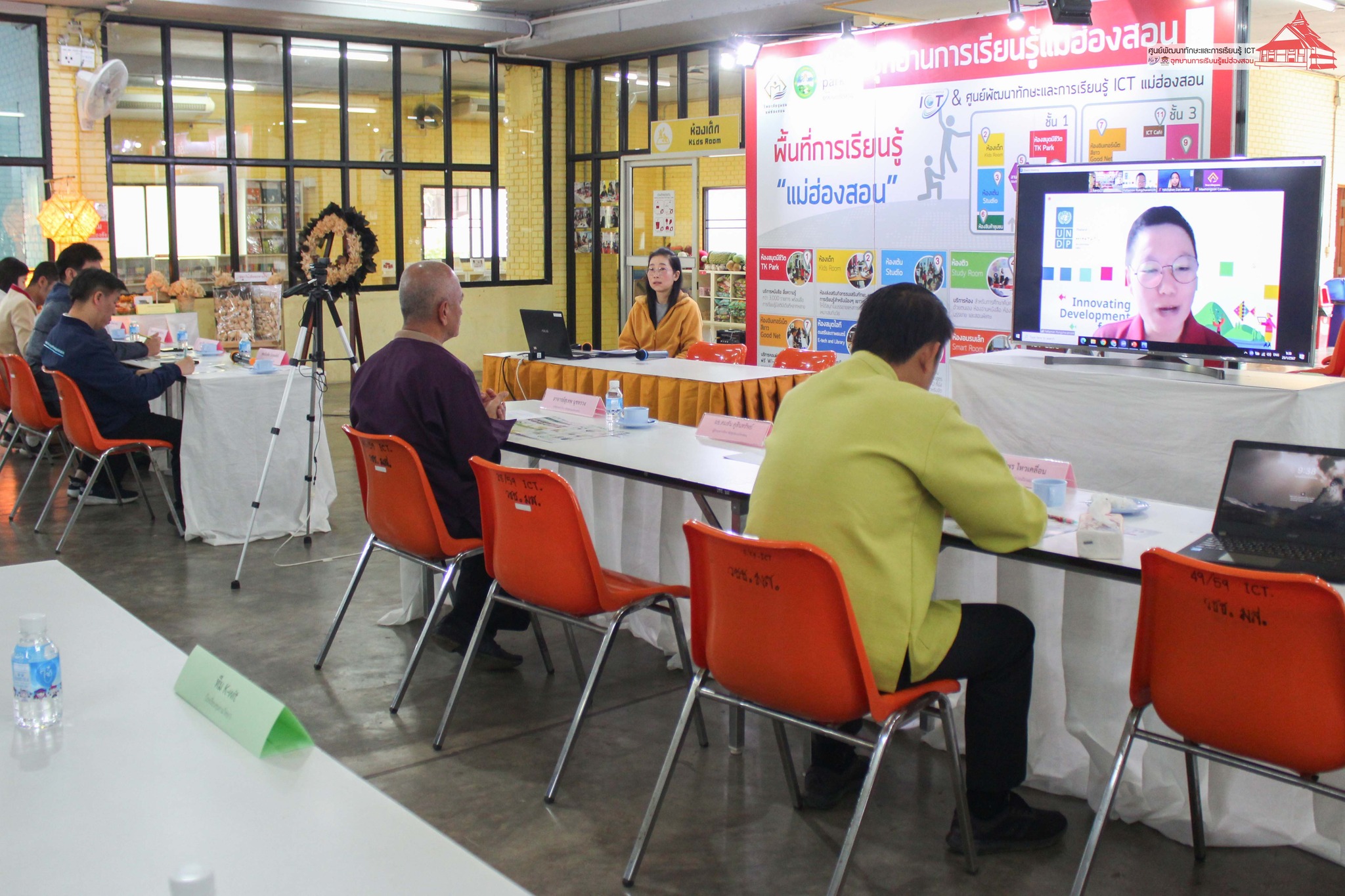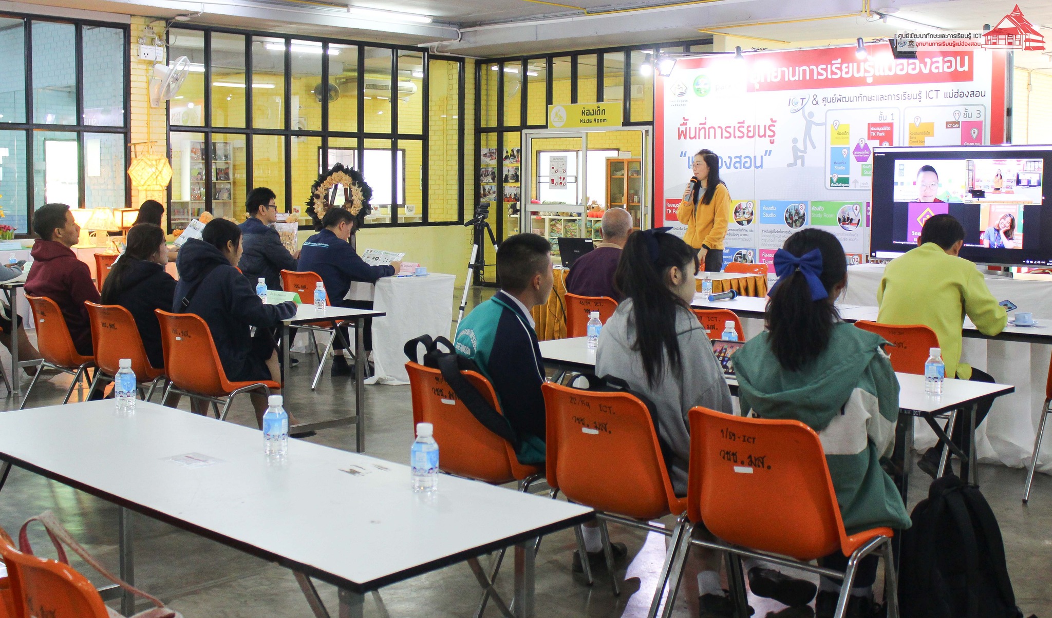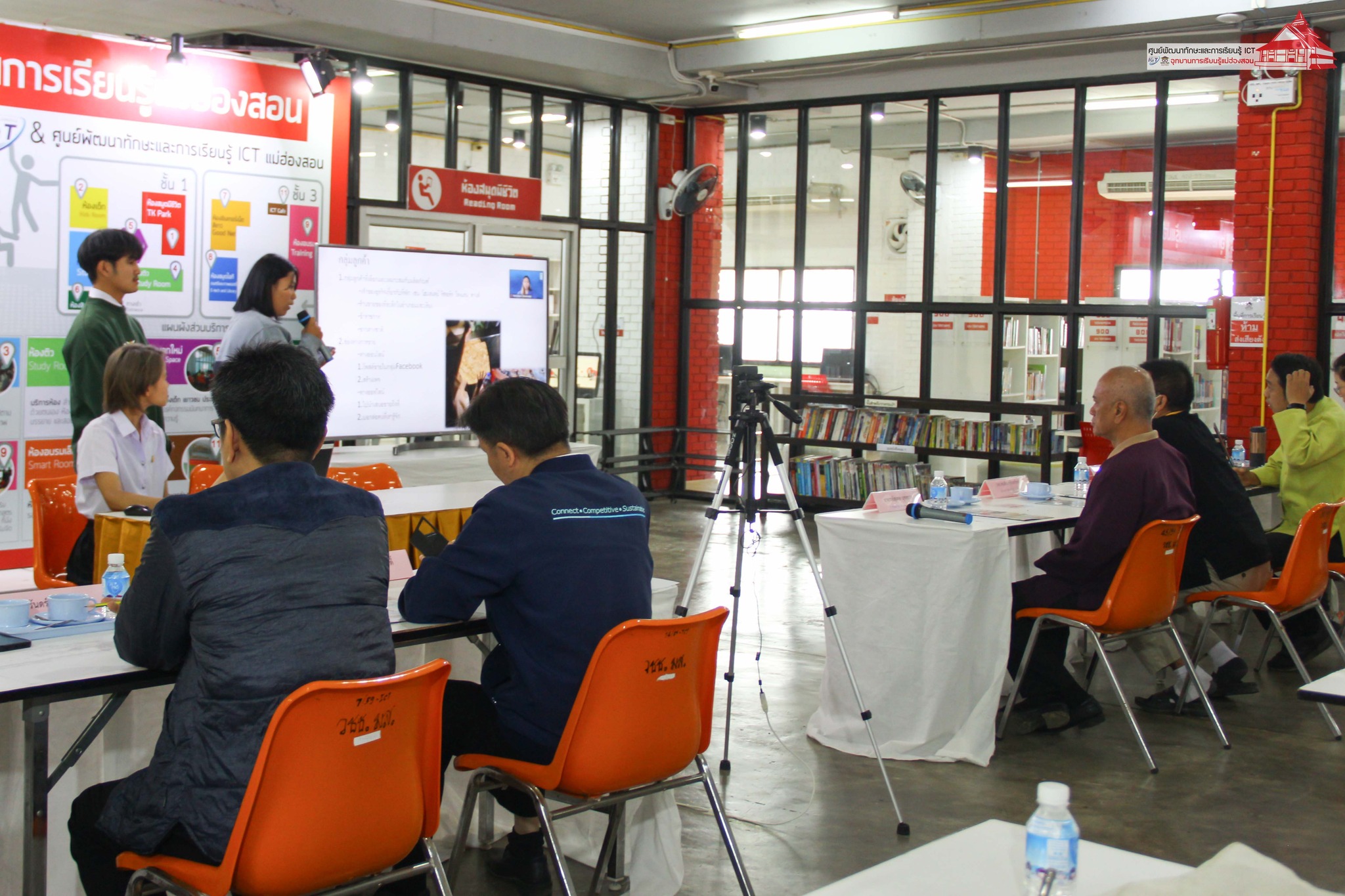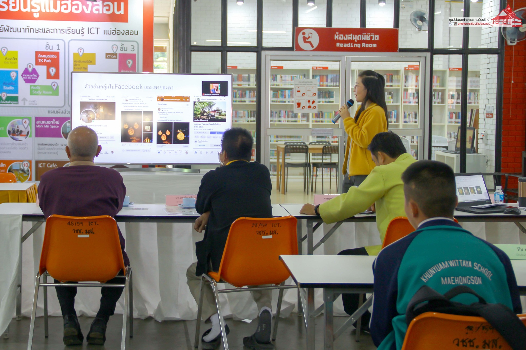 การนำเสนอในครั้งนี้ มีอาจารย์สุเทพ นุชทรวง ประธานสภาวิทยาลัยชุมชนแม่ฮ่องสอน, นายคมสัน คูสินทรัพย์ ผู้อำนวยการวิทยาลัยชุมชนแม่ฮ่องสอน, นายฤทธิพร ไหวเคลื่อน เลขานายกเทศมนตรี เทศบาลเมืองแม่ฮ่องสอน ร่วมรับฟังการนำเสนอ / คณะกรรมตัดสินการแข่งขันโดย คุณบัณฑิต นิลอุดมศักดิ์ ประธานหอการค้าจังหวัดแม่ฮ่องสอน, นางสาวนันทัชพร ก่าหยั่นนะ ผู้จัดการ Food forest maehongson กรรมการบริษัทประชารัฐรักสามัคคีแม่ฮ่องสอน และสมาชิกหอการค้าจังหวัดแม่ฮ่องสอน, คุณนิรันดร์ วิชัยสกุล เจ้าของร้านปาด็อง เสื้อยืด แม่ฮ่องสอน, นายชาญชัย ดารารัตติกาล ผู้อำนวยการกลุ่มงานยุทธศาสตร์และข้อมูลเพื่อการพัฒนาจังหวัด สำนักงานจังหวัดแม่ฮ่องสอน, และคุณณิชกานต์ ธรมธัช เจ้าหน้าที่งานเยาวชนและนวัตกรรมเพื่อสังคม UNDP Thailand ดำเนินกิจกรรม โดย อาจารย์เอมอร ลิ้มวัฒนา หัวหน้าศูนย์ฯ และบุคลากร ศูนย์ ICT อุทยานการเรียนรู้แม่ฮ่องสอน