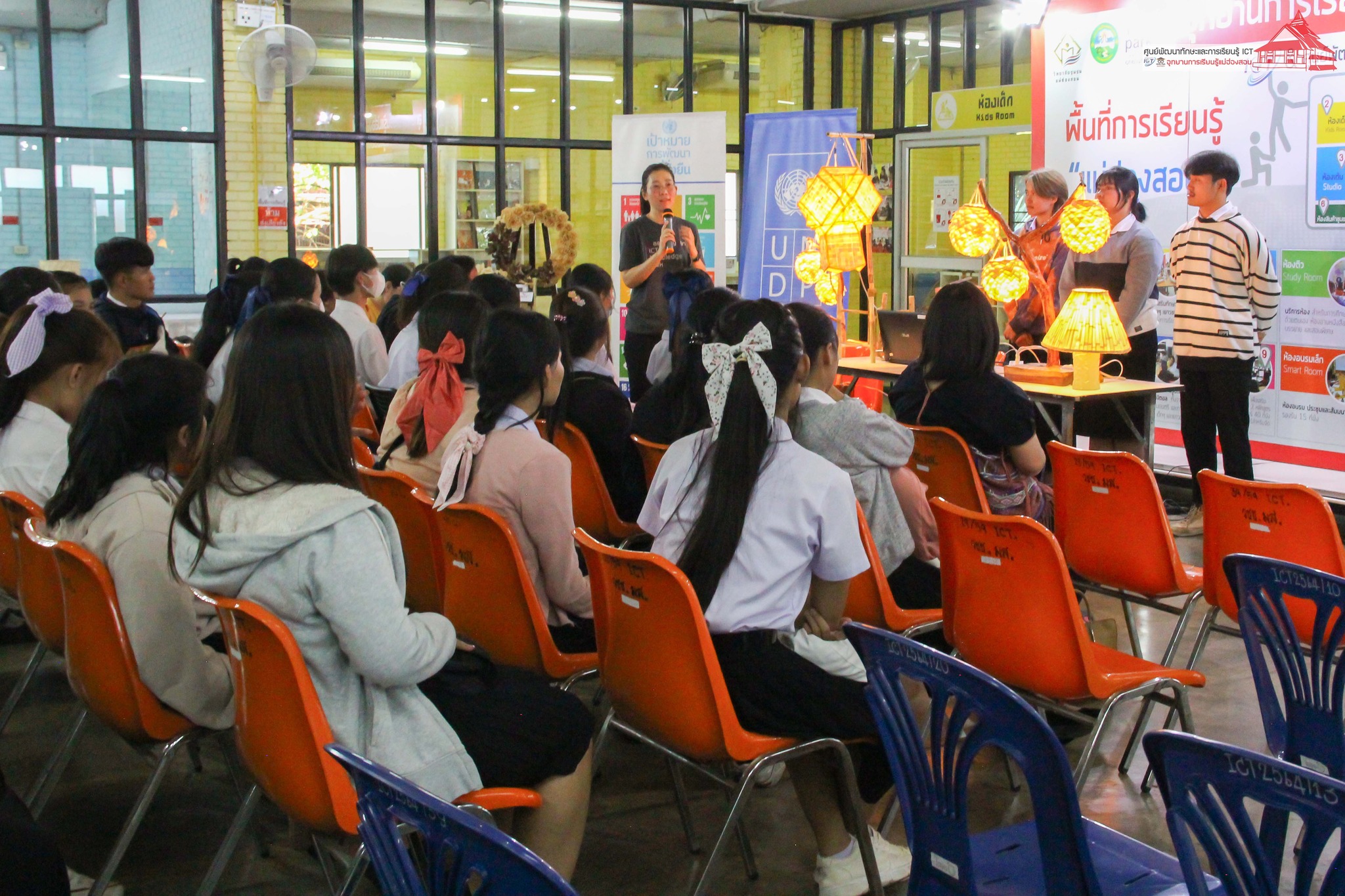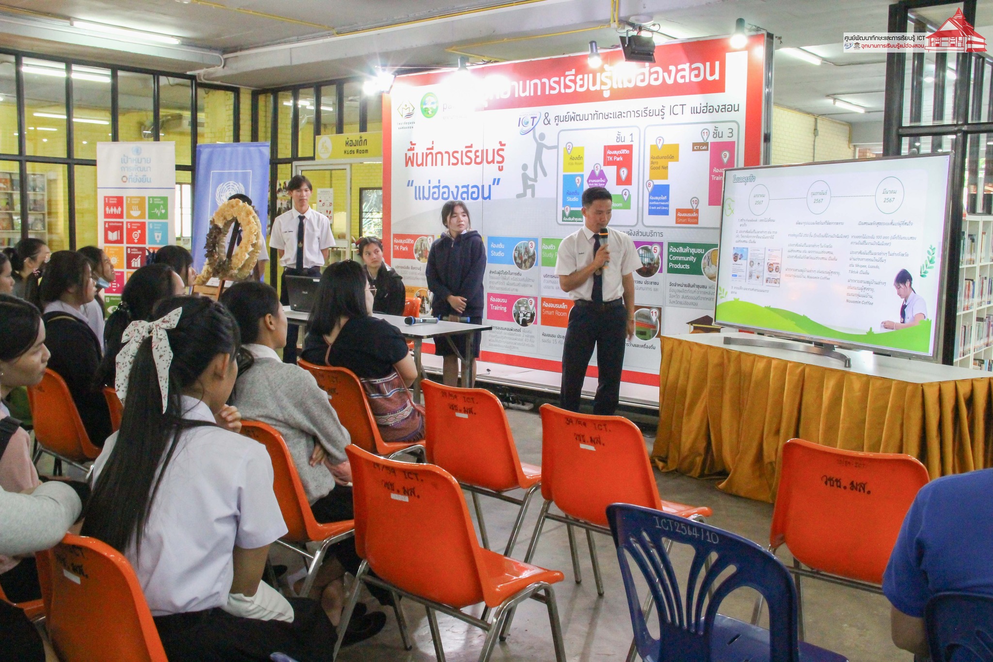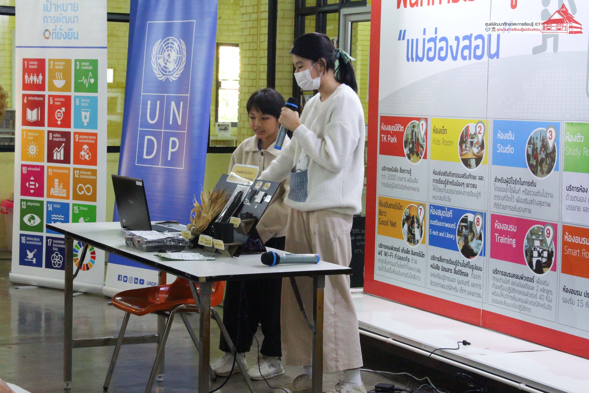 เยาวชนนำเสนอโครงการ Clean Air Heroes 2023 (ปี2) โครงการ “ออกแบบ สร้างสรรค์ ผลิตภัณฑ์จากเศษพืชผลทางการเกษตร ธุรกิจเพื่อสังคม” ซึ่งเป็นโครงการประกวดแข่งขันโดยความร่วมมือของ ศูนย์ ICT อุทยานการเรียนรู้แม่ฮ่องสอน กับ UNDP Thailand โดยมีตัวแทนจากทีมเยาวชนจากวิทยาลัยการอาชีพนวมิน-ทราชินีแม่ฮ่องสอน ดอกไม้แสนสวยจากเปลือกข้าวโพด, กระถางเพาะชำจากเปลือกถั่วลายเสือ / วิทยาลัยชุมชนแม่ฮ่องสอน หน่วยจัดแม่สะเรียง โคมไฟ DIY จากเปลือกข้าวโพดและโรงเรียนห้องสอนศึกษา ในพระอุปภัมภ์ฯ ถ่านไบโอชาร์จากเศษข้าวโพด