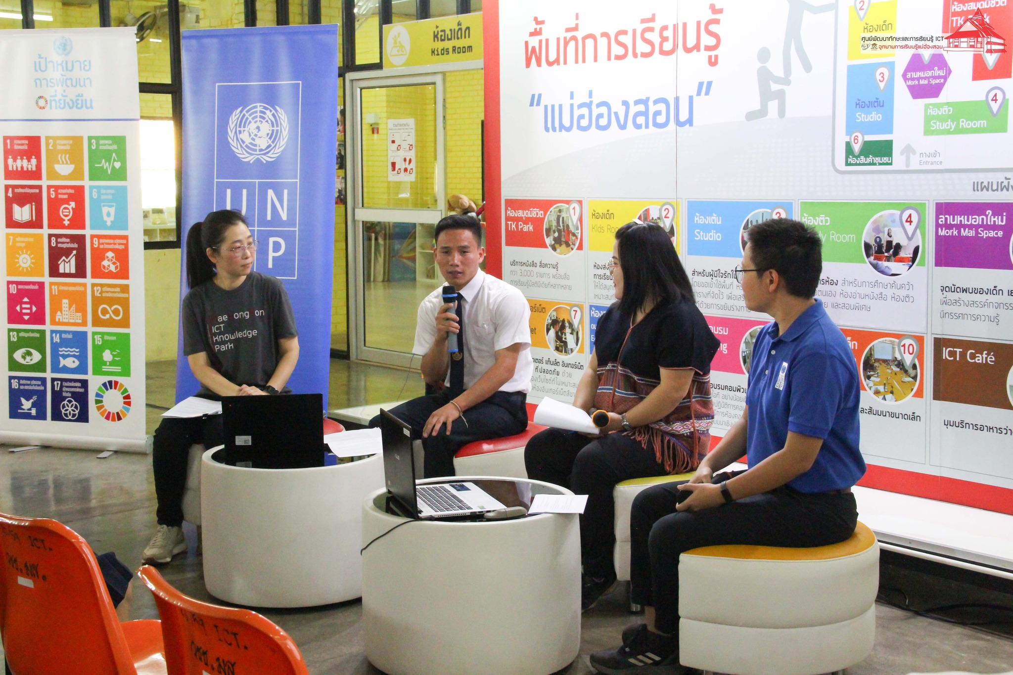 กิจกรรมการถอดบทเรียนประสบการณ์ การขับเคลื่อน SDGs จาก 3 บทบาท ได้แก่ เยาวชน ผู้บ่มเพาะ และเครือข่ายสนับสนุน โดยมี อาจารย์เอมอร ลิ้มวัฒนา