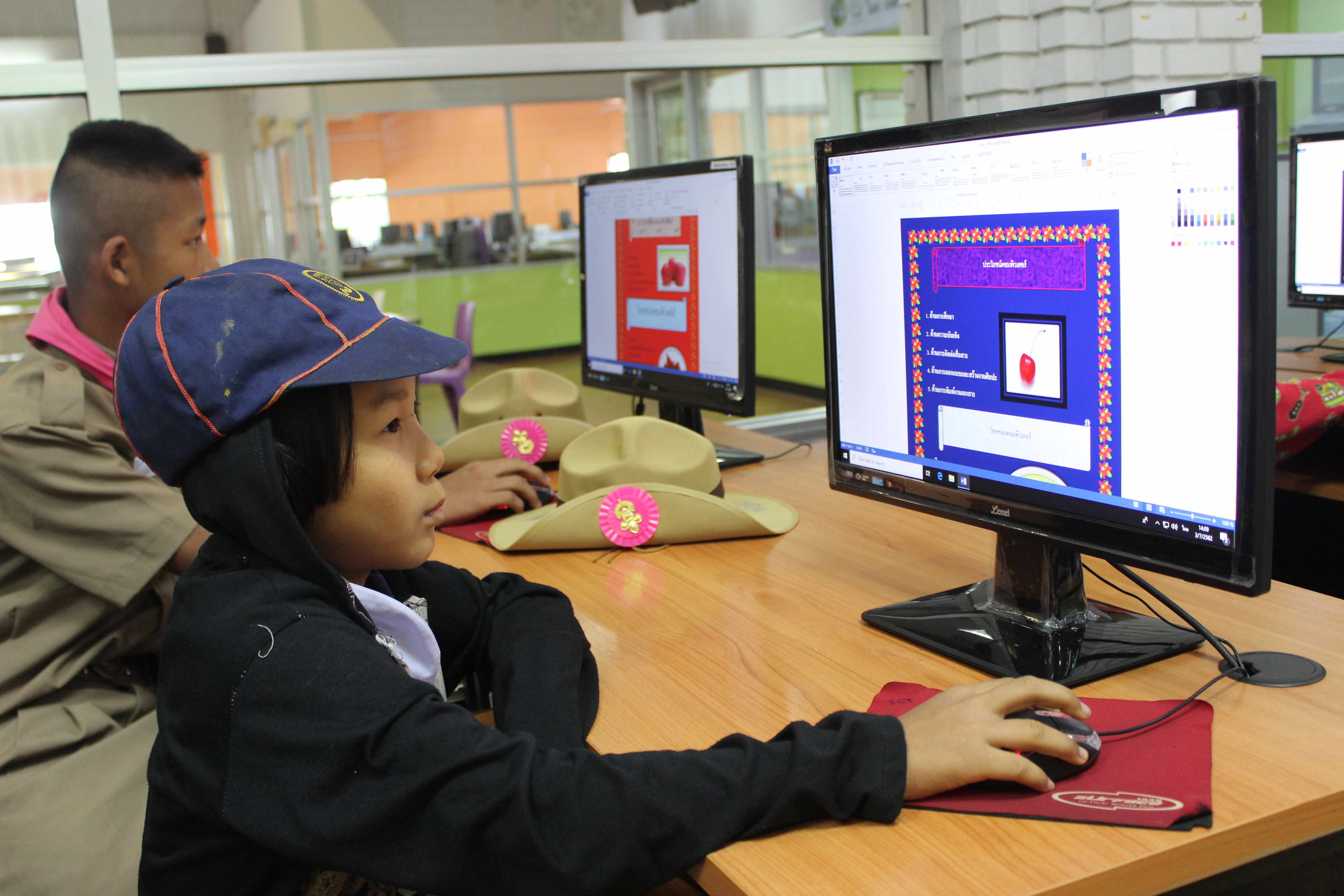ศูนย์พัฒนาทักษะและการเรียนรู้ ICT อุทยานการเรียนรู้แม่ฮ่องสอน บริการวิชาการอบรมการใช้งานโปรแกรม Microsoft Word โรงเรียนบ้านท่าโป่งแดง ชั้น ป.3 - ป.4 จำนวน 22 คน และโรงเรียนบ้านสบสอย ชั้น ป.5 - ป.6 จำนวน7 คน วันที่ 3 กรกฎาคม 2562