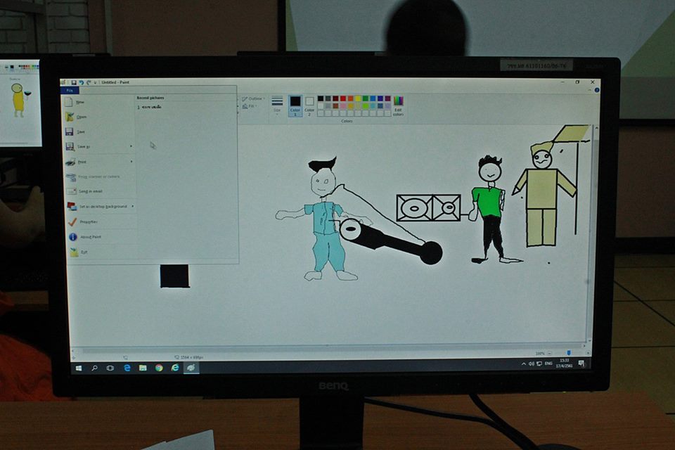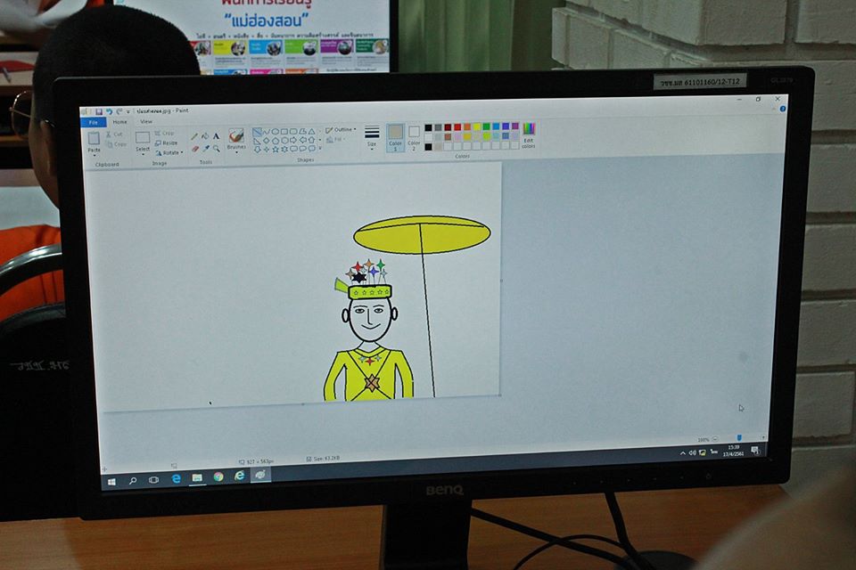 #Day1 วันแรก เรียนรู้การใช้งานอุปกรณ์คอมพิวเตอร์ และฝึกการใช้เม้าส์ด้วยโปรแกรม Paint วาดภาพในหัวข้อ "ปอยส่างลอง"
